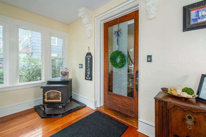This exquisite fully restored home is a one of a kind property combining vintage charm with a modern elegance. Home features many upgrades with extraordinary appeal. 12 foot ceilings, 8 foot windows, hardwood floors throughout. Additional features include 6 bedrooms and 6 1/2 baths, 2 sun porches, fenced in patio garden gazebo and a bonus carriage house above the garage. Currently operating as a boutique inn with multiple potential uses.