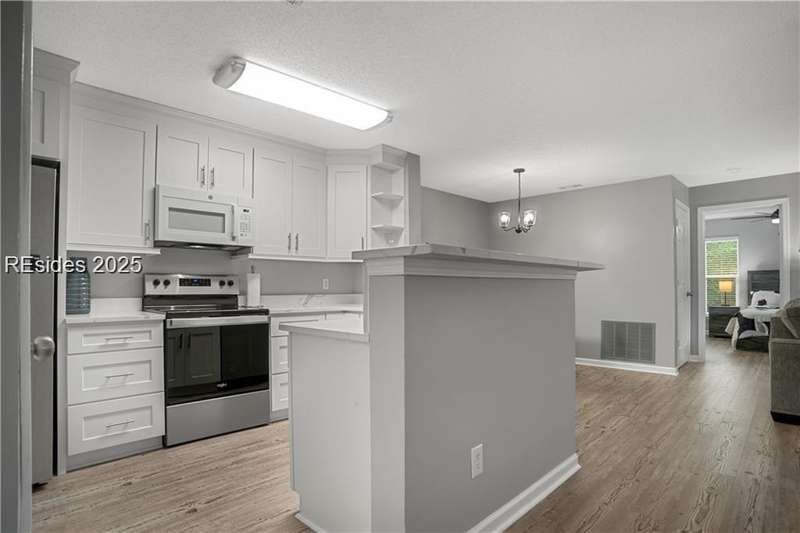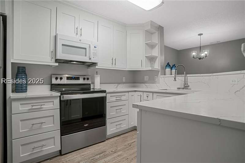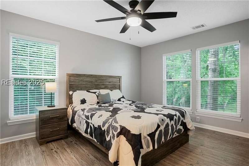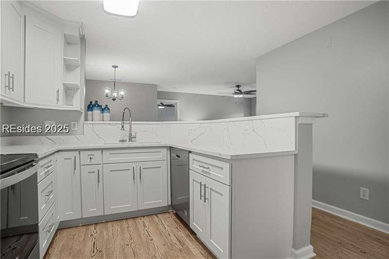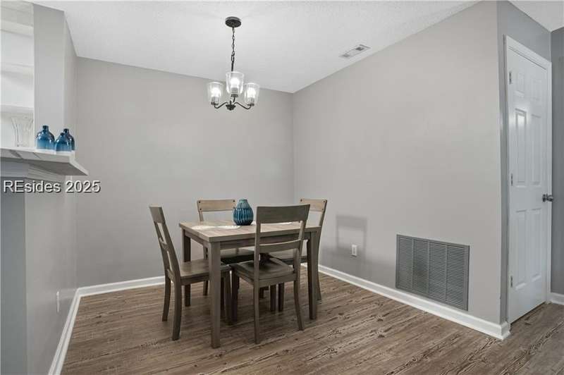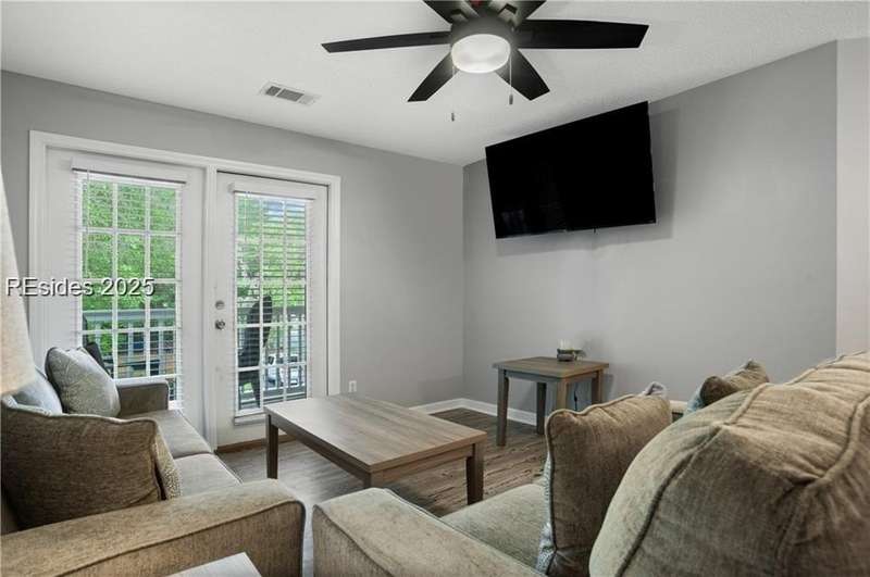 Fantastic two bedroom, two bath condo in The Estate of Westbury, in Bluffton. This beautifully updated condos kitchen has stainless steel appliances, quartz countertops, laundry room with washer and dryer, LVP flooring throughout. Move-in Ready. This second floor balcony and bedroom have a serene view of the pond and wooded area. Condo is an end unit next to an open area with woods and a pond. Community pool, fitness center and security gate