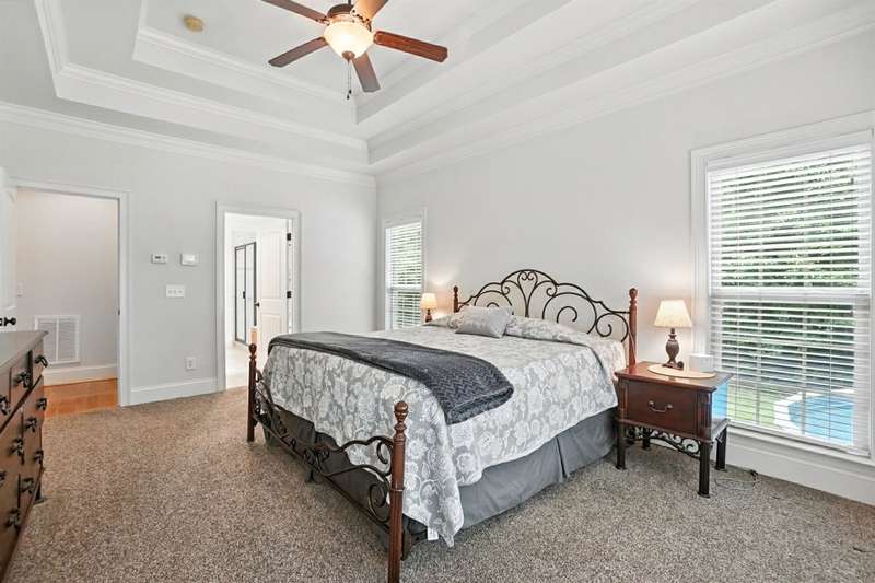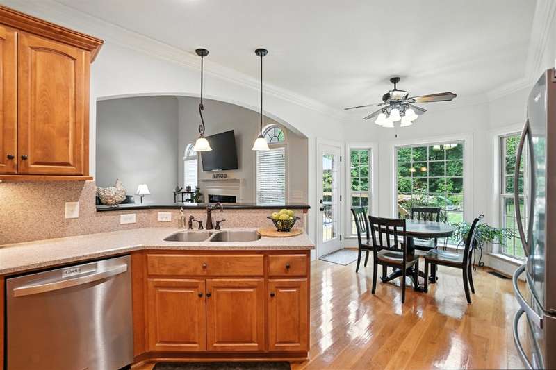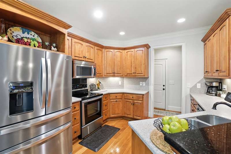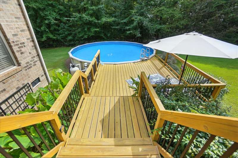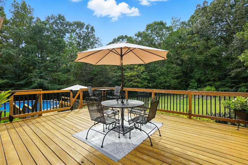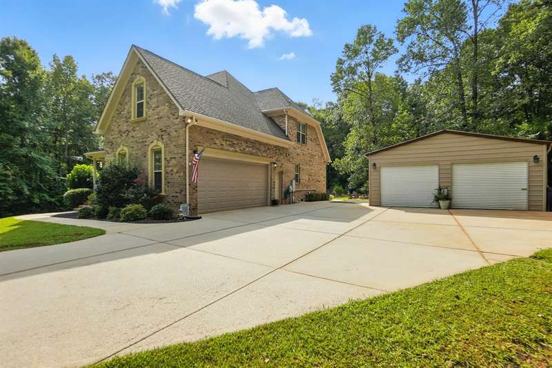Welcome to this beautifully maintained, custom-built, one-owner full brick home nestled on a peaceful 3.13-acre estate in a quiet cul-de-sac. The Primary bedroom and an additional bedroom & full bath are ON THE MAIN level. With 2 additional bedrooms, Jack n Jill bathroom & bonus upstairs. This is the unique home you have been looking for with quality craftsmanship and a long list of modern upgrades. Inside, you'll find fresh paint throughout the main floor, white Oak 4? wide plank hardwood floors with a natural finish, custom 42? cabinets, Corian and granite countertops, and a thoughtful layout. The Whirlpool Gold kitchen appliances?refrigerator, dishwasher, and microwave are only 3 years old. Convenient laundry room on the main with extra cabinets. All bathrooms feature new chair-height toilets, new exhaust fans w/blue Bluetooth speakers for a modern touch. The primary bath includes a remote-controlled window shade, while the whole house enjoys custom blinds. There is a whole-house Water filtration and softener. Outside, relax in your above-ground pool with tiered deck sealed with Everseal deck sealant, 25 year warranty. LeafFilter gutter guards on both the home and 2-car detached garage/workshop. Tankless water heater in the oversized 2 car over sized attached garage with wash sink. Fully fenced dog area & chicken coup. This home perfectly blends custom luxury with energy-efficient, low-maintenance living, and it's ready for you to make it home!