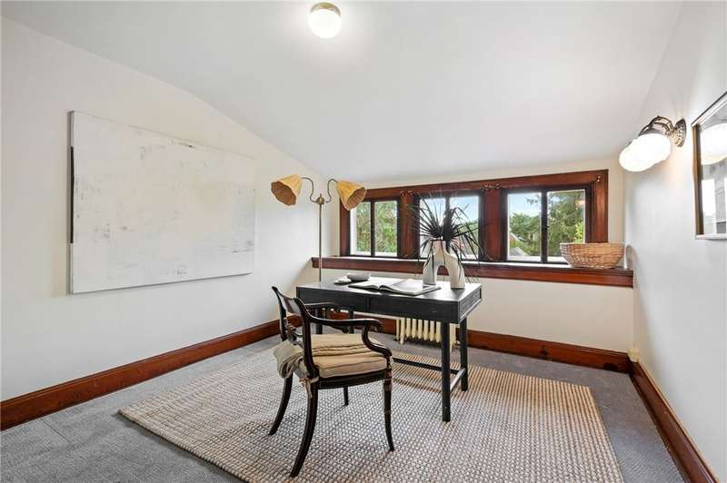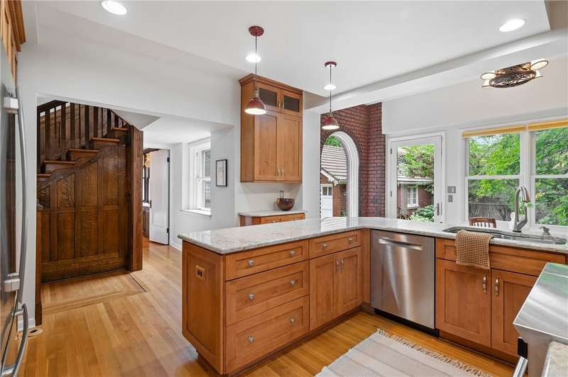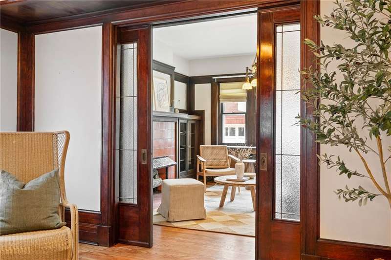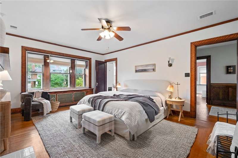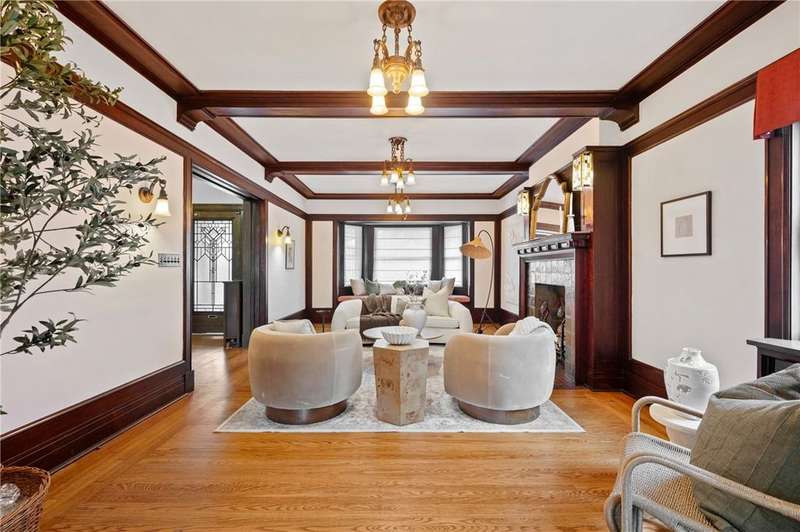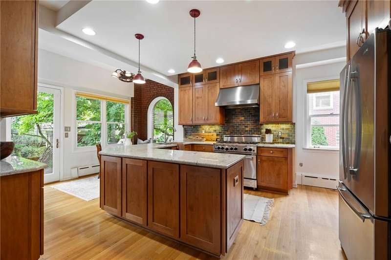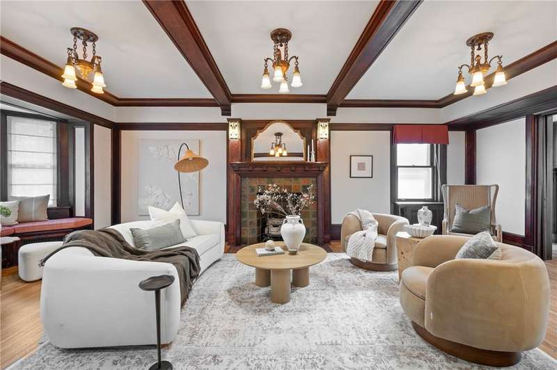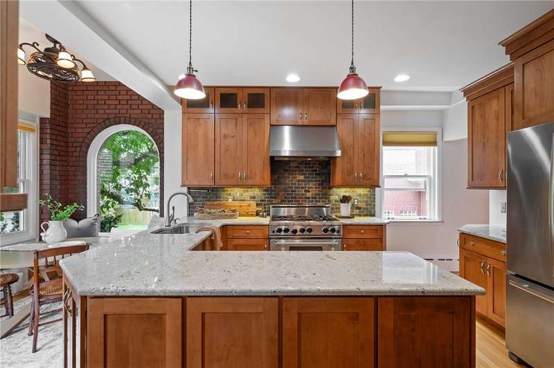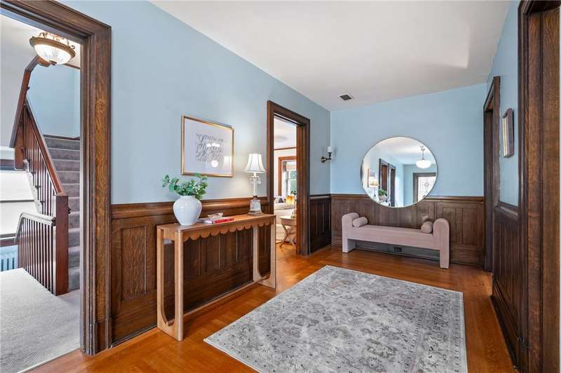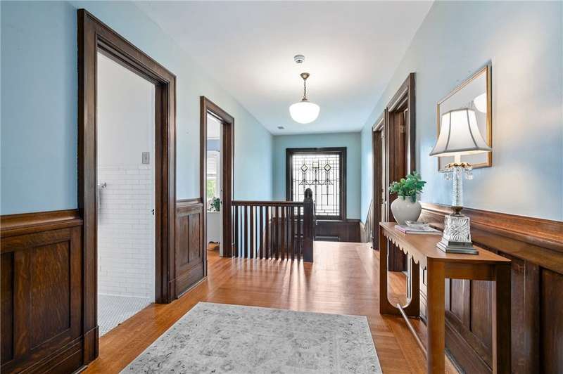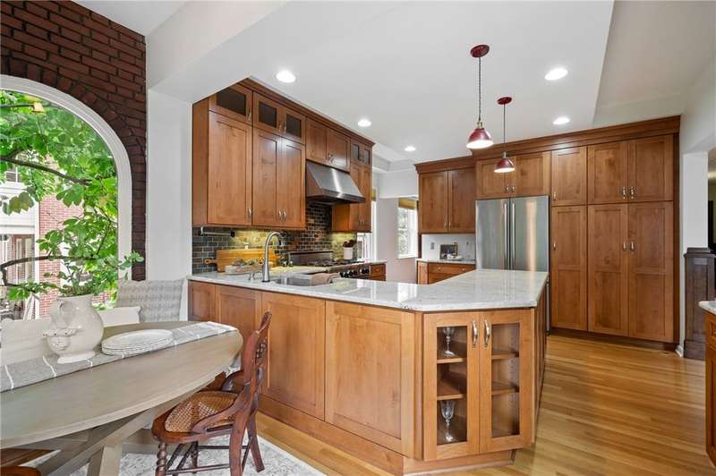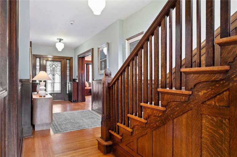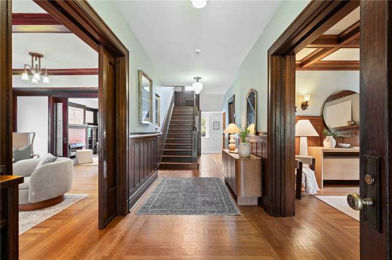 This gorgeous brick center hall home graciously unites historic architecture with modern refinement. Incredible location just steps from the vibrant cafes, boutiques, & restaurants of Squirrel Hill, this stately home offers enduring curb appeal, a charming front porch, & more than 4,500 square feet of thoughtfully updated living space. Inside, 6 bedrooms & 4.5 bathrooms provide comfort & versatility. The main level is ideal for both entertaining & daily living, featuring elegant formal rooms, a spacious den, & a meticulously renovated kitchen. The expansive eat-in kitchen boasts a BlueStar range, abundant cabinetry, & sleek finishes that complement the home's original character. The finished lower level offers a flexible space for recreation or casual gatherings. Outside, an enclosed backyard & lovely patio create a private retreat. Blending classic charm with contemporary comfort, this exceptional property is nestled in one of Pittsburgh's most walkable & desirable neighborhoods.