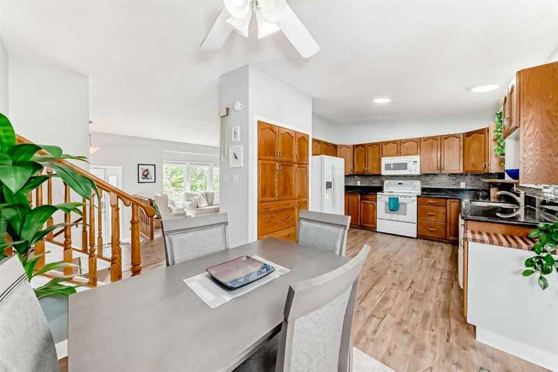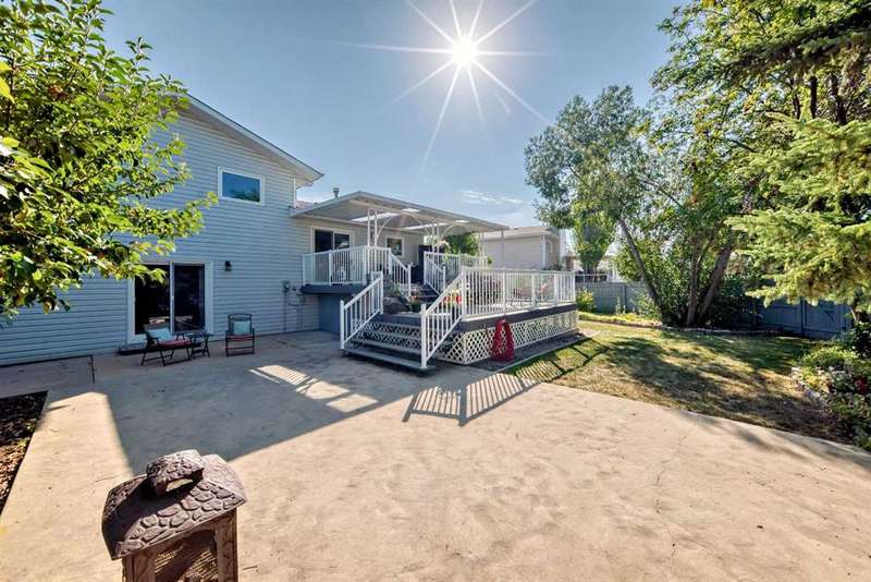 This beautifully maintained home reflects true pride of ownership from the moment you arrive. The covered front verandah with Trex decking welcomes you. Inside a vaulted ceiling and updated vinyl plank flooring create a warm, airy living space filled with natural light from the updated windows. Elegant granite countertops provide durable, stylish surfaces throughout the home. Enjoy the timeless elegance of rich hardwood flooring and the glow of a cozy fireplace on the third level, perfect for curling up on chilly evenings. The forth level offers a sitting area, additional bedroom, flex room, storage room with built-in shelving, utility room and a large crawl space, ideal for all your storage needs, combining functionality with extra living space. This home boasts newer shingles, updated plumbing, and a stylish front door that enhances both curb appeal and security. The heated garage adds year-round convenience and comfort, ideal for Alberta’s seasons. Step outside to discover a stunning private backyard, uniquely positioned next to the alley, offering exceptional privacy and space. This outdoor oasis features a beautiful two-tiered, partially covered Trex deck and a concrete patio — perfect for relaxing, entertaining, or enjoying peaceful moments in your own serene retreat. Every detail in this home demonstrates thoughtful care and quality updates, making it a perfect blend of comfort, functionality, and lasting charm for its next owners.