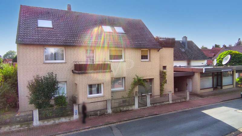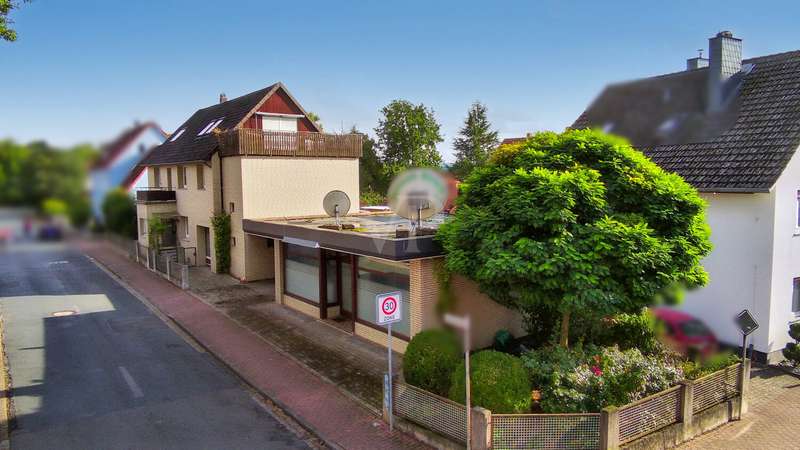 Modern residential and commercial building in the heart of Fischbeck - Flexible multi-generational house with numerous possible uses This well-kept residential and commercial building, built in 1906, offers a wide range of possible uses on approx. 220.8 m² of living space and a plot area of around 432 m². Centrally located in Fischbeck, the most popular district of Hessisch Oldendorf, the property impresses with its spacious layout, numerous rooms and a structured combination of living and working. Ideal for large families, multi-generational households or for combining living and small business. The house has a total of 10 rooms, including 6 bedrooms and 2 bathrooms. The spatial concept allows it to be used as a multi-generational home, with each floor having a living unit with its own kitchenette. There is no strict separation between the units - instead, the rooms can be arranged openly and used flexibly. It is therefore particularly suitable for families or communities where close contact is desired. The furnishings are simple but well maintained. Heating is provided by central heating, which ensures a pleasant indoor climate. Two kitchenettes make it easy for different generations to live together or to divide the space into private and business areas. Regular renovation work has been carried out, ensuring that the property is in a well-kept condition. At the same time, future owners have the opportunity to renovate or modernize the property according to their own ideas - although this is not mandatory. The commercial part of the building opens up a wide range of usage options: Whether as a retail space, courier or storage room, tax consultancy or insurance office, nail salon or beauty institute - the floor plan allows for different design options. Additions and extensions from various years of construction also allow for flexible spatial organization and create additional usable space. Another plus point is the small sun terrace, which offers space for relaxing or socializing outdoors, especially in the summer months. The garden area is small, so that less maintenance is required and there is more time for other activities. The central location in Fischbeck offers good connections to the surrounding infrastructure of Hessisch Oldendorf with shopping facilities, schools, doctors and leisure activities. This residential and commercial building combines plenty of space, numerous rooms and generous storage areas with an ideal location. Whether as a home for several generations, spacious living space for large families or a versatile place to work - here you will find the right basis for your living and working concept. See for yourself during a viewing of the wide range of possibilities possibilities that this property offers you. We look forward to your inquiry! We expressly point out that the owners do not want any personal inquiries and therefore we ask you to accept the privacy. Please also understand that we would like to receive the property-related financing confirmation from your bank before a possible viewing.