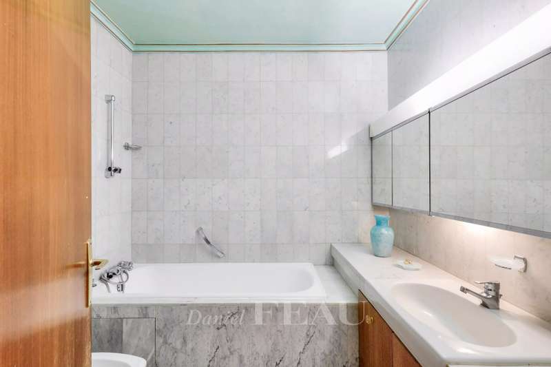 This superb apartment on the 4th floor of a luxurious mid 20th century residence with a caretaker commands a panoramic view of Paris and the Eiffel Tower. 165 sqm of bright living space includes a spacious entry, an over 60 sqm living/reception room bathed in sunshine opening onto a wide balcony, a separate kitchen, three bedrooms, two bathrooms with wc, and a utility room or possible shower room. A 4th bedroom would be easy to create. With two basement parking spaces and a cellar. In a convenient location in the immediate vicinity of the transport networks.