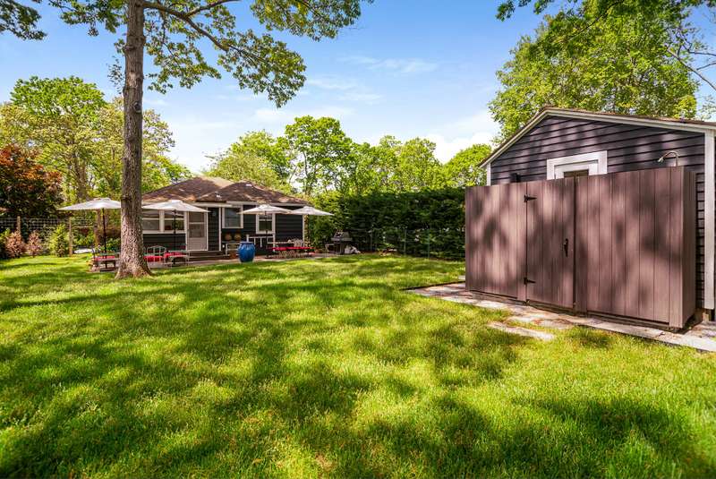 RR# RP241116. Located moments from the sandy beaches of Peconic Bay, this charming bungalow is also convenient to shops and restaurants in the villages of Sag Harbor and Southampton. Featuring a living room, kitchen, den, 3 bedrooms, and 1 full bath, a cozy cabana in the back yard with electricity and water provides an additional half bath and private outdoor shower. The back patio and hedged yard offer privacy and shade for entertaining or relaxing on lazy summer days. Breathtaking sunsets are on regular display just 1 block away at the community bay beach. Listing ID: 890606