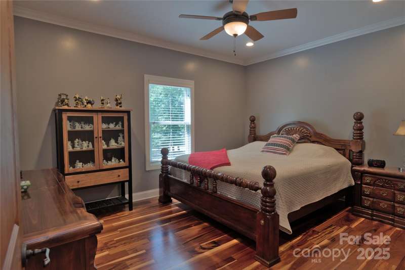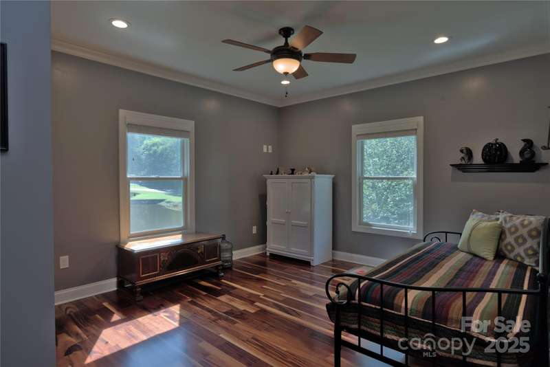 Over 4 1/2 acres and no HOA! A rare gem in Huntersville. Country living at its best. Custom build with high end finishes including gorgeous granite in kitchen and all bathrooms. Brazilian hardwood flooring throughout the main level. Kitchen has large island and custom cabinets with an open floor plan including dining area, living room, stone fireplace with gas logs, built in shelving and high ceilings. Large screened porch beside kitchen for entertaining. Upstairs is a loft area for an office or playroom with storage on either side. One side is already plumbed for a bathroom. Outside is beautiful and private a large deck looking over the wooded backyard with fully stocked pond. Irrigation system, gated entrance. This property also boasts a detached 5 car garage AND a massive steel outbuilding with over 3000 sq ft. perfect for collectible autos, auto shop, workshop or tons of storage. 2nd Living Quarters attached including 2 bedrooms, full kitchen and a full bath for all of your guests and family. Parking for boats, RV's, ATV's. Come see this one of a kind custom home and property waiting for your Buyers!