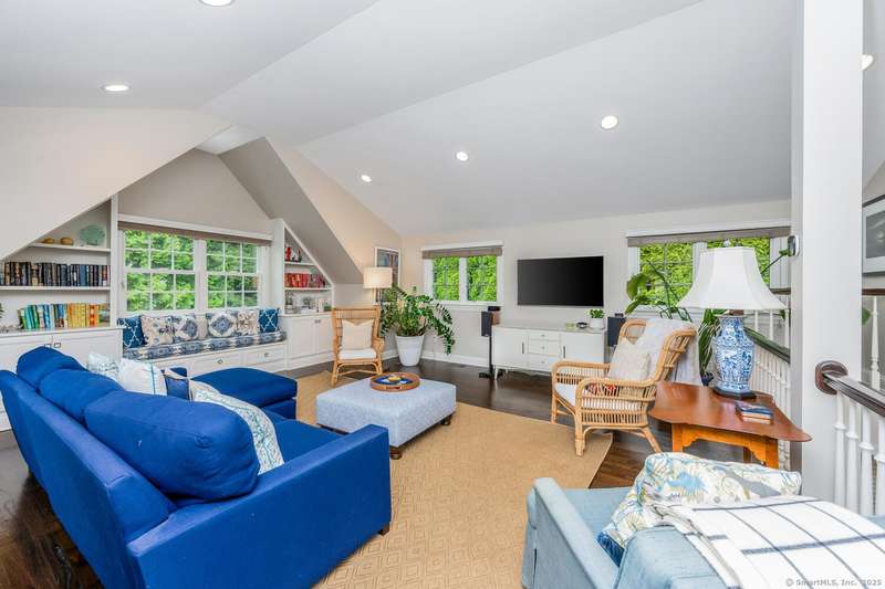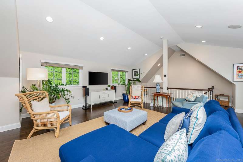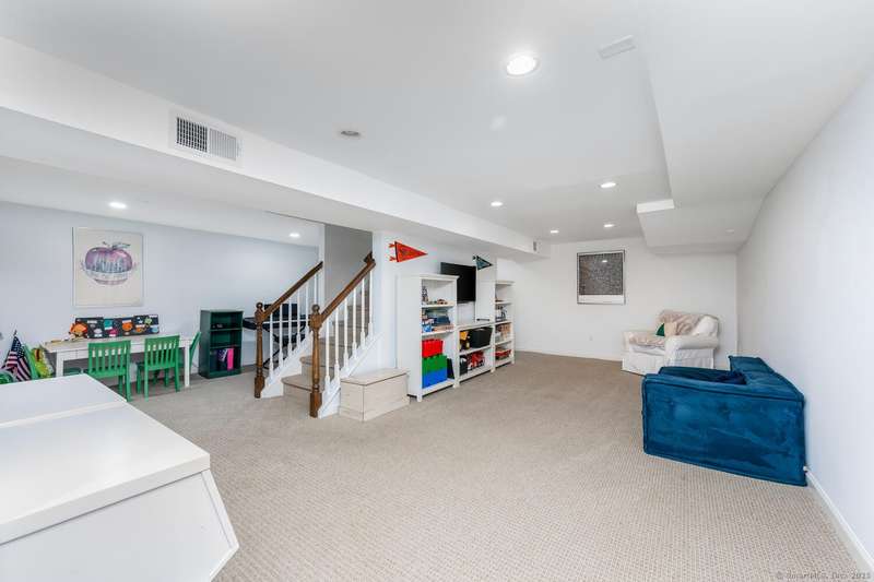MUST SEE four bedroom, two full and one half bath colonial on a highly sought-after cul-de-sac. Perfect for today's living, this home has a large eat-in kitchen and attached dining, 1st floor office or study space, family room with vaulted ceilings suitable for entertaining or family living, and mudroom flowing into a two car attached garage. The basement offers over 400 feet of additional playroom/recreational space, as well as three storage closets. Walk to Noroton Heights train station, beaches, YMCA, and Blue Ribbon Hindley Elementary. This home offers outdoor living space with a private, partially fenced yard and bluestone patio backyard.
