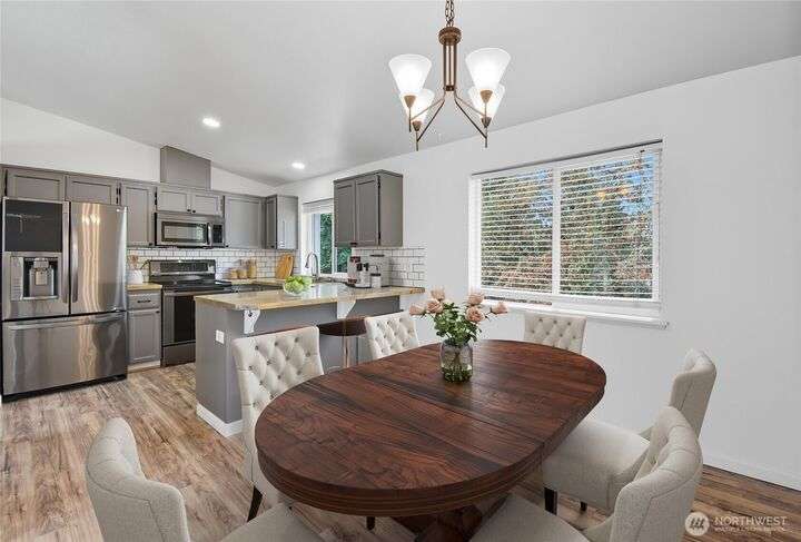 Pristine Like New Home In Brookdale Locale! 4-bedroom 3-bathroom abode in quiet established neighborhood! Polished hard surface floors greet & continue throughout main floor of Living/Dining/Kitchen. Great room has vaulted ceilings, attractive fireplace & spacious dining room for large gatherings. Kitchen is chef sized with upgraded stainless steel appliances & casual counter eating space for 2. Sizeable Primary suite, custom closet & lush 4-piece bath. 2-guest rooms share a full bath & completes main floor. Downstairs bonus room handles your largest of furniture/brick mantled gas fireplace. 3rd guest room with 1/2 bath tops off the lower level. Fully fenced backyard, entertainment sized patio & big storage shed. 2-car garage/gas furnace/AC
