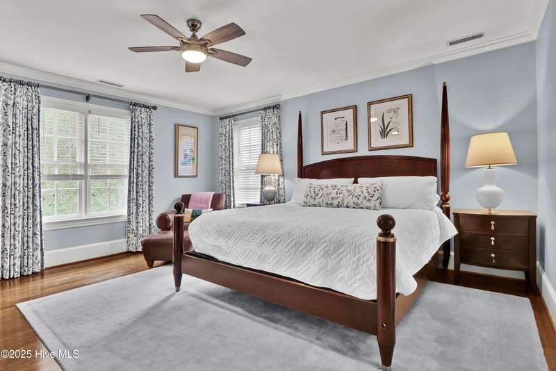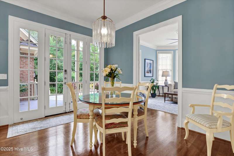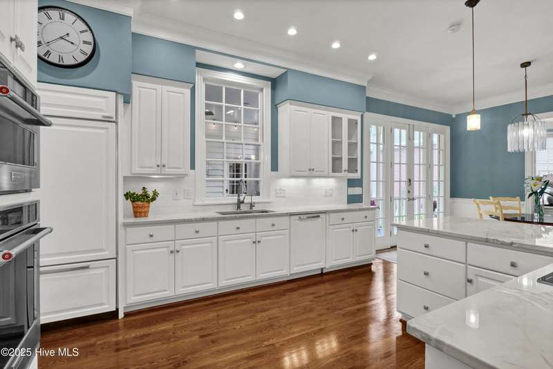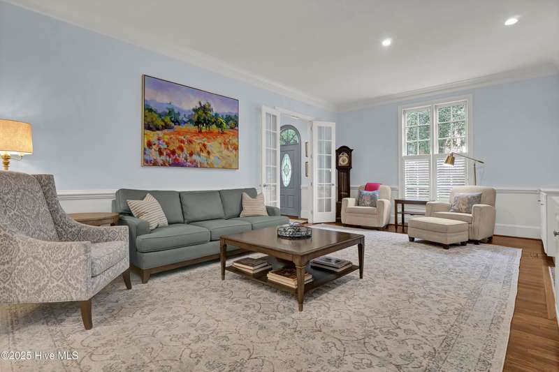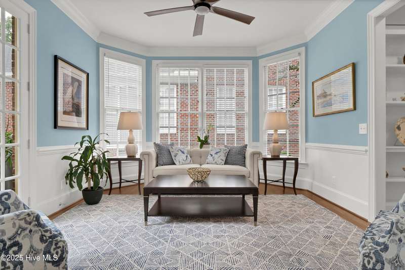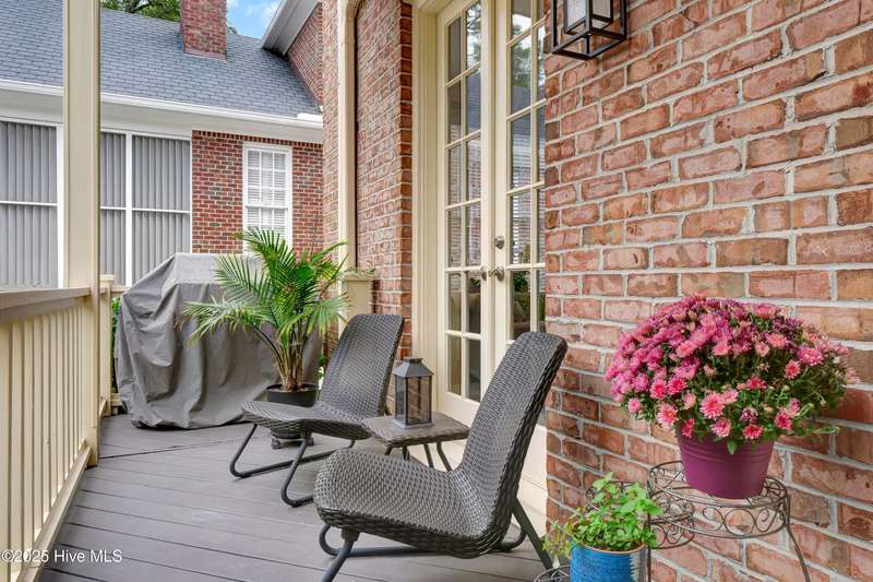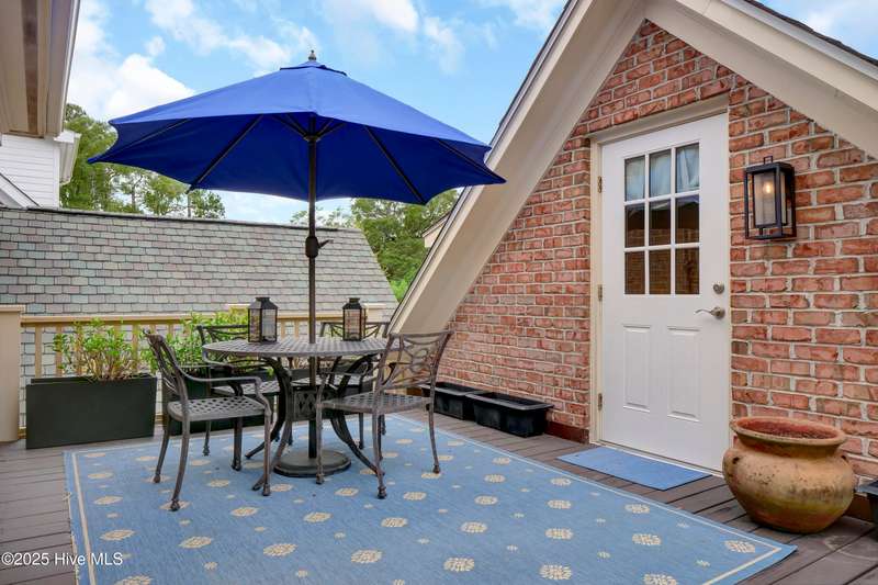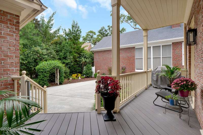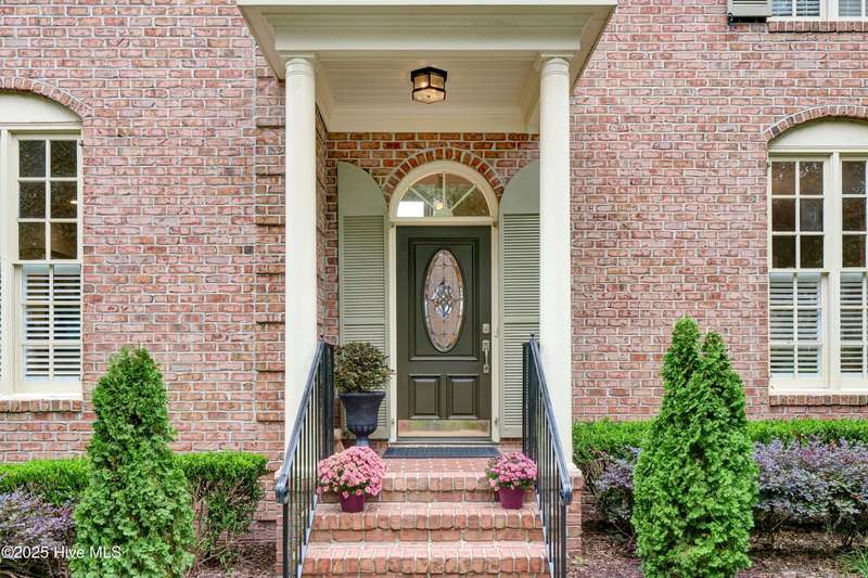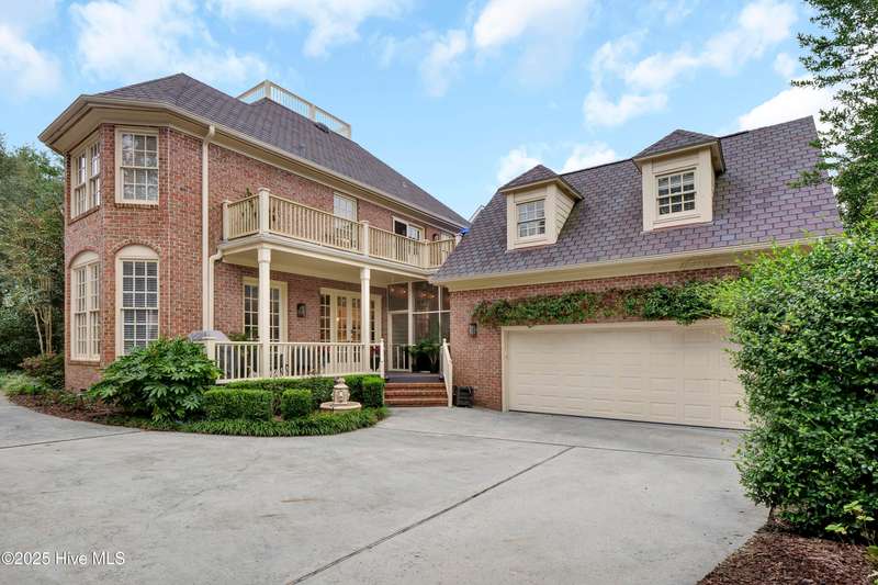 Nothing Could Be Finer... experience the most prestigious drive to your exceptional home as you meander down a tree lined street with views of the ICWW and Dye Golf course. Once you arrive you will experience a well maintained, beautiful Georgian style home located on a peaceful cul de sac street in the Villas of Landfall. This amazing home is in a perfect location to walk to the updated Dye clubhouse or Overlook Park, where you can sit peacefully overlooking the ICWW. Not only is the lifestyle of this home extraordinary, but the home is as well, boasting a craftsman style with soaring high ceilings, 9-foot door openings and attention to detail with extensive crown moldings, chair rail, built ins, butler's pantry, hardwood floors, and so much more! The floor plan is light and airy and offers space for any occasion. Enjoy a white kitchen with all stainless Kitchen Aide appliances, quartz counter tops, marble backsplash, paneled dishwasher and paneled subzero refrigerator. You may retreat to the great room after dinner to enjoy the warmth of the gas fireplace or the entertainment of a movie on your large built in 70'' HDTV, while having a cocktail from the wet bar. Built-in-cabinets and shelves are ideal for showcasing books and family photos. Entertaining is a snap with large dining room flowing into the keeping room with adjoining Butlers Pantry. Then, if you need to get away from everyone, you may escape to the peaceful screened porch, or one of the balconies, or upper sunning deck. The primary suite is spacious featuring dual closets, sitting area and opens to a cozy balcony. Then there is a detached suite over the garage with full bath that is ideal for guests, office or 4th bedroom. There is an abundance of storage in the 700 sq ft unfinished walk-in attic and oversized 2 car garage. This home is truly a pleasure, and the yard is maintained by the HOA to allow you time to enjoy!!!! Stones throw to Wrightsville Beach, Restaurants and Mayfaire.