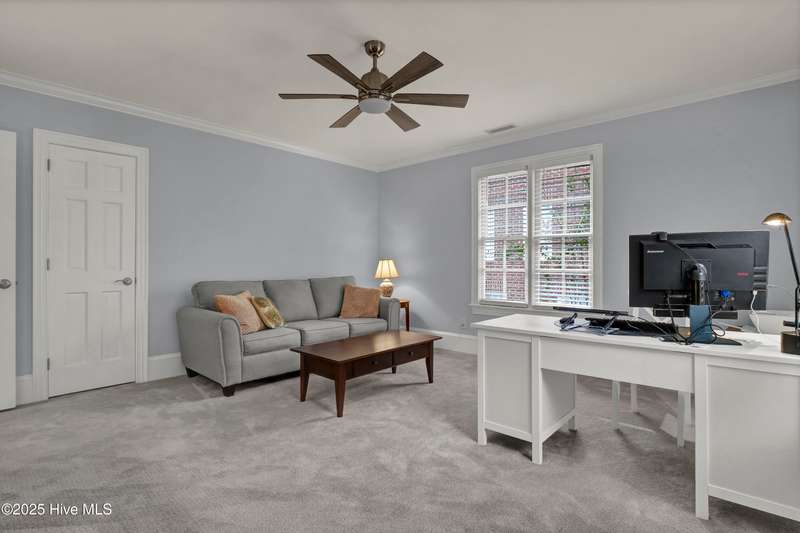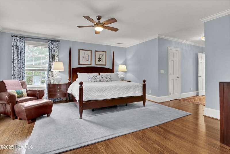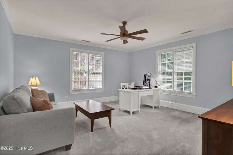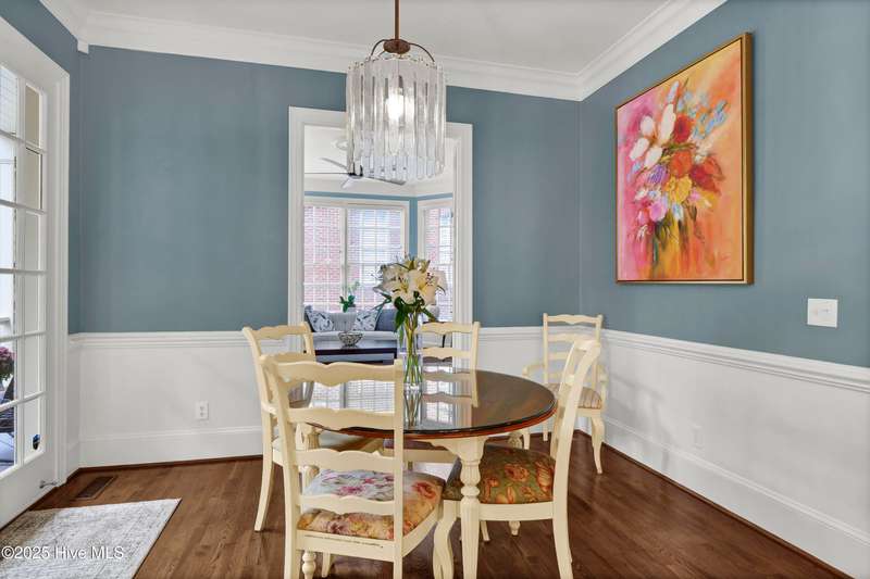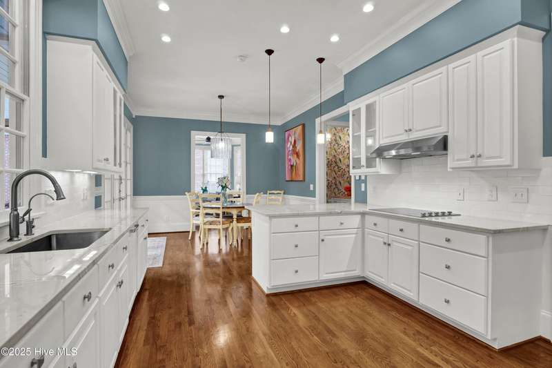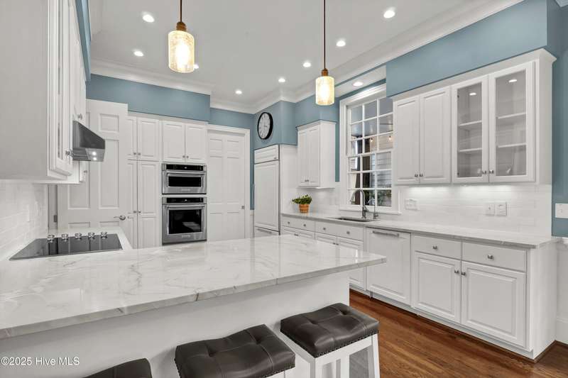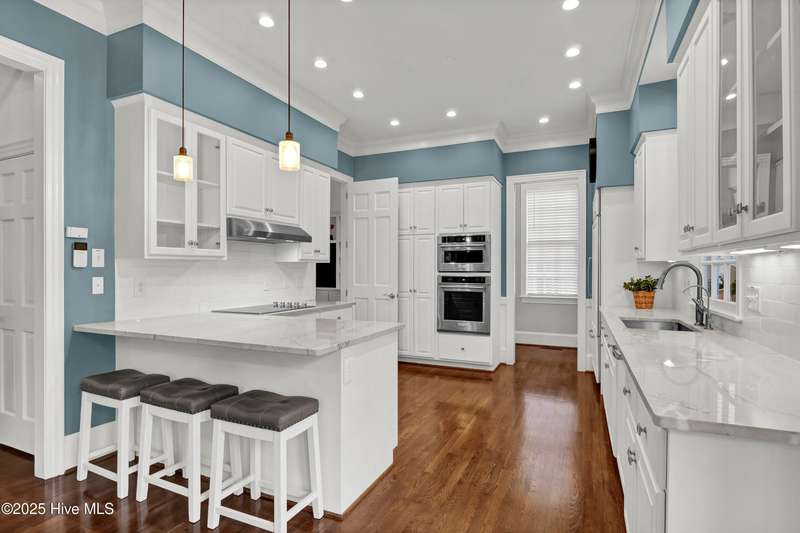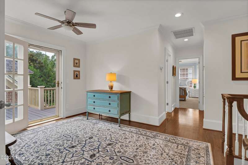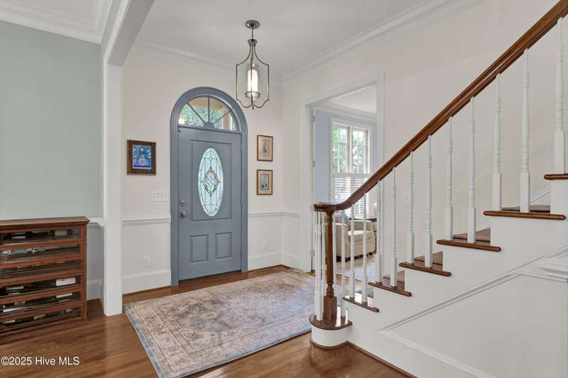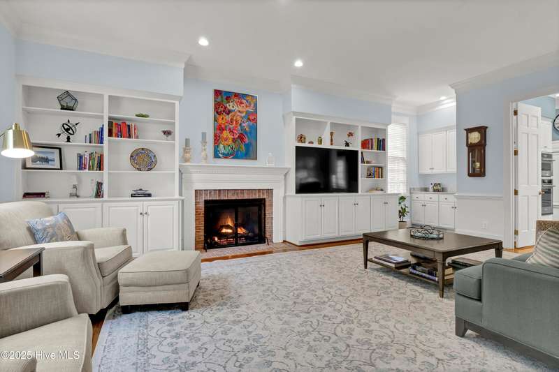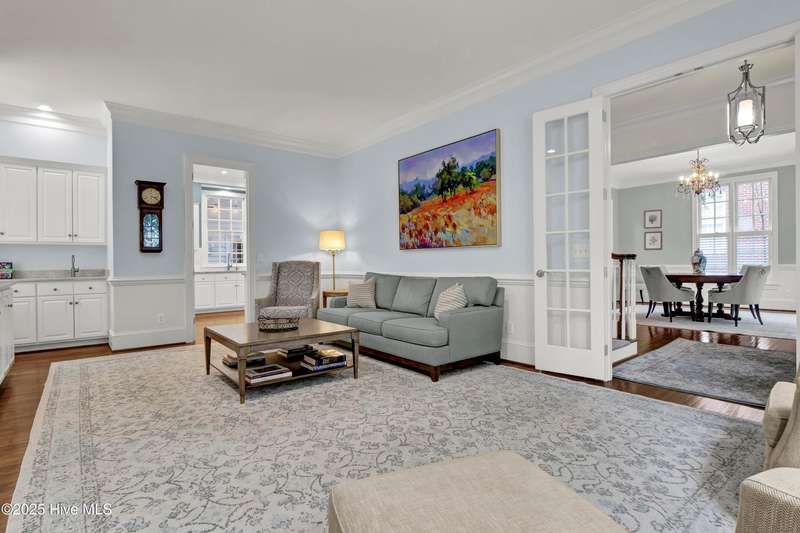 Nothing Could Be Finer... experience the most prestigious drive to your exceptional home as you meander down a tree lined street with views of the ICWW and Dye Golf course. Once you arrive you will experience a well maintained, beautiful Georgian style home located on a peaceful cul de sac street in the Villas of Landfall. This amazing home is in a perfect location to walk to the updated Dye clubhouse or Overlook Park, where you can sit peacefully overlooking the ICWW. Not only is the lifestyle of this home extraordinary, but the home is as well, boasting a craftsman style with soaring high ceilings, 9-foot door openings and attention to detail with extensive crown moldings, chair rail, built ins, butler's pantry, hardwood floors, and so much more! The floor plan is light and airy and offers space for any occasion. Enjoy a white kitchen with all stainless Kitchen Aide appliances, quartz counter tops, marble backsplash, paneled dishwasher and paneled subzero refrigerator. You may retreat to the great room after dinner to enjoy the warmth of the gas fireplace or the entertainment of a movie on your large built in 70'' HDTV, while having a cocktail from the wet bar. Built-in-cabinets and shelves are ideal for showcasing books and family photos. Entertaining is a snap with large dining room flowing into the keeping room with adjoining Butlers Pantry. Then, if you need to get away from everyone, you may escape to the peaceful screened porch, or one of the balconies, or upper sunning deck. The primary suite is spacious featuring dual closets, sitting area and opens to a cozy balcony. Then there is a detached suite over the garage with full bath that is ideal for guests, office or 4th bedroom. There is an abundance of storage in the 700 sq ft unfinished walk-in attic and oversized 2 car garage. This home is truly a pleasure, and the yard is maintained by the HOA to allow you time to enjoy!!!! Stones throw to Wrightsville Beach, Restaurants and Mayfaire.