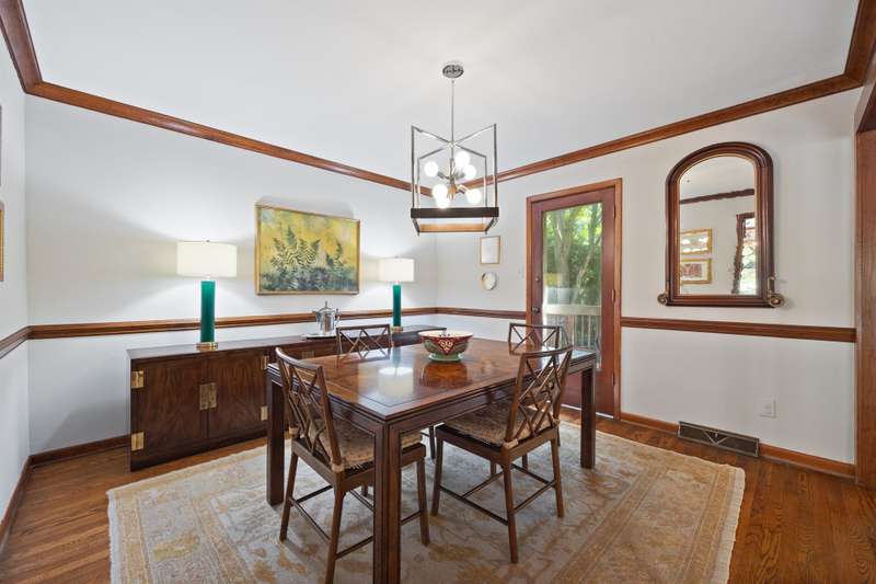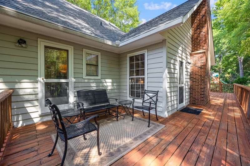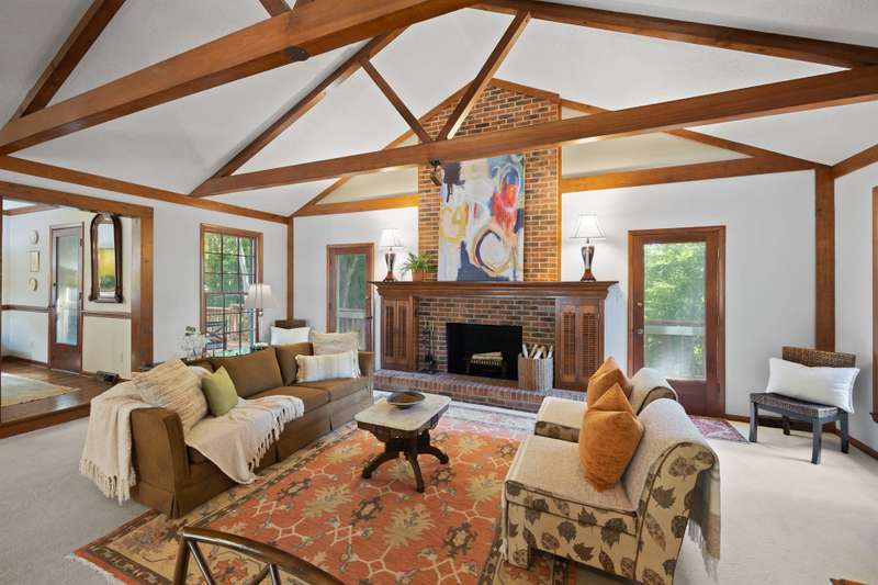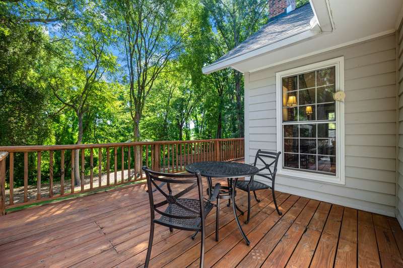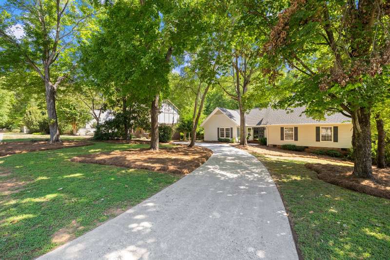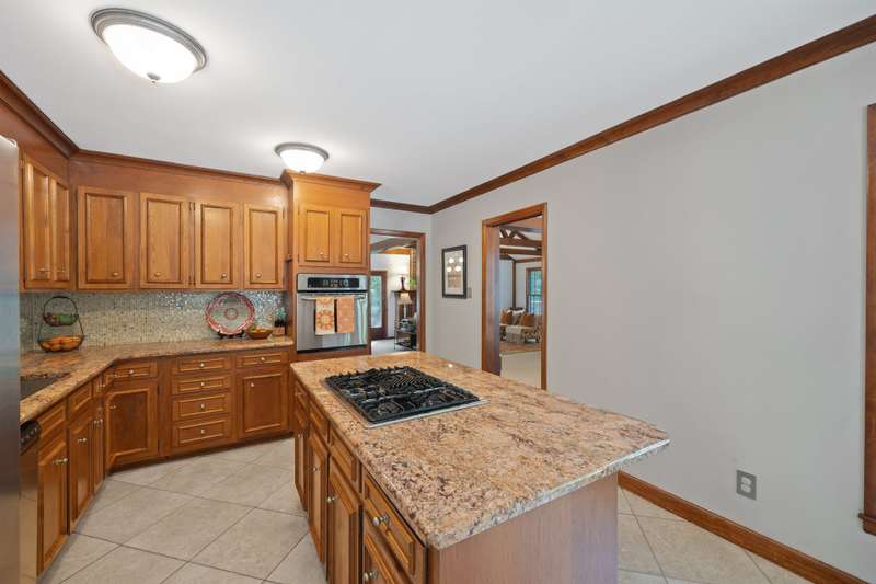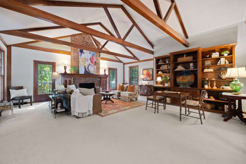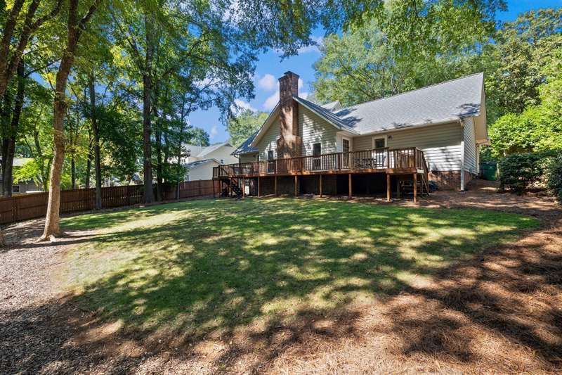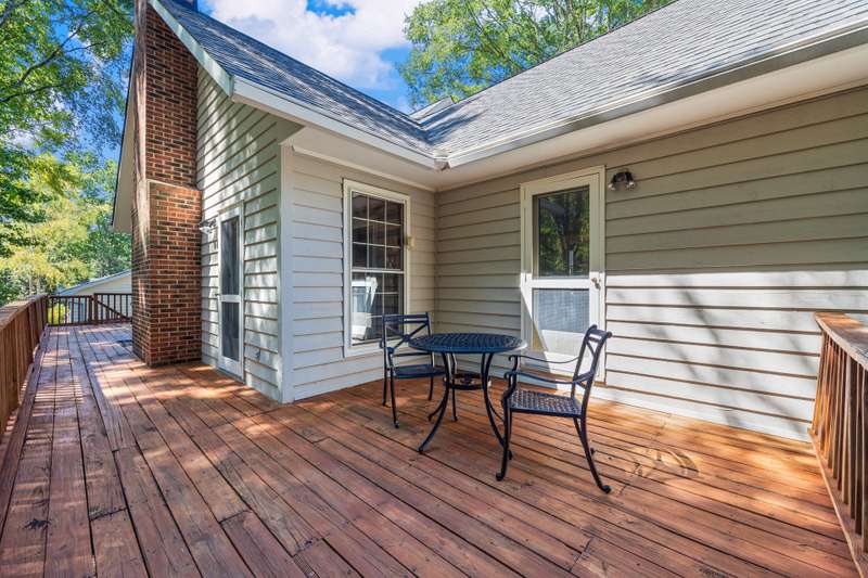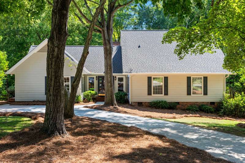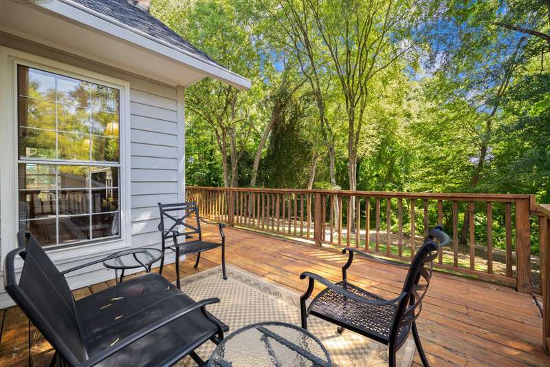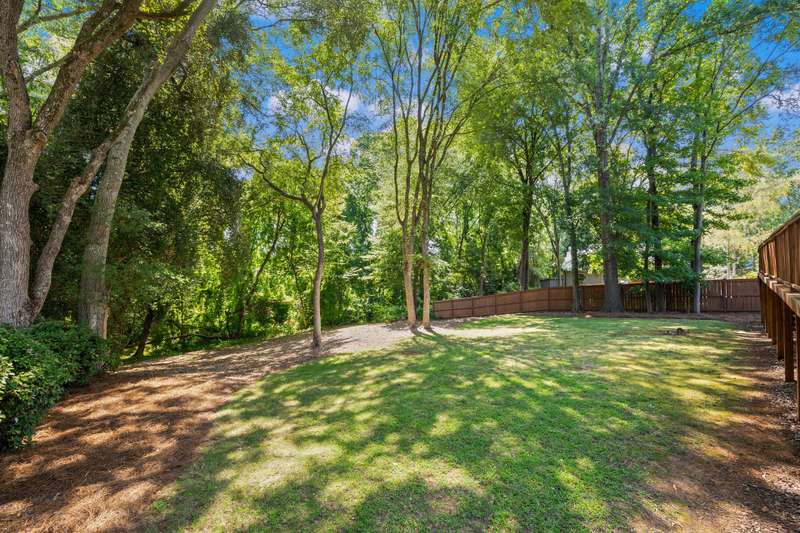 Welcome to 5225 Camilla Drive! An exceptional 1.5 story custom-built home perfectly situated on a deep, private wooded lot in the highly desirable Carmel Woods neighborhood?just minutes from SouthPark and within walking distance to a school, athletic fields, and a scenic park. This beautifully maintained one-owner home offers a desirable 4 bed, 3.5 bath floor plan designed for both everyday living and effortless entertaining. The main living spaces include double entry doors that open to an airy foyer leading into a stunning living room. The spacious living area has a vaulted ceiling with exposed wood beams, a stately brick fireplace, custom mantle, and built-in cabinetry. The dining room flows seamlessly from the living room with hardwood floors, updated designer lighting, and deck access. The gourmet kitchen has solid wood cabinets, stainless steel appliances, gas cooktop, granite countertops, center island, tile backsplash, and a light-filled breakfast area with a copper chandelier. This timeless home blends character and functionality with features like the side entry off the kitchen that includes a drop zone, extensive pantry storage, laundry area, utility sink and mudroom, powder room, closet, flex room perfect for a home office, and a large pull-down attic space ideal for a future home addition. The main floor offers a private primary retreat with walk-in closet, ensuite bath, and direct deck access. Two spacious secondary bedrooms on the main level share a large hall bath with dual sinks, abundant storage, and tile shower/bath combo. A privately tucked staircase leads to an expansive upstairs room with ensuite bath, large closet, and two walk-in attic spaces ideal as a second primary, guest suite or flex space. The outdoor living space is accentuated by the nearly 1-acre mature lot backing up to a creek, expansive deck perfect for gatherings or enjoying nature and access to the outside entrance of the large workshop/ utility space. Recent updates and maintenance include new plumbing and lighting fixtures (2025), roof replaced (2023), new front Gutter Guards (2023), furnace and gas water heater (2019), AC replaced in (2015).