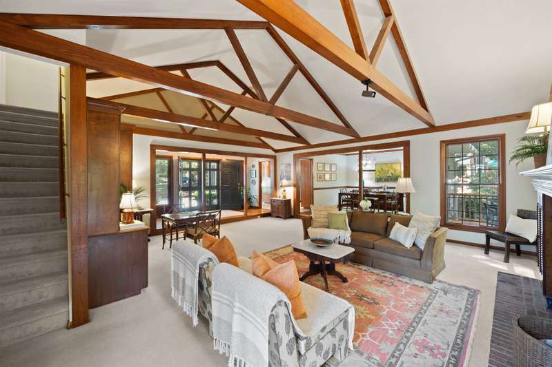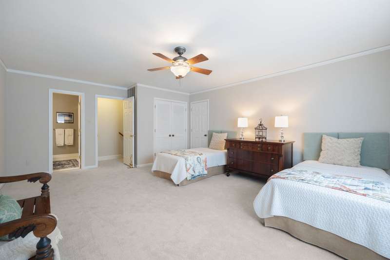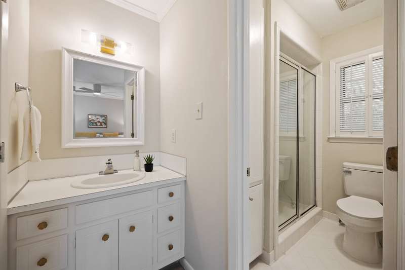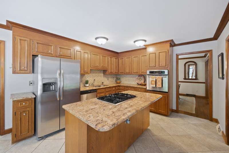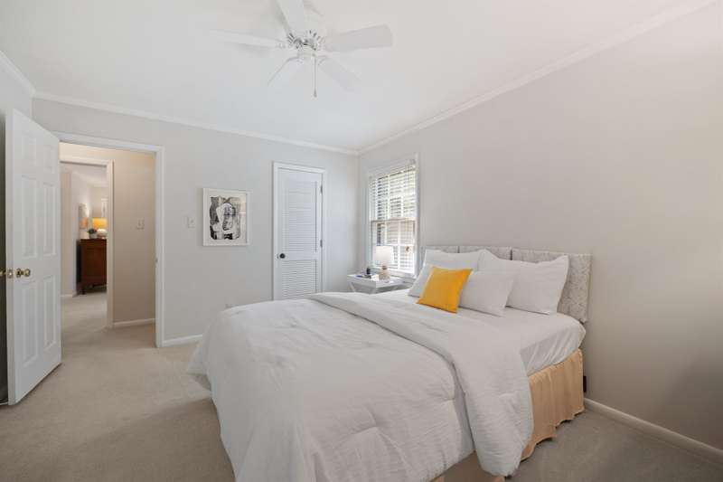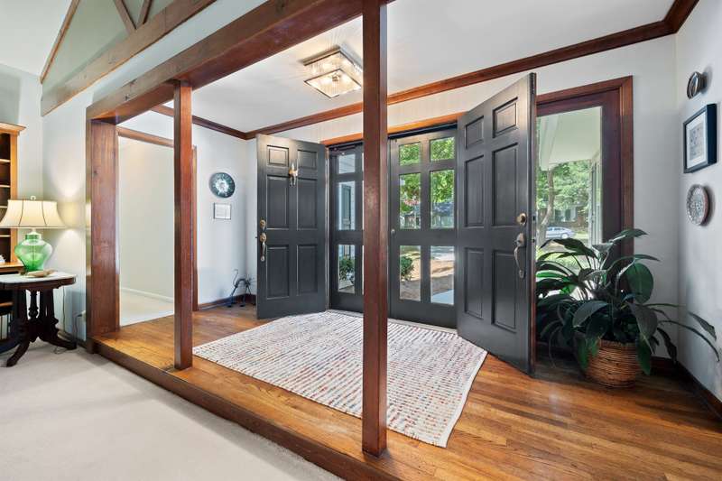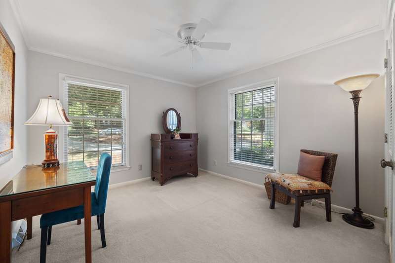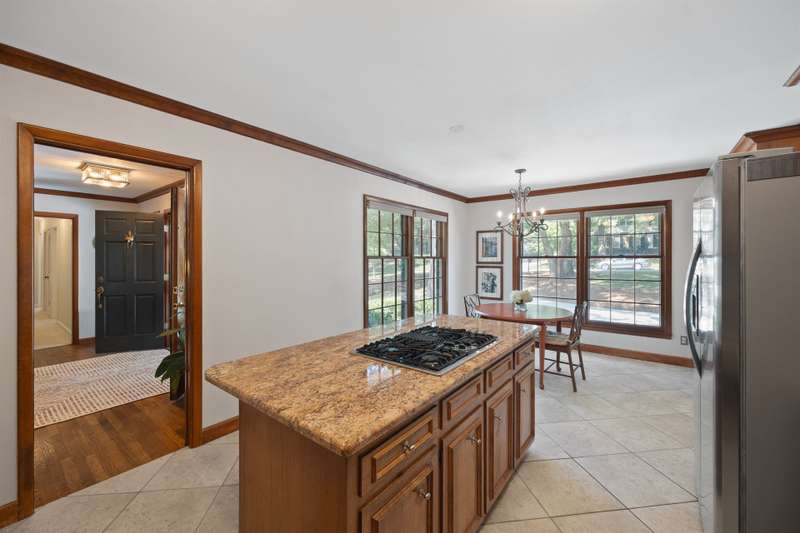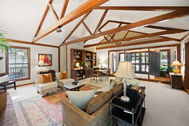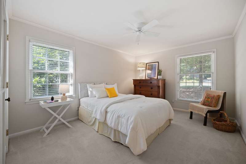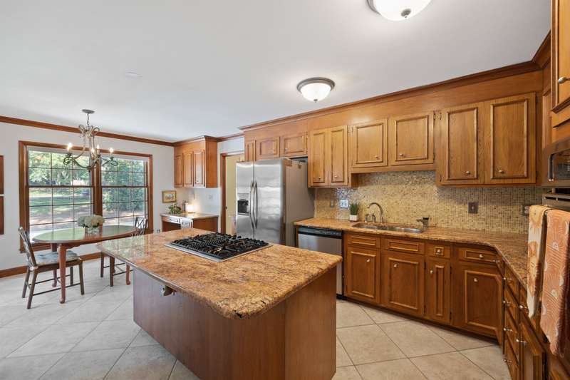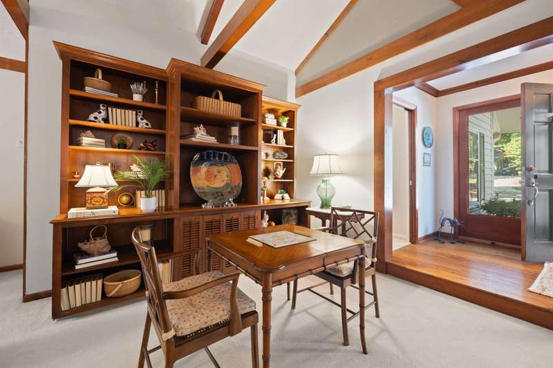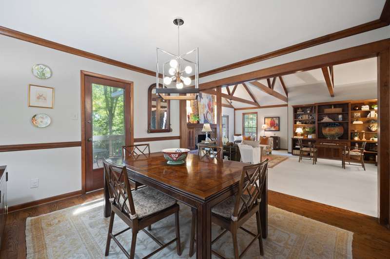 Welcome to 5225 Camilla Drive! An exceptional 1.5 story custom-built home perfectly situated on a deep, private wooded lot in the highly desirable Carmel Woods neighborhood?just minutes from SouthPark and within walking distance to a school, athletic fields, and a scenic park. This beautifully maintained one-owner home offers a desirable 4 bed, 3.5 bath floor plan designed for both everyday living and effortless entertaining. The main living spaces include double entry doors that open to an airy foyer leading into a stunning living room. The spacious living area has a vaulted ceiling with exposed wood beams, a stately brick fireplace, custom mantle, and built-in cabinetry. The dining room flows seamlessly from the living room with hardwood floors, updated designer lighting, and deck access. The gourmet kitchen has solid wood cabinets, stainless steel appliances, gas cooktop, granite countertops, center island, tile backsplash, and a light-filled breakfast area with a copper chandelier. This timeless home blends character and functionality with features like the side entry off the kitchen that includes a drop zone, extensive pantry storage, laundry area, utility sink and mudroom, powder room, closet, flex room perfect for a home office, and a large pull-down attic space ideal for a future home addition. The main floor offers a private primary retreat with walk-in closet, ensuite bath, and direct deck access. Two spacious secondary bedrooms on the main level share a large hall bath with dual sinks, abundant storage, and tile shower/bath combo. A privately tucked staircase leads to an expansive upstairs room with ensuite bath, large closet, and two walk-in attic spaces ideal as a second primary, guest suite or flex space. The outdoor living space is accentuated by the nearly 1-acre mature lot backing up to a creek, expansive deck perfect for gatherings or enjoying nature and access to the outside entrance of the large workshop/ utility space. Recent updates and maintenance include new plumbing and lighting fixtures (2025), roof replaced (2023), new front Gutter Guards (2023), furnace and gas water heater (2019), AC replaced in (2015).