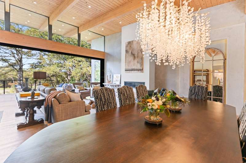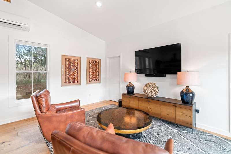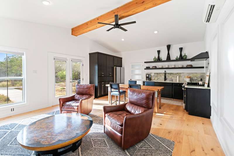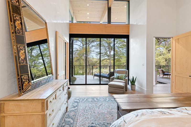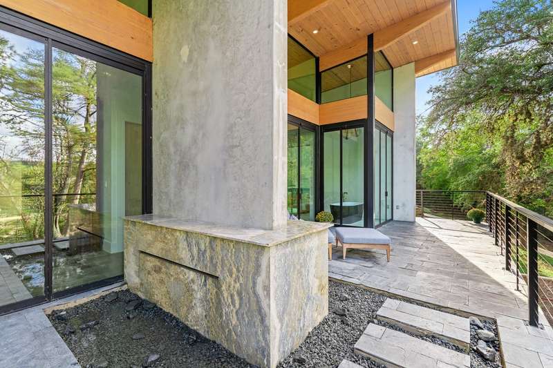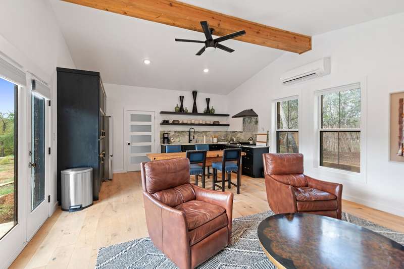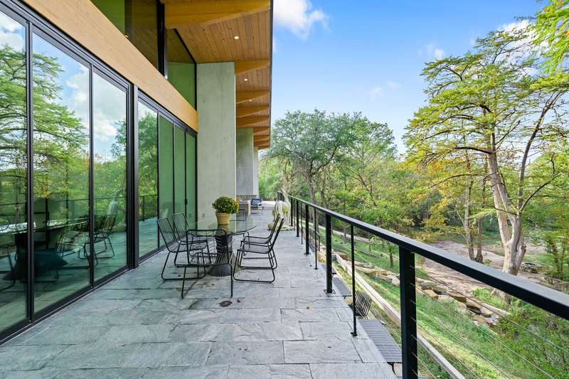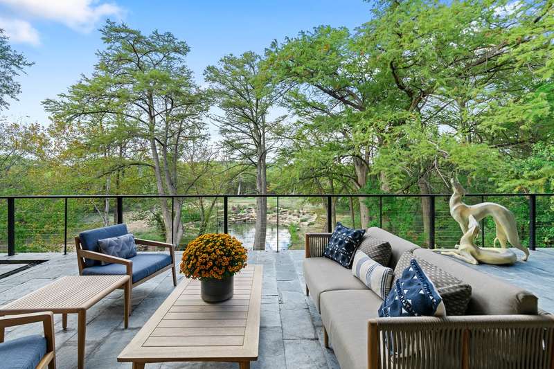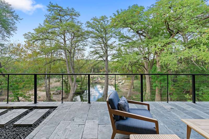The moment you drive through the gates, you will feel the peace that this riverfront oasis exudes. Built-in the trees, this exquisitely curated home tucked in the trees on the Guadalupe River has been perfectly executed. Its architecture, design, and craftsmanship come together to create a once-in-a-lifetime river paradise. With glass doors that completely open up across the entire back of the house, you are able to truly enjoy the natural landscape including the magnificent waterfall, pond, and river on this 3.8-acre lot. The main home has 3 bedrooms, 4 full bathrooms, 2 living areas, a large open kitchen with butler's pantry, and a nice, large laundry room. The equally luxurious guest home has another bedroom, bathroom, kitchen, living room, and another laundry room. You truly don't want to miss this home that is like no other on the Guadalupe River. You must come see it for yourself and you will not want to leave.