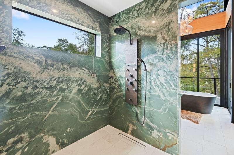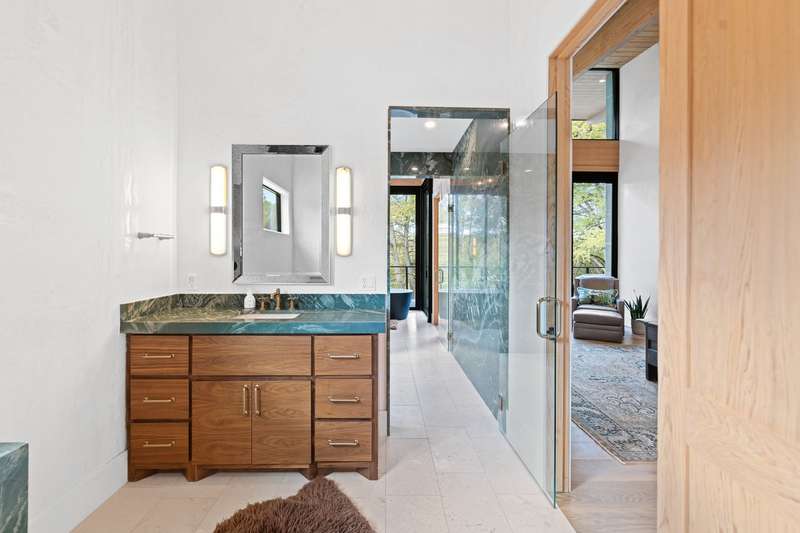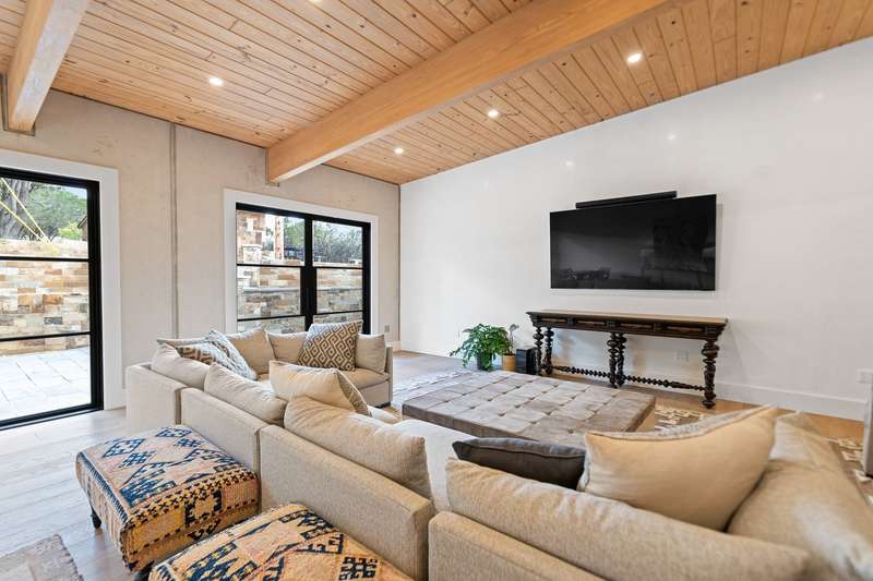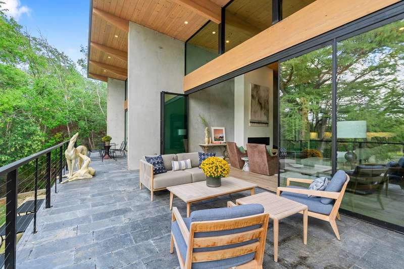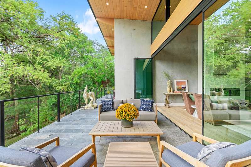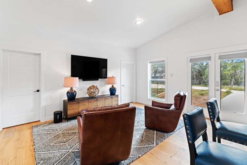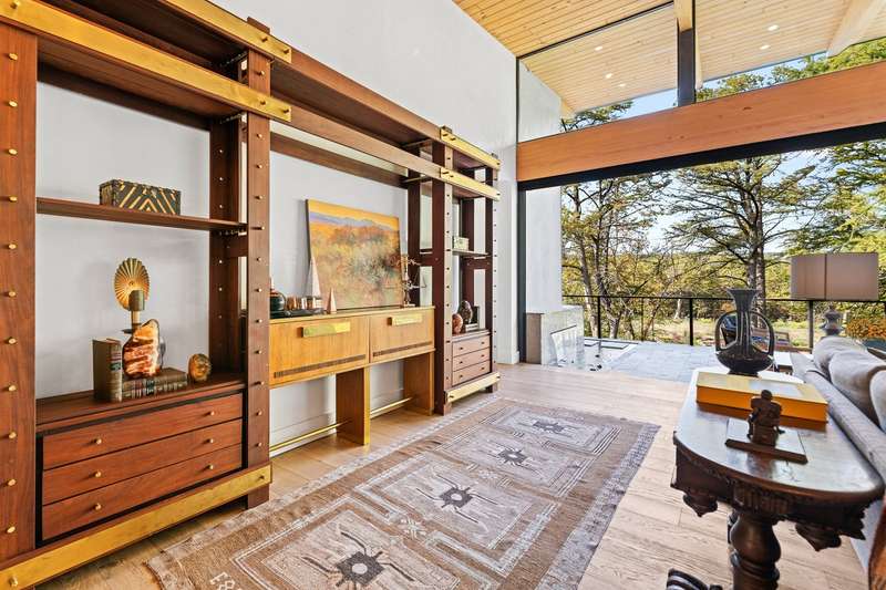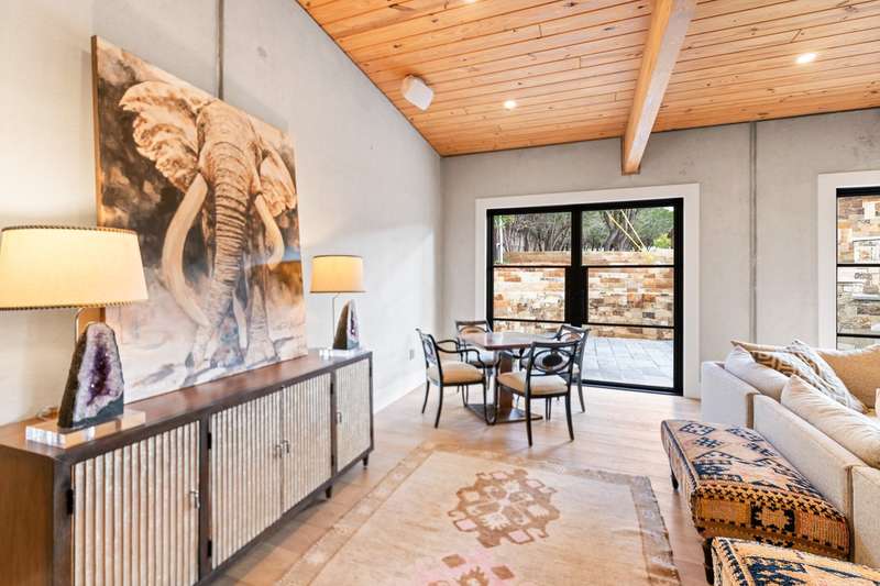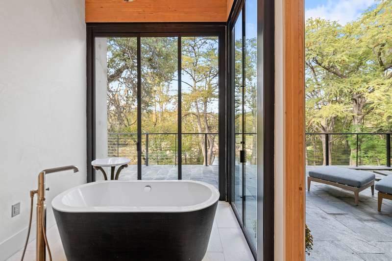 The moment you drive through the gates, you will feel the peace that this riverfront oasis exudes. Built-in the trees, this exquisitely curated home tucked in the trees on the Guadalupe River has been perfectly executed. Its architecture, design, and craftsmanship come together to create a once-in-a-lifetime river paradise. With glass doors that completely open up across the entire back of the house, you are able to truly enjoy the natural landscape including the magnificent waterfall, pond, and river on this 3.8-acre lot. The main home has 3 bedrooms, 4 full bathrooms, 2 living areas, a large open kitchen with butler's pantry, and a nice, large laundry room. The equally luxurious guest home has another bedroom, bathroom, kitchen, living room, and another laundry room. You truly don't want to miss this home that is like no other on the Guadalupe River. You must come see it for yourself and you will not want to leave.