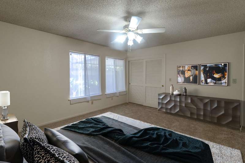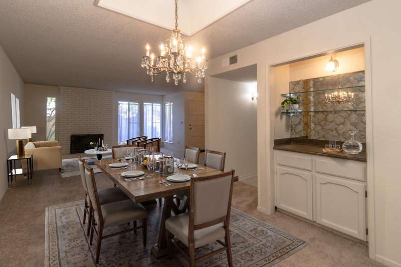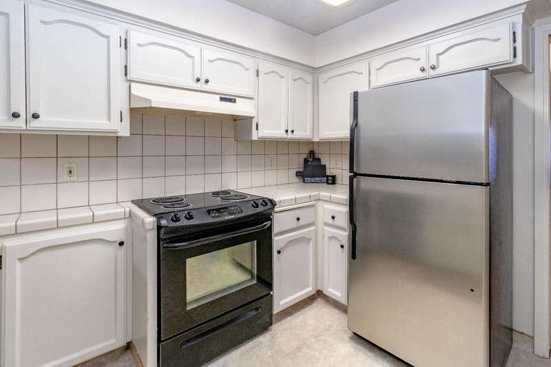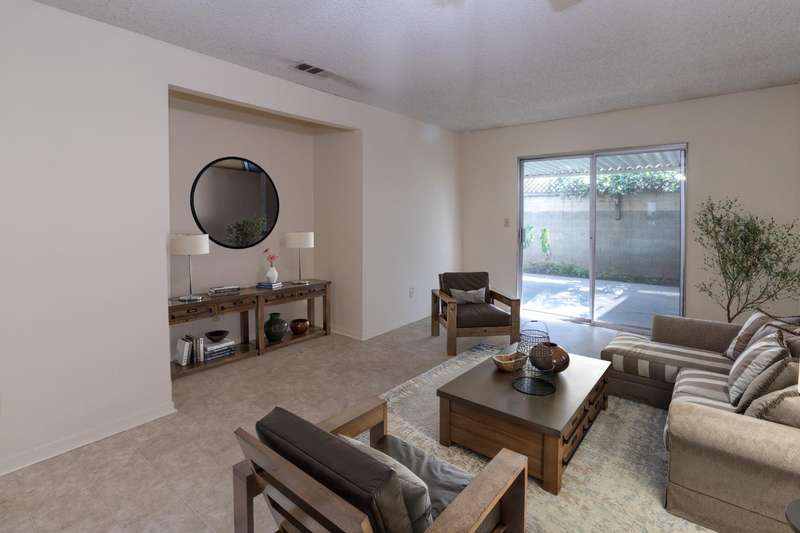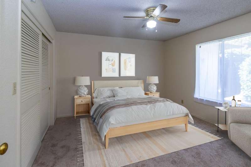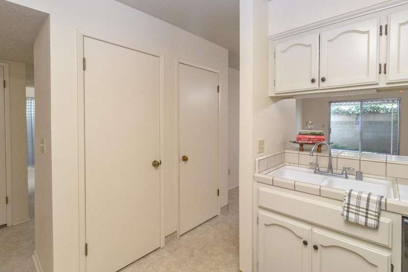 If you're looking for a great condo in a great location look no further than this charming home. Seller has recently improved it with new paint and carpet, making it move in ready for you. Enjoy relaxing on either the front patio tucked in behind the wall giving you complete privacy, or the covered back patio in this South facing unit. This unit does have a two car garage (that enters directly into the house) washer/dryer hookup (both gas and electric) and storage shelves to keep things neat and tidy. Inside you'll find a front living room with a beautiful white brick fireplace that flows into the dining area with a skylight and dry bar. Going on into the kitchen are two pantry's, refreshed cabinets, and the fridge is included. Just on the other side of the kitchen you have bar seating, a nook for your TV, bookshelves, etc., and a sliding door out onto the back patio. There is a closet door right by the garage and two more in the hallway providing you with plenty of storage options. At the end of the hallway is one bedroom and a full bath with tub/shower. On the other side of that is the primary suite featuring a wall to wall vanity, and freestanding shower. This unit sits caddy corner to the community pool, and also has a gated path that leads you over to the shopping center behind you. A grocery store, restaurants, bakeries, coffee shops, salons, boutiques and more are a stones throw away. It doesn't get much more convenient than that. It's cute, convenient, and ready for you to move in and start living your best life. Seller incentive! Call your realtor for details and private showing.