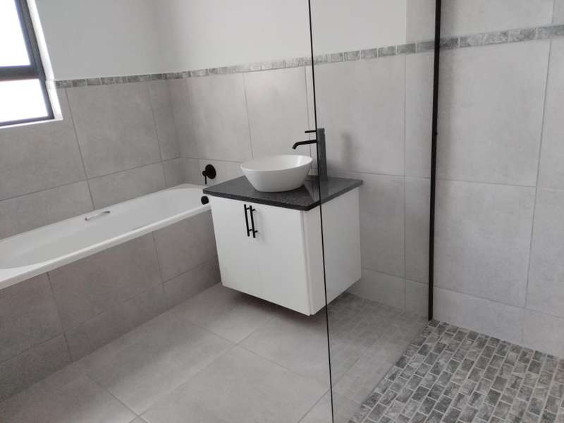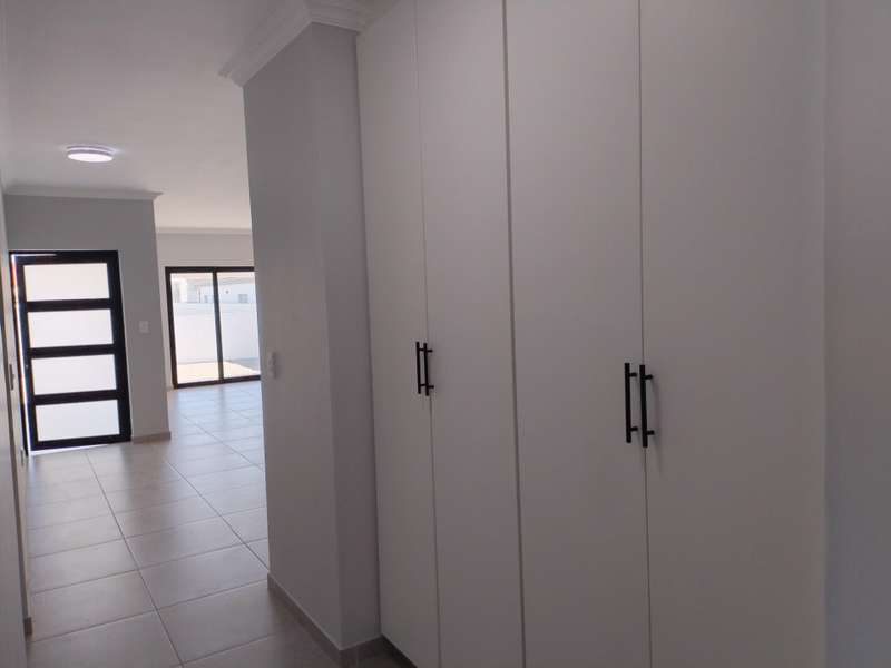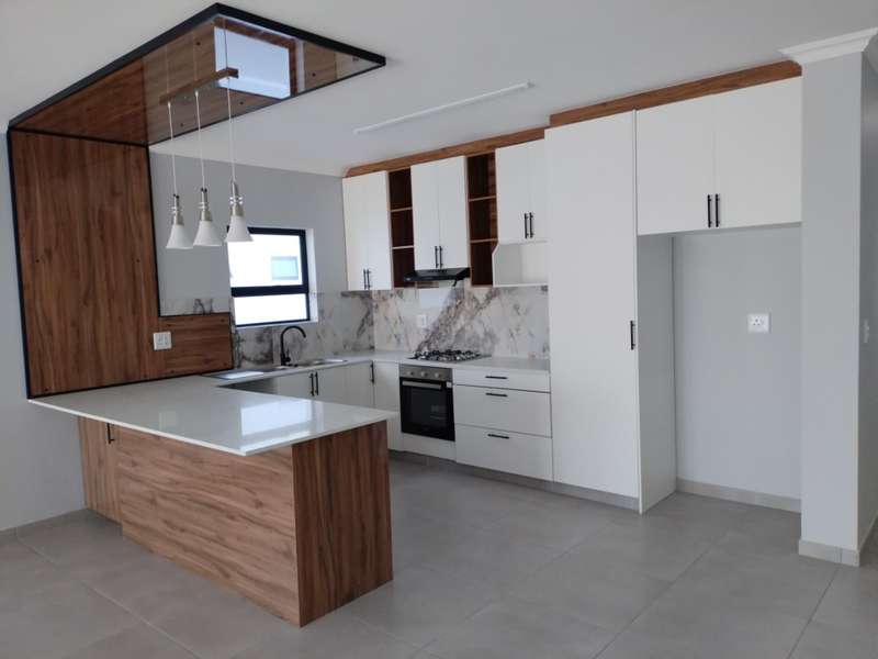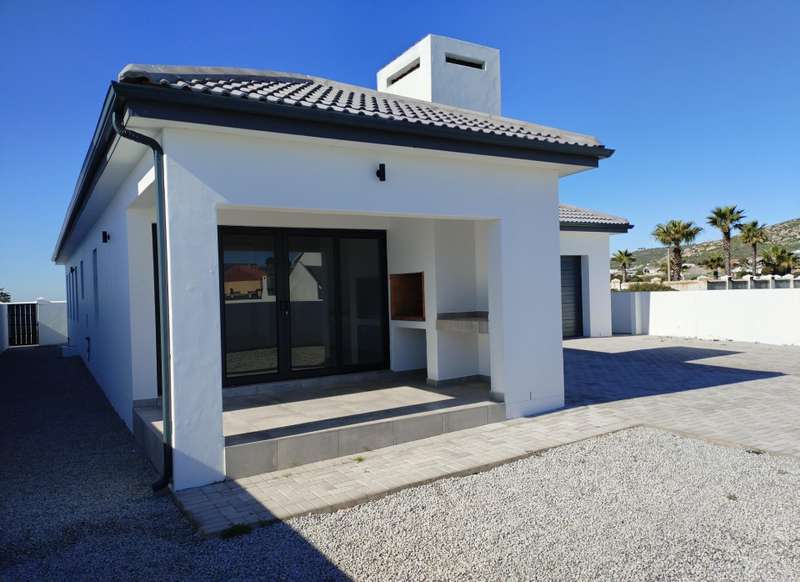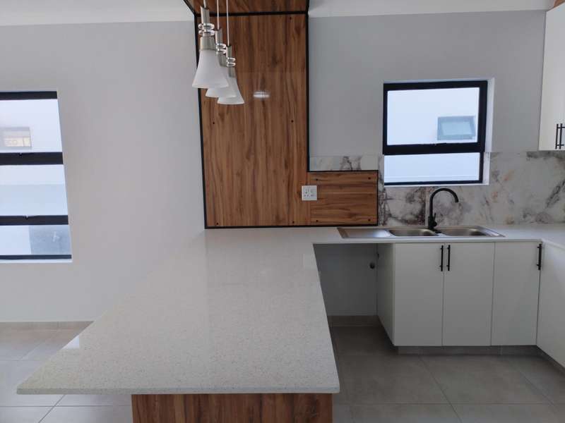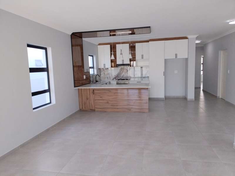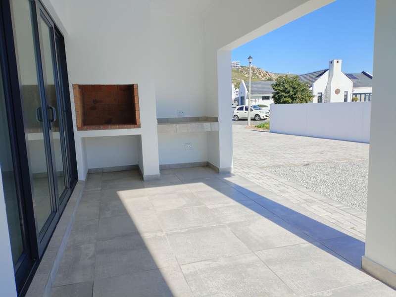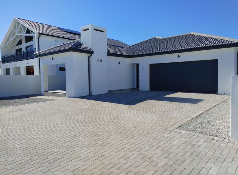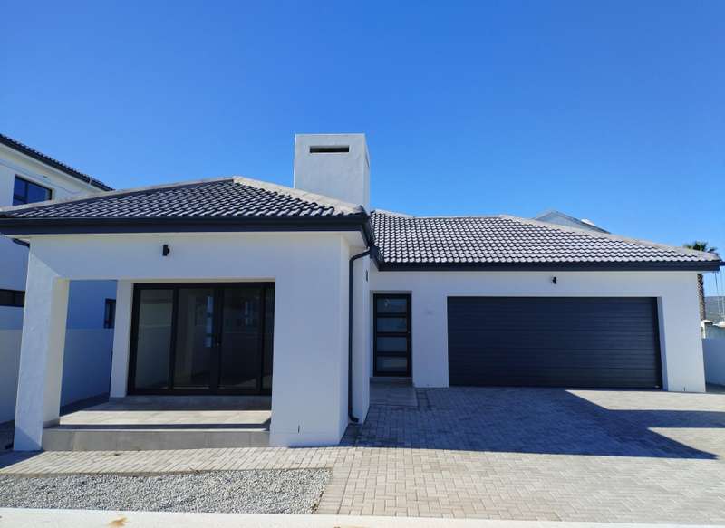 This brand-new, three-bedroom home is a must-see! Located in the desirable Sandy Point Beach Estate, it's just a five-minute walk from the water's edge. Whether you're looking for a comfortable family home or a tranquil holiday retreat, this property is perfect. The main bedroom features a stylish en-suite bathroom, and all bedrooms offer ample closet space. There is also a spacious full family bathroom and an extra linen cupboard. The home boasts an open-plan design with a bright and airy living area. The kitchen is both practical and unique, with tasteful tile finishes that set it apart. The kitchen and open-plan living areas flow seamlessly together, leading to an undercover braai area through a patio door. From here, you can enjoy the scent of the ocean breeze and spend lazy days relaxing. The spacious double garage includes fittings for a washing machine and extra cupboards for added convenience.