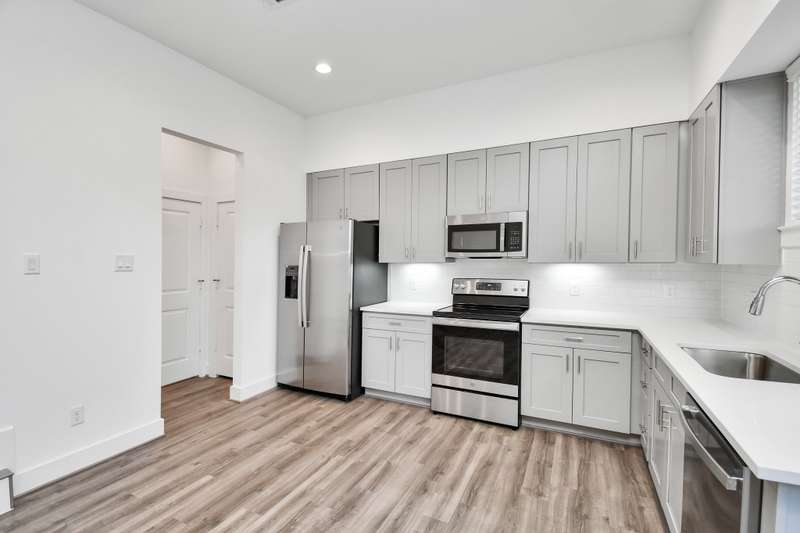 Welcome to Oaks at Laverne, a new construction rental community consisting of 68 homes. This unit includes all appliances (Refrigerator, washer, dryer) and blinds installed. Spring Branch gated community located minutes from Memorial City and City Center. Two story with first floor living, 3 bed, 2 baths, open living to kitchen. Vaulted ceiling in light and bright Primary Suite which includes dual sinks, massive walk-in shower, shaker cabinetry, and quartz counters. LED lighting. Plank flooring throughout (no carpet). Two car garage and fenced outdoor space. USE 1951 LAVERNE, HOUSTON, TX 77080 FOR GPS LOCATION. *End of year special: special pricing of $2,100, on 13 month leases, with approved credit only*