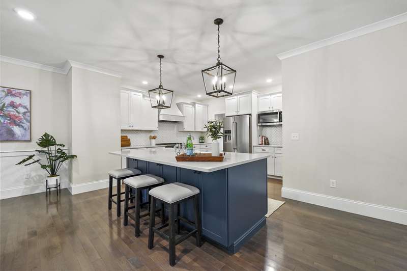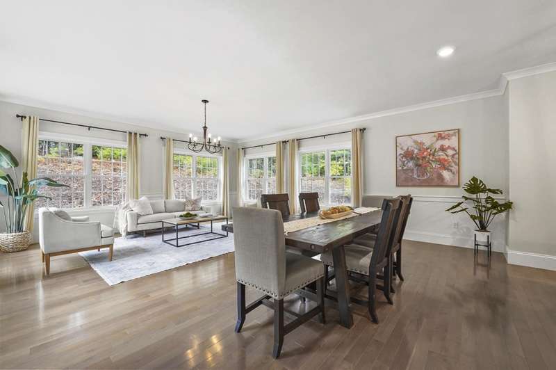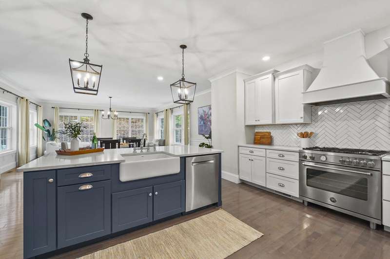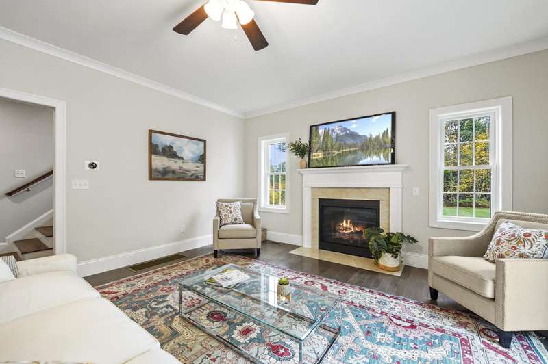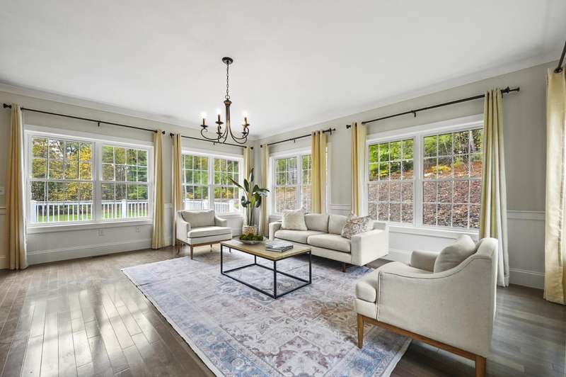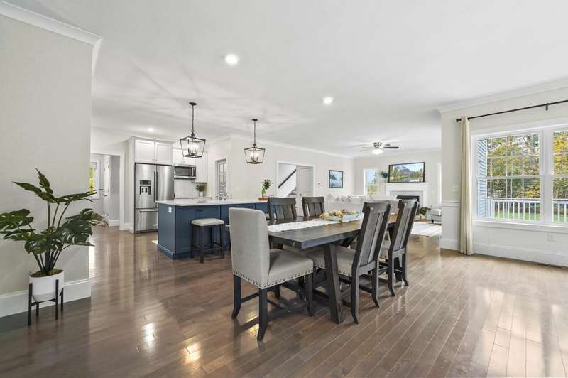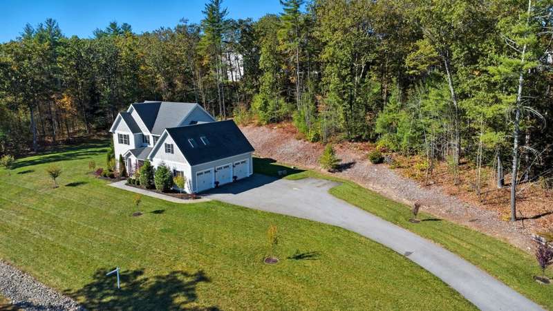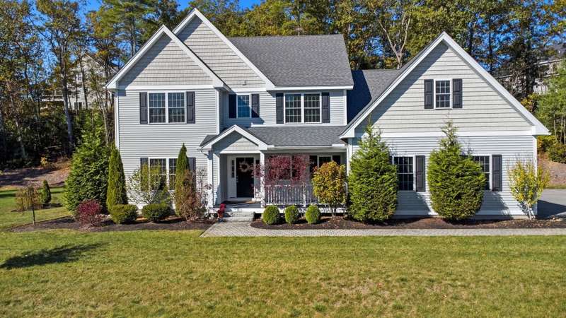 Welcome to 18 Sawtelle Road in beautiful Brookline, NH! This picturesque home sits on a serene 2-acre lot with a charming covered porch, surrounded by woods and open yard space, perfect for play or gardening. Gleaming hardwood floors flow throughout the main level, featuring a spacious office with built-in shelving. A stunning custom kitchen features quartz countertops, farmhouse sink, Kitchenaid refrigerator, Bosch dishwasher, Bertazzoni 5-burner gas stove, and walk-in pantry. A large island opens to a bright dining area and cozy living room with a gas fireplace, perfect for lounging and entertaining. A slider leads to a composite deck and private back yard. Upstairs offers three generous bedrooms, a bonus room, and a luxurious primary suite with a tiled shower, double sinks, and walk-in closet. The second floor also includes a laundry room and full bathroom. The fully finished basement expands your living space with a full bathroom, large recreation room, and two additional bonus rooms; endless possibilities await. The oversized three-car garage and a custom mudroom provides excellent storage and function. You won’t want to miss this, schedule a showing today!