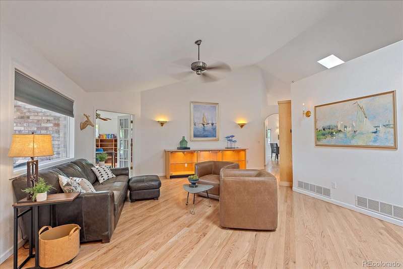Serene Ranch Living Backing to Nature - Tucked into a peaceful cul-de-sac in Belleview Farms, this single-level ranch home blends comfort, elegance, and everyday convenience in the most inspiring way. From the moment you arrive, vaulted ceilings, open living spaces, and warm natural light create a feeling of welcome that only grows stronger as you explore. The heart of the home is the open-plan dining and kitchen area, flowing easily to the family room where a cozy fireplace invites year-round gatherings. A separate lounge near the entry offers flexibilityperfect for hosting or quiet evenings. The remodeled kitchen is beautifully appointed with granite countertops, generous cabinetry, and an island. Your primary suite is a true retreat, featuring an oversized space with a private fireplace, a walk-in closet, and a luxurious five-piece bathroom complete with heated floors, a spa tub, and a steam shower. Two additional bedrooms and a second bathroom make this home ideal for anyone who values both style and functionality. Step outside to an expansive deck overlooking the parkland that borders your backyard. This tranquil outdoor space is perfect for savoring morning coffee, enjoying summer barbecues, or simply watching the seasons change against your lush green surroundings. Here, youre not just buying a homeyoure securing a lifestyle. Belleview Farms places you minutes from C-470 for easy commuting, yet right on the edge of nature with direct access to trails and open spaces. Southwest Plaza shopping, golf courses, and Chatfield State Park are all close by, offering the best of both convenience and recreation. This is where peace, privacy, and connection to community come together. A home that feels both inspiring and enduringready for you to begin your next chapter.