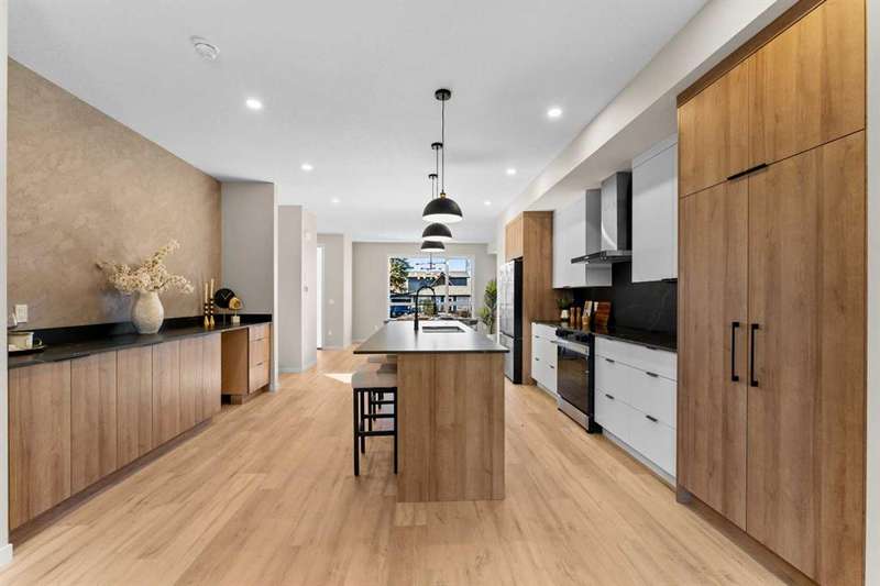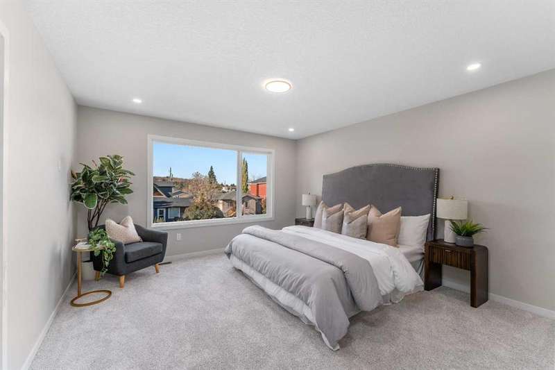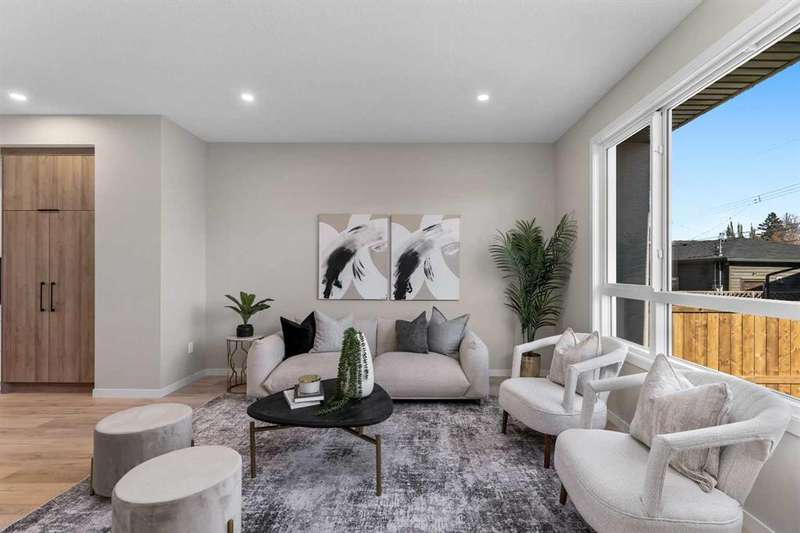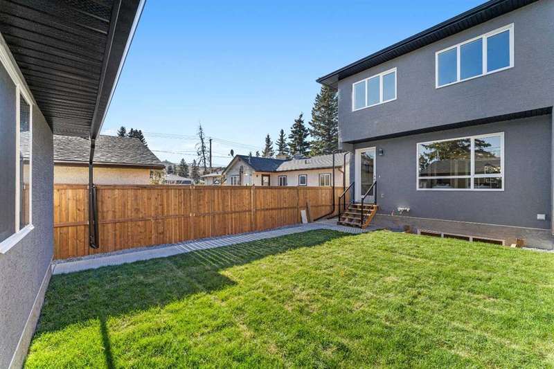 Seller instructed to drop the price to bring all the offers! Discover modern living at its finest in this brand-new luxury infill on a quiet street in sought-after West Bowness. This home perfectly blends style, comfort, and income potential. The open-concept main floor impresses with 9’ ceilings, large windows, designer lighting, and warm wood accents. The chef’s kitchen features quartz countertops, premium stainless-steel appliances, backsplash, and a stunning island perfect for entertaining. Enjoy cozy evenings in the spacious living room. Upstairs, the primary suite is a true retreat with a feature wall, walk-in closet, and spa-inspired ensuite with a freestanding soaker tub and rain shower. Two additional bedrooms, a stylish bathroom, and upper laundry complete this level. The legal 2-bedroom basement suite offers its own laundry, modern finishes, and a private side entrance—ideal for generating rental income or hosting extended family. Move-in ready, loaded with premium finishes, and designed for modern families who value smart investment—this home offers the perfect combination of luxury and practicality.
