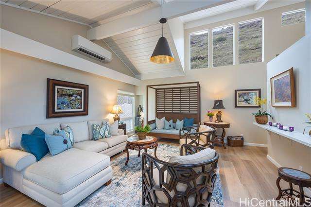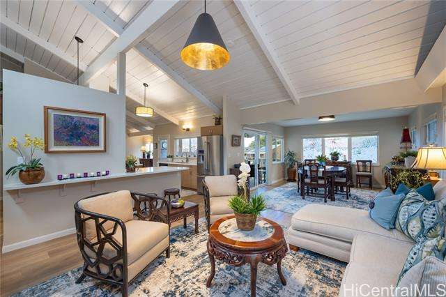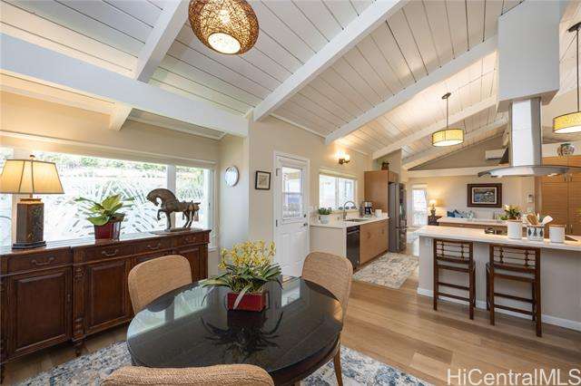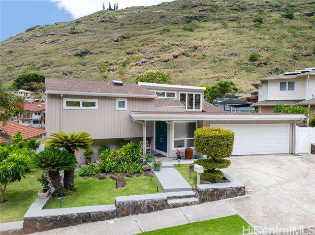 Nestled at the back of Niu Valley, this elegant home offers a perfect blend of privacy, style, and sophisticated living. Enjoy beautiful mountain and distant ocean views from multiple vantage points. The generous yard provides a haven for gardeners or a perfect space for outdoor entertaining and play. The home exudes style, featuring vaulted ceilings, abundant natural light, and a thoughtful layout and curated remodel inside and out. The primary suite is separate, well-appointed, offering comfort and privacy for family or guests and a spacious 2-car garage includes extra storage. This lovely home is move-in ready, an excellent value in the current market! Conveniently situated near beaches, parks, restaurants, shopping, schools, and hiking trails, this sought-after Niu Valley location in East Honolulu offers easy access to everything you need. Enjoy the comfort and peaceful setting of this desirable neighborhood and the refined island living this home presents.