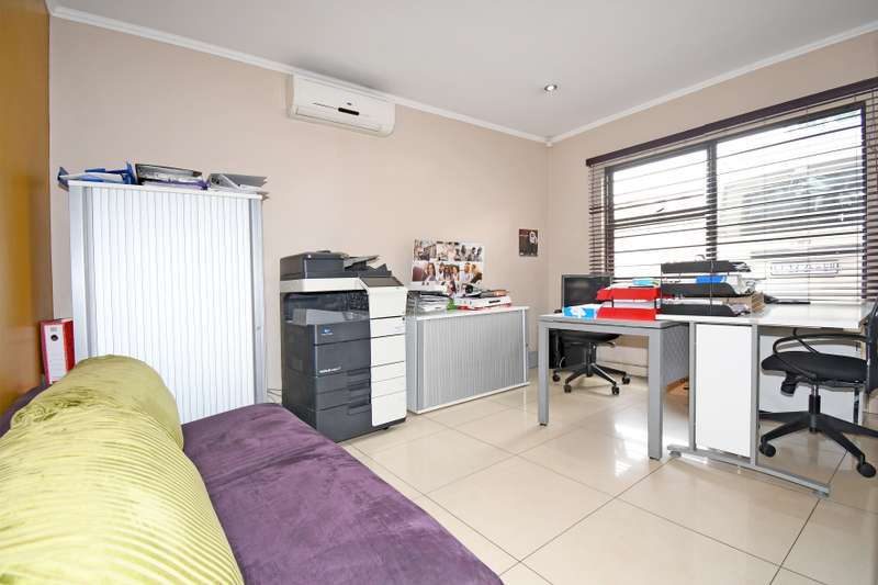 This spacious double-storey property offers a unique blend of functionality and potential. Currently arranged with an office layout, it is zoned Residential 3, which permits up to nine dwelling units on the site. With the consent of the Local Authority, a Place of Instruction for adult education and related offices is also allowed, making this a rare opportunity for both residential and professional use. The ground floor welcomes you with a high-ceilinged open-plan entrance hall, a practical kitchen designed for office needs, a conference room, three additional rooms, and separate male and female restrooms. Upstairs, you’ll find five rooms including a striking glass-enclosed central office, two washrooms, and a large balcony with views over the neighbourhood and glimpses of the city skyline. Every room is air-conditioned for comfort, and the property is equipped with a generator connected to the house, a secure safe room, security cameras, beams, and a surround sound system. Perfectly suited for creatives in advertising, filming, education, or anyone seeking a secure, adaptable space that blends work and living — with the added benefit of Residential 3 zoning that unlocks genuine development potential.