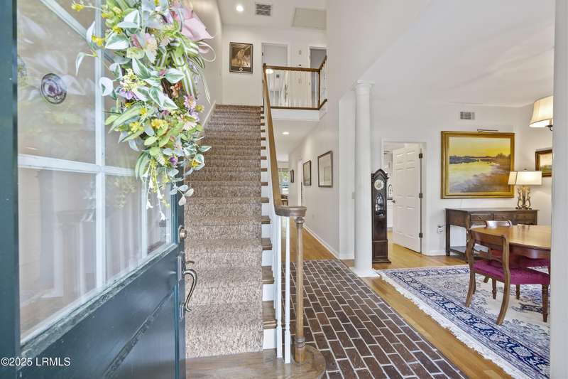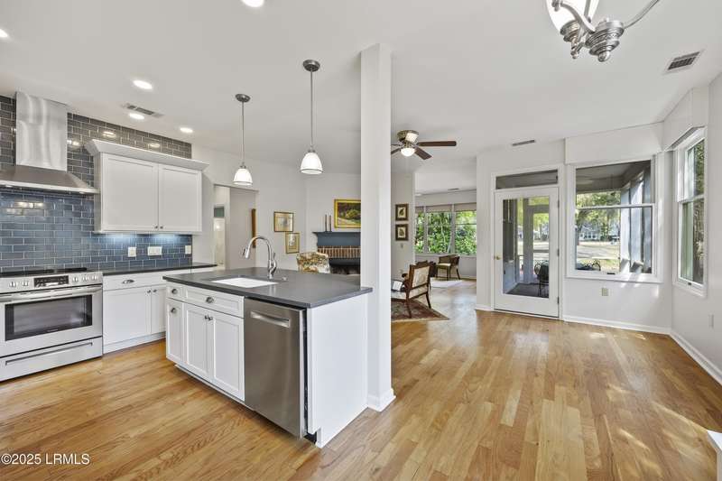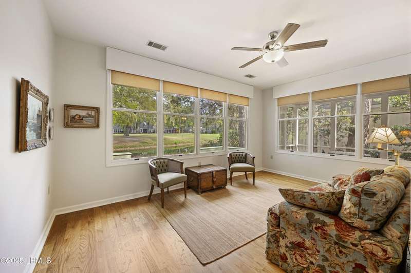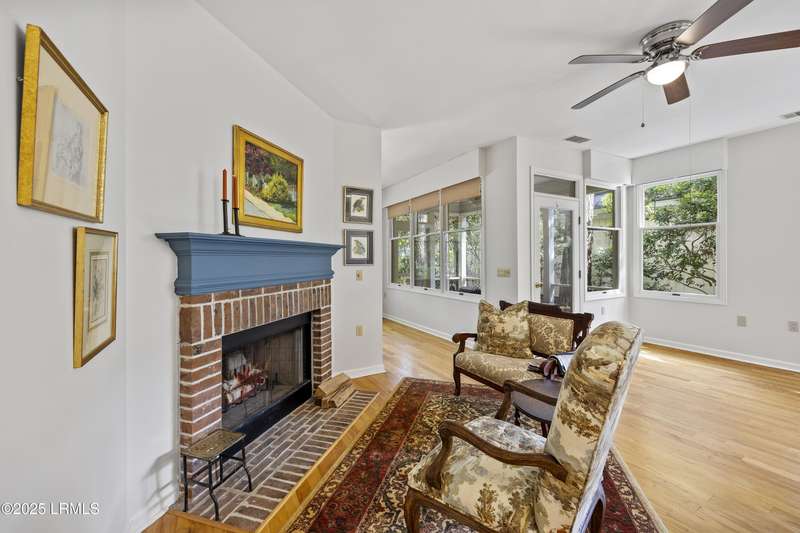 Welcome Home!! Dataw Island is a private gated golf community with terrific amenities. This home is a three bedroom home with double porches in the front and a huge deck out back overlooking a golf lagoon with views of the Morgan River golf course! Featuring a recently remodeled kitchen and first floor primary with huge windows showcasing the views! Beautiful brick fireplace frames a sitting area open to the kitchen and breakfast area along with a Carolina Room perfect lounging! Upstairs you will find two large bedrooms that share a huge bathroom with the front bedroom offering access to the porch. This home has been meticulously maintained and is ready for new owners. Call for details and access.Membership required. This material is based upon information, which we consider reliable, but because it has been supplied by third parties, we cannot represent that it is accurate or complete, and it should not be relied upon as such.