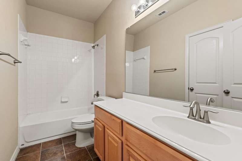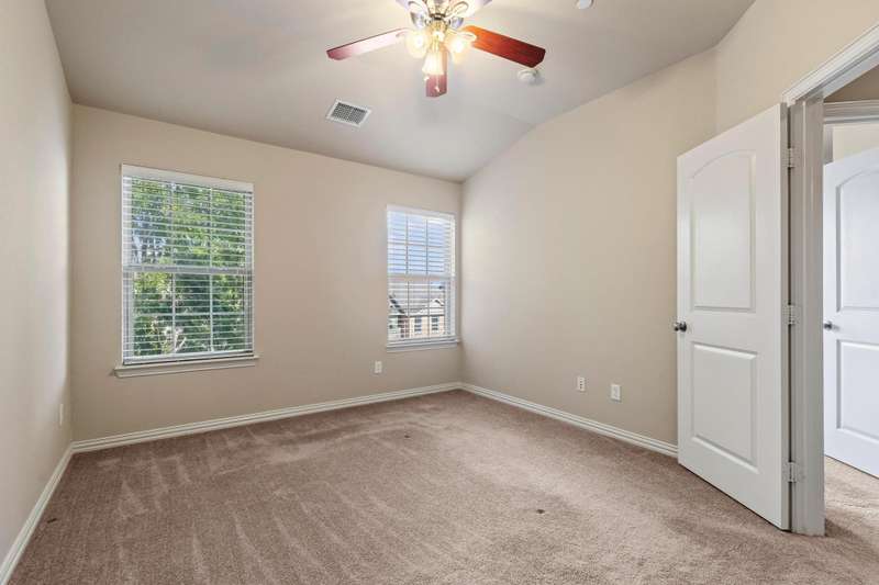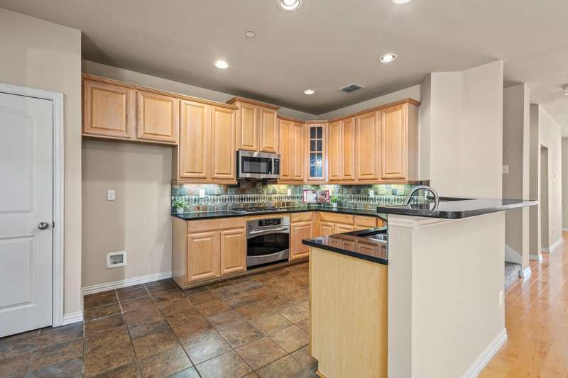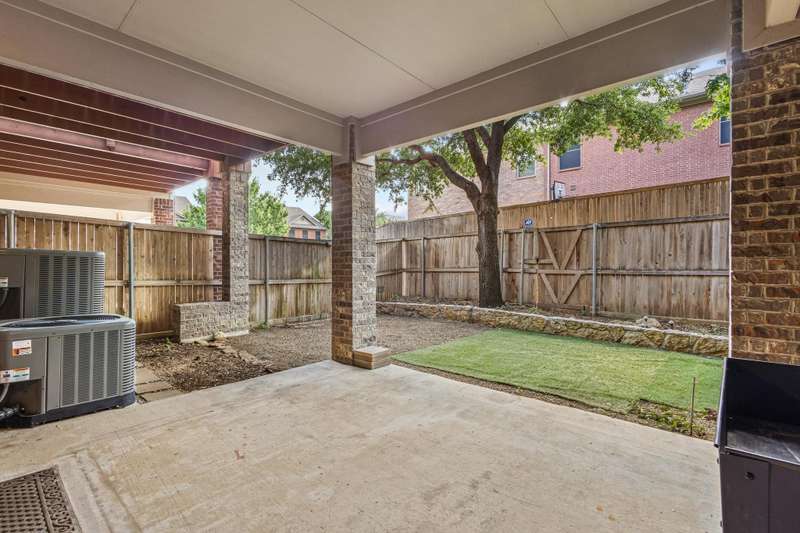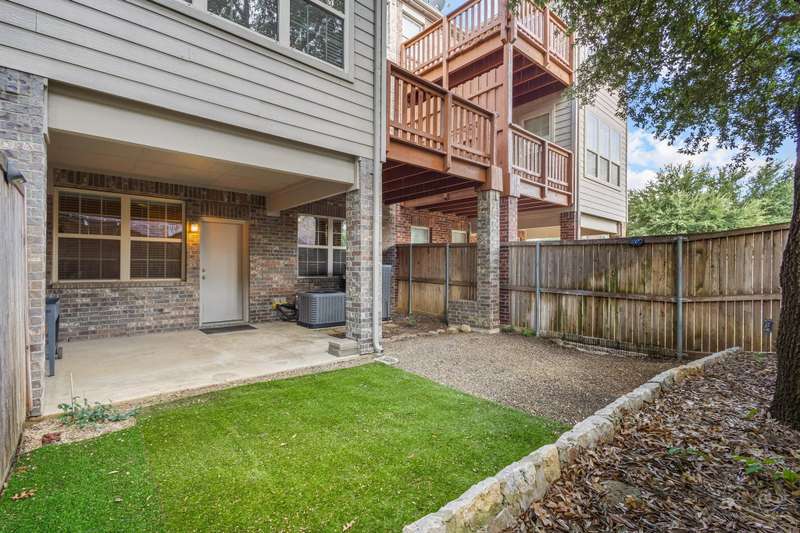 **NOW OFFERING 10K TOWARDS BUYER CLOSING COSTS** Located in the desirable Settlers Village community of Lewisville, this charming 3-story brick townhome offers the perfect combination of comfort, style, and low-maintenance living. The first floor features a private bedroom with a full bathroom, a versatile flex space ideal for an office or gym, and access to the main-level covered patio. The backyard is a relaxing retreat with a mature shade tree, artificial turf, and pea gravel, providing privacy and beauty without the hassle of yard work. On the second floor, enjoy the bright and open layout connecting the living room, dining room, and kitchen, complete with a cozy breakfast nook and access to the second-story balcony. The third floor features the primary suite, complete with a garden tub, separate shower, and a walk-in closet with built-in shelving, as well as two additional bedrooms and a full bathroom located in the hallway. Notable features include FRESH PAINT, maple hardwood floors and cabinetry, a brand-new microwave, carpet replaced three years ago, and AC units, furnace, and water heater all replaced within the last two years. Residents of Settlers Village enjoy access to a sparkling community pool with an outdoor grilling area, making this home the perfect place to relax and entertain. This townhome is close to I-35, Highway 121, and 10 minutes from DFW airport.