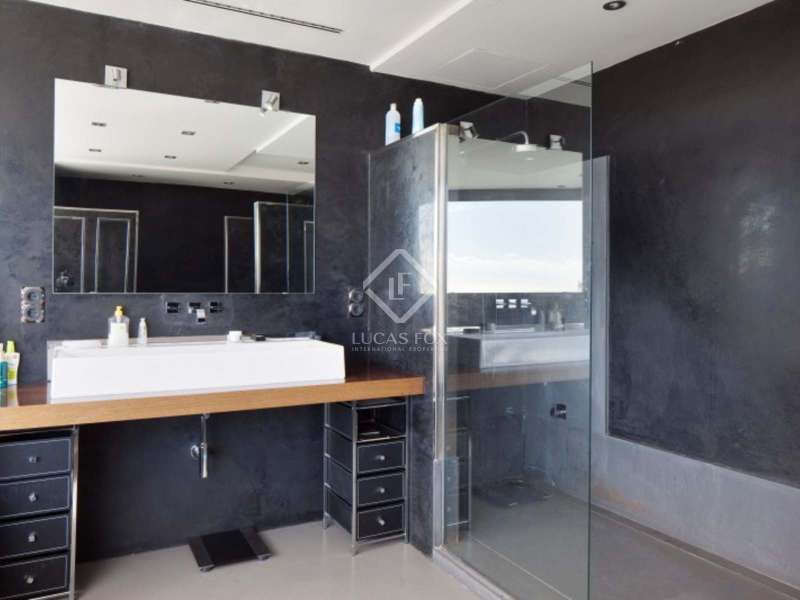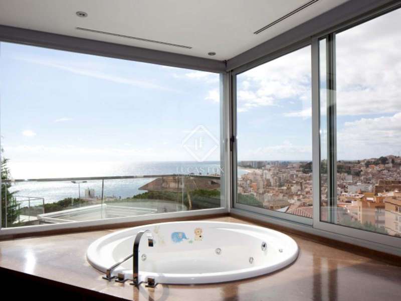 Spectacular villa for sale near the port of Blanes. This modern house is located near the town of Blanes. Schools, shops or the port of Blanes are just one step away. The house is also a few meters from the beach in Blanes and the beautiful beach of Cala Sant Francesc. This modern villa for sale stands out for its architecture and modern interior design. It is also equipped with a home automation system. The main house consists of 2 floors with a beautiful terrace with infinity pool and wonderful views of the village and the sea. Plus there is a whole floor that is currently not used that can serve as a floor for guests.