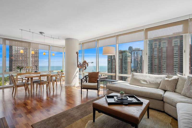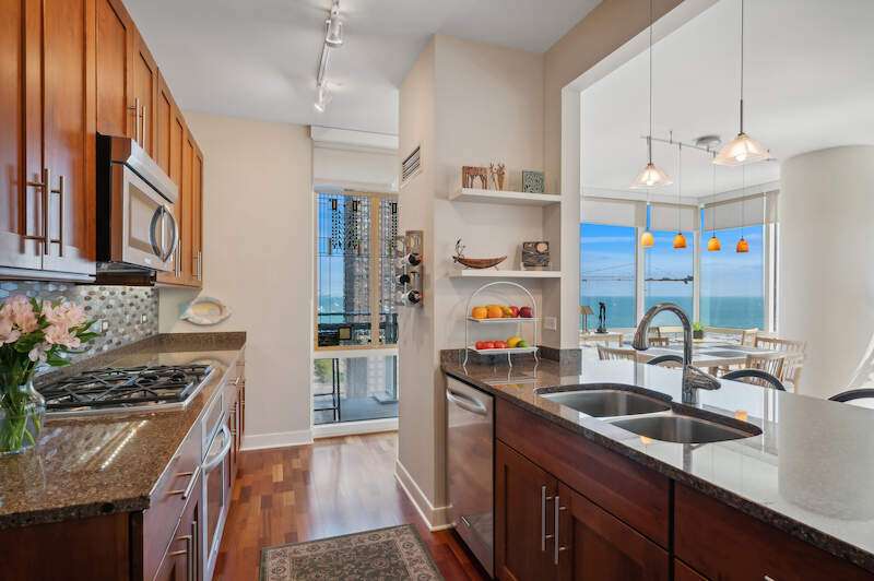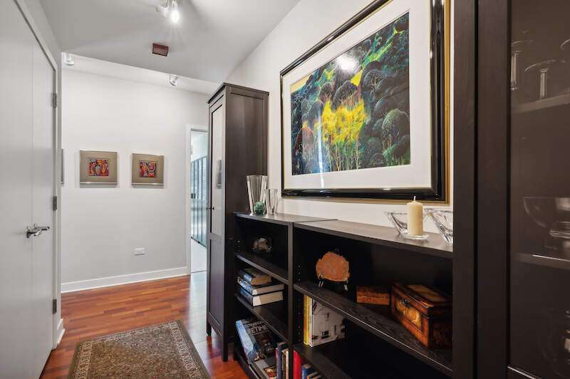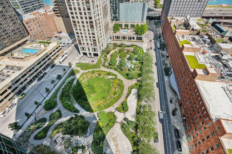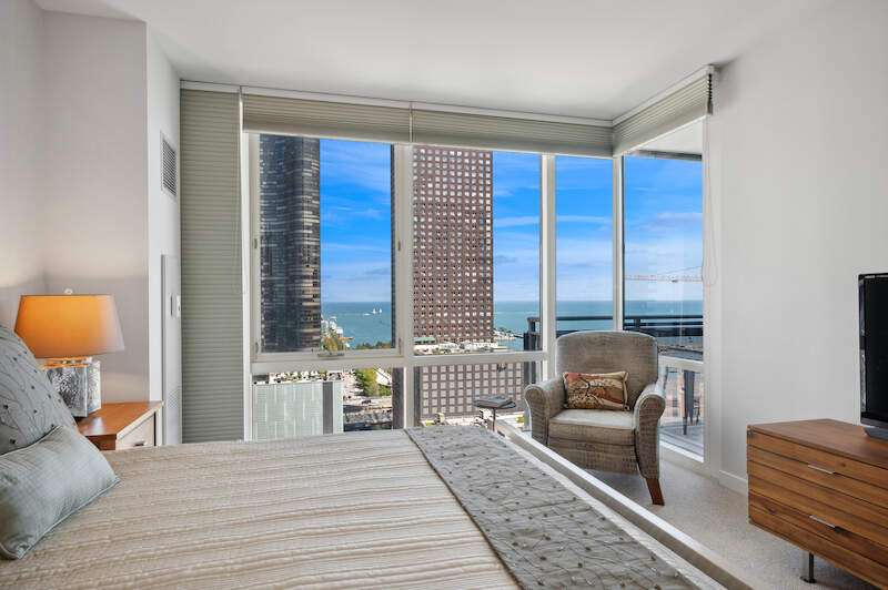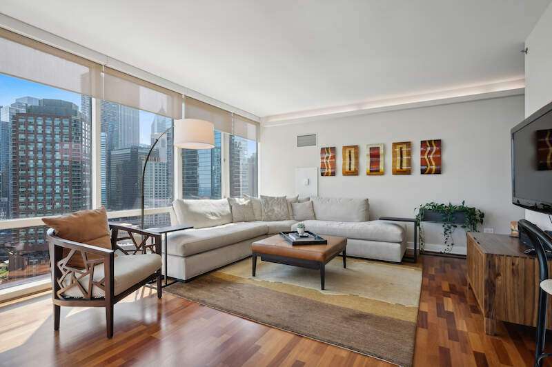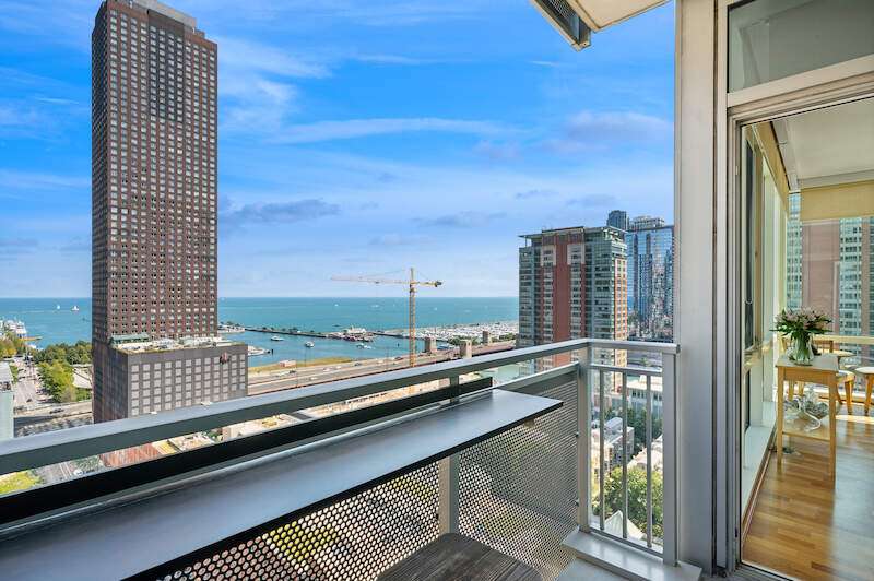 Welcome home to one of six unique terrace townhomes. This sophisticated two bedroom, two and a half bath townhome has two large private outdoor terraces making this your perfect city oasis. Refinished hardwood floors greet you in the entryway, kitchen, and spacious living room. Light pours into the home from the stunning floor to ceiling windows facing the park and your expansive private park terrace designed for al fresco dining and entertaining. The kitchen has beautiful cherry cabinets and a large, eat-in granite island ideal for meal preparation and intimate dining. Granite counters, well appointed backsplash + stainless steel appliances enhance the aesthetics, while the adjacent pantry, equipped with designer shelving, provides excellent storage solutions. This home also features a designated laundry area with a new washer and dryer and designer shelving for added convenience. The primary bedroom is the ultimate place to unwind, with exemplary natural light and new Brazilian cherry wood hardwood floors. The built-in desk and shelving are ideal for a home office or creative space. Primary closet showcases designer built-ins, offering ample storage and organization. The en-suite primary bathroom boasts an extra deep jetted tub, a separate shower, and double vanity with a granite counter, ensuring a relaxing experience. The second bedroom offers a cozy retreat, complete with built-in desk and shelving. The newer carpeting adds a plush touch to this private space. Outdoor living is a pleasure with two expansive outdoor spaces. The large front elevated park terrace offers serene park views, providing an ideal backdrop for dining, entertaining, gardening and grilling. During summer months on Wednesdays and Saturdays, you'll be able to take in views of the Navy Pier fireworks right from your terrace. The second outdoor space, a dedicated pool terrace with private access to the pool, invites you to soak up the sun and relax with ease and privacy. Convenience and luxury extend beyond your home's walls, as the building offers 24/7 door staff, onsite management, outdoor pool + hot tub/sundeck, a fitness center, resident lounge, club room, bike storage, and an additional private storage cage. Rental parking options available. Located in the bustling Streeterville neighborhood, this residence places you in close proximity to an array of dining, shopping, and entertainment options. Experience the best of urban living.