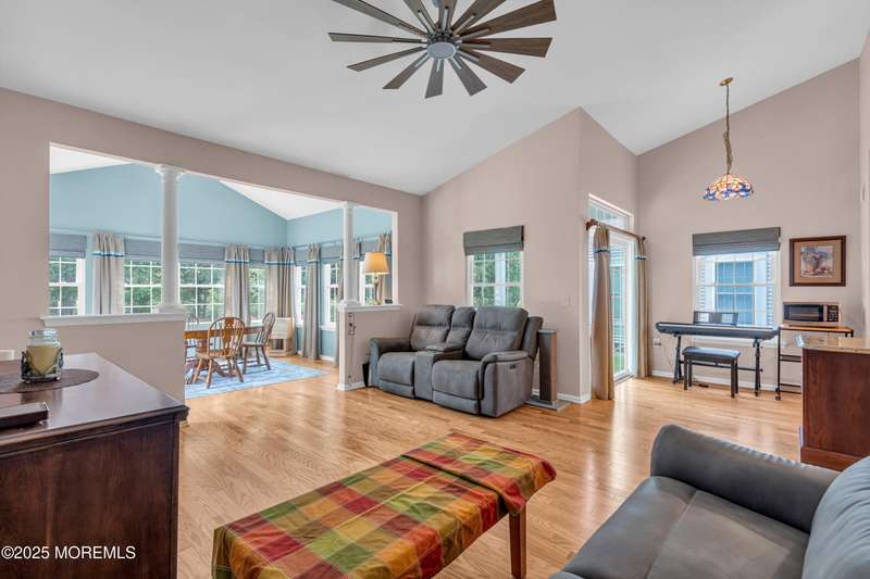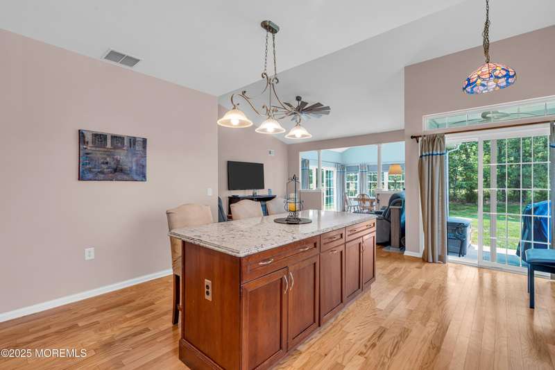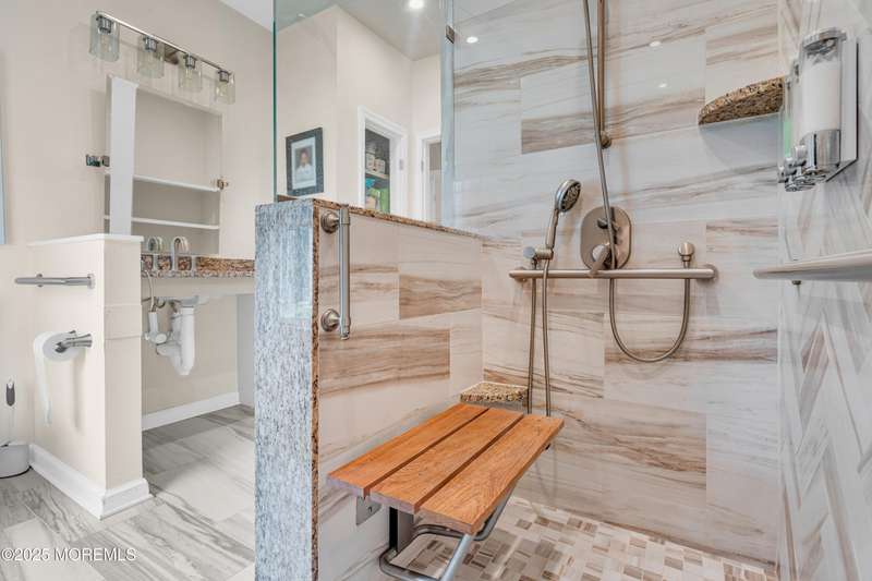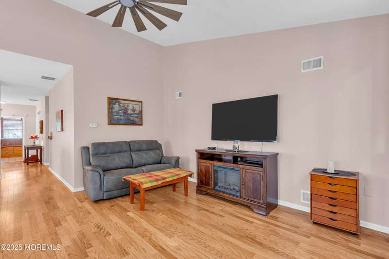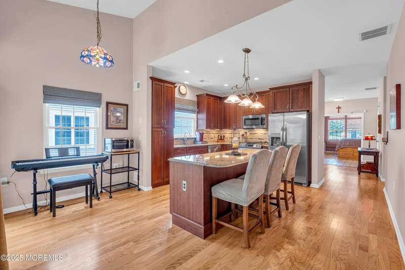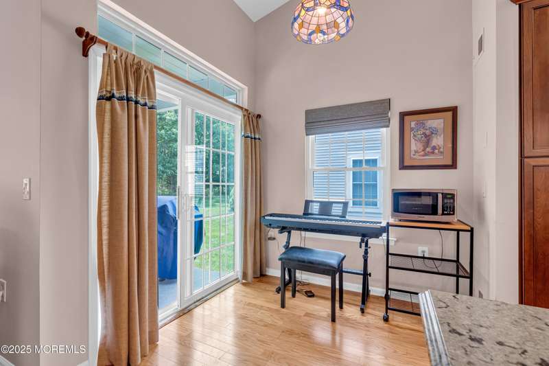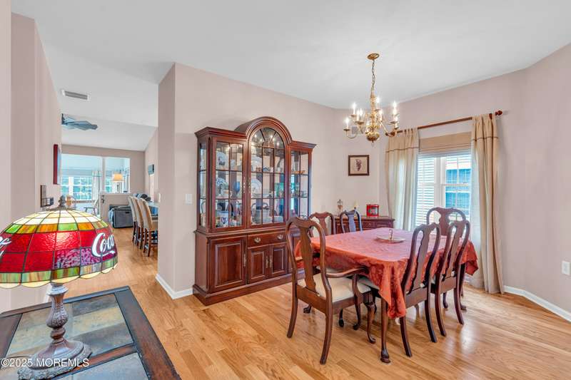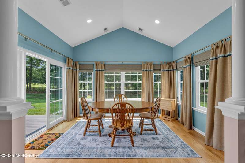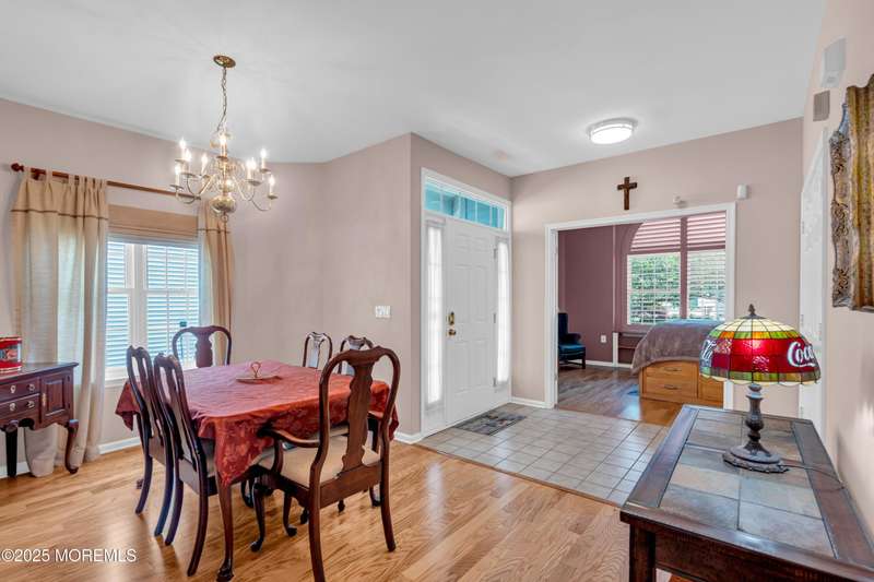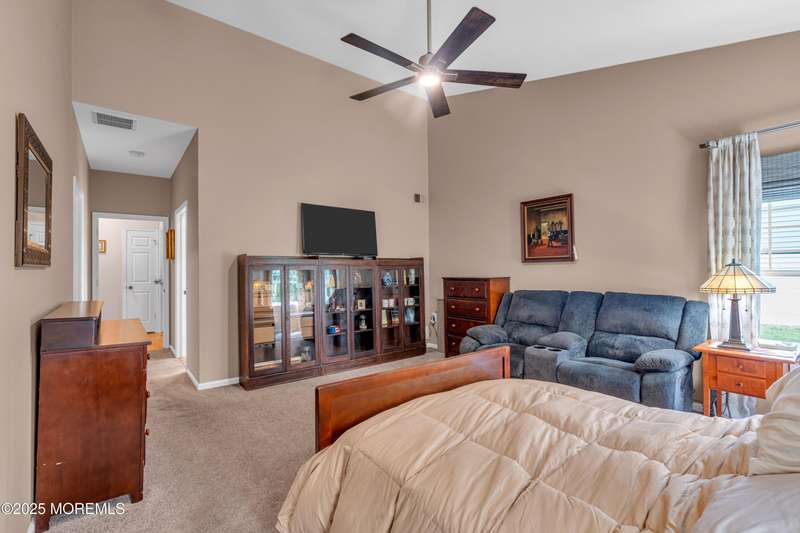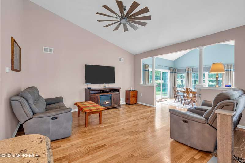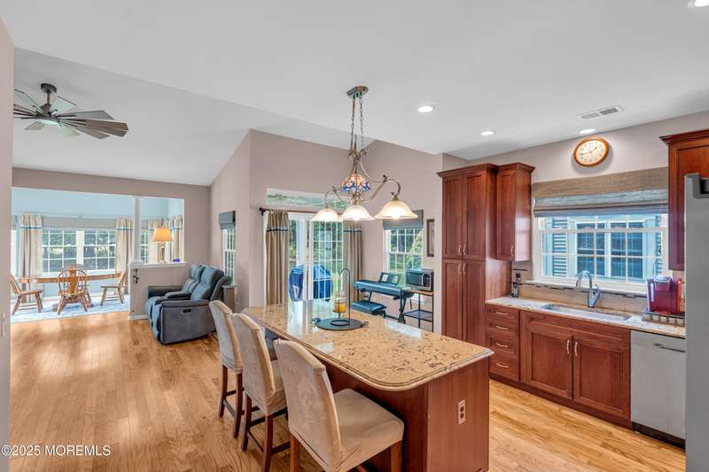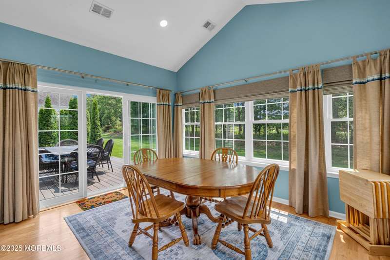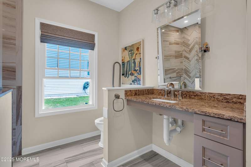 Exceptional Augusta modernized with updates throughout and ADA compliant, situated at the green on 8th hole of the golf course. Primary bathroom has a large tiled roll-in shower, grab bars and accessible marble vanity and toilet. Remotely operated motorized textured window shades throughout except the den/third bedroom has exquisite plantation shutters, including the palladium window. The primary bedroom featuring a vaulted ceiling is equipped with a unique built-in closet-a must see. The bedrooms have new highest-quality carpet, other rooms have engineered hardwood, ceramic tile in the entry foyer. Sunroom is enhanced with recessed lighting. Trex Deck off sunroom. Freshly painted throughout. 1-yr old HVAC. Large Walk-up attic storage above the garage. Located in Greenbriar Oceanaire. Located in Greenbriar Oceanaire, the leading adult community with 18 hole golf course and 38,000sf clubhouse, indoor & outdoor pools, restaurant & pub, ballroom, fitness center, tennis & pickleball courts, bocce