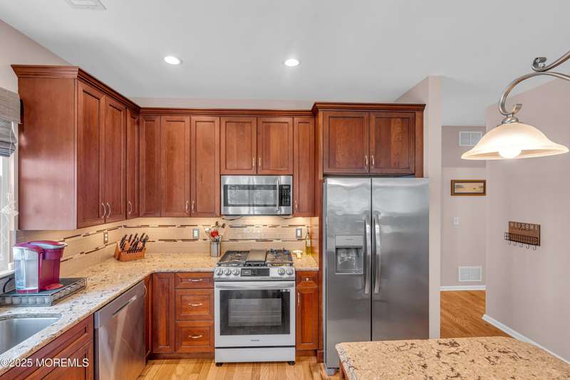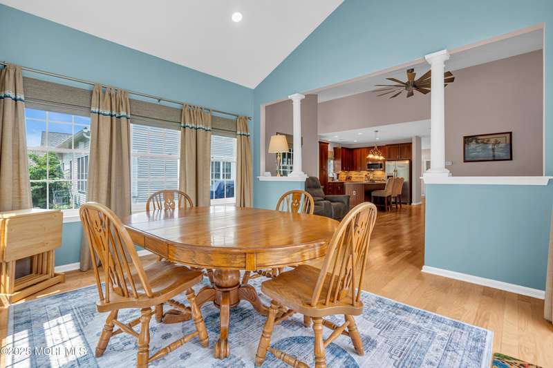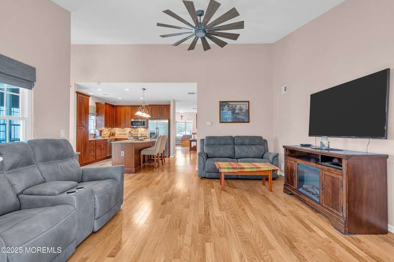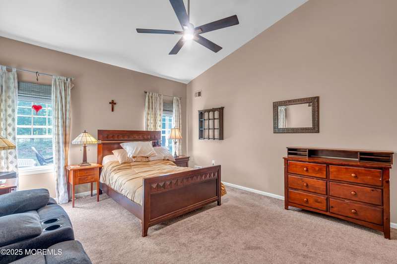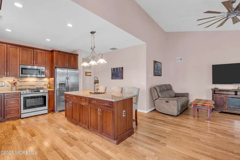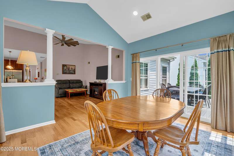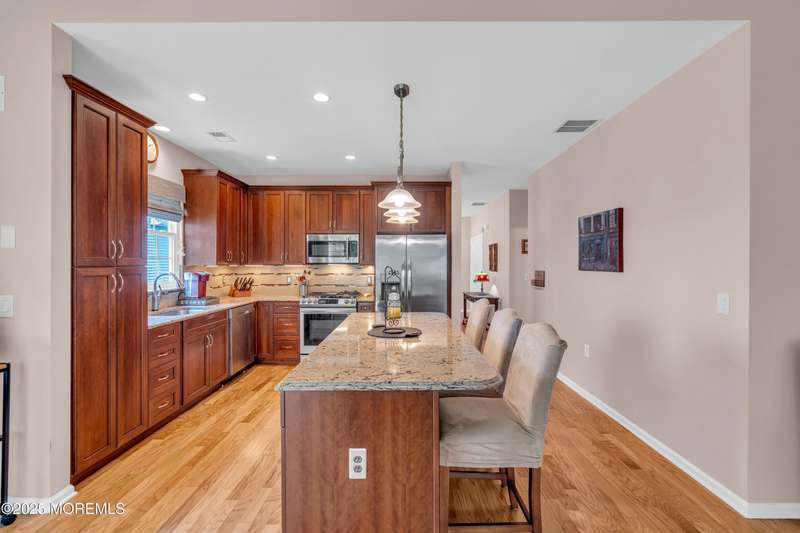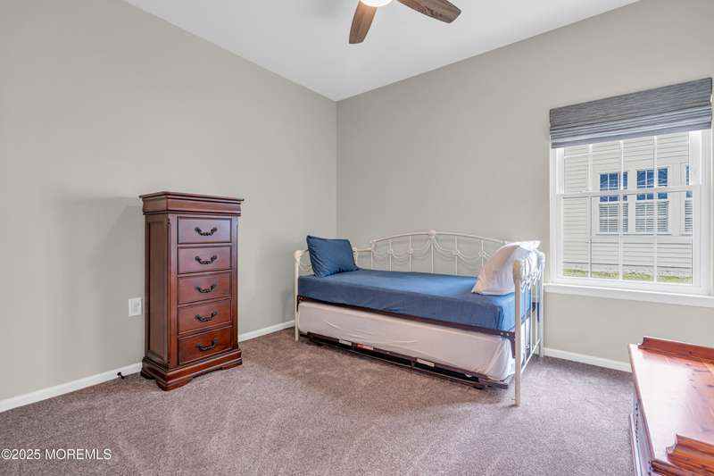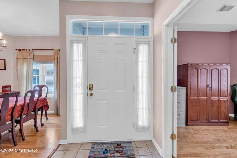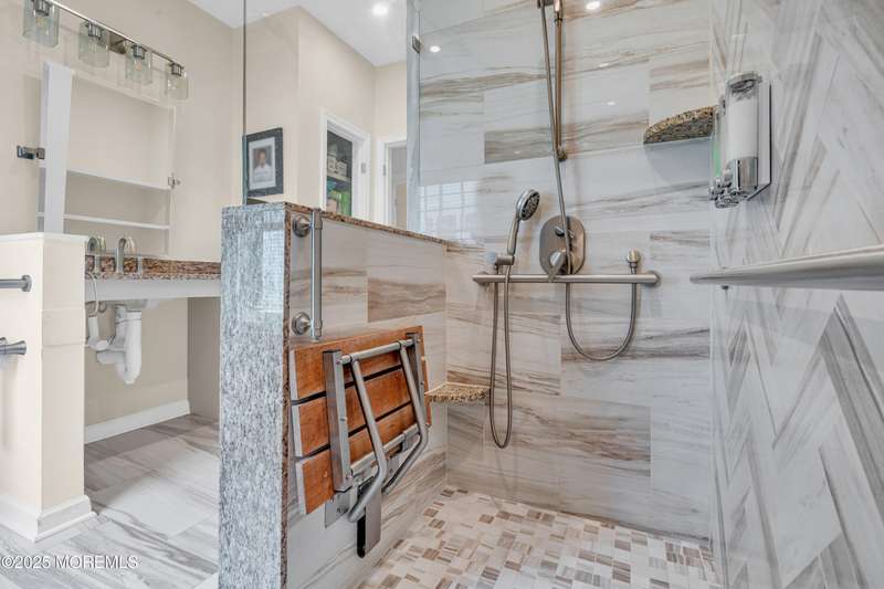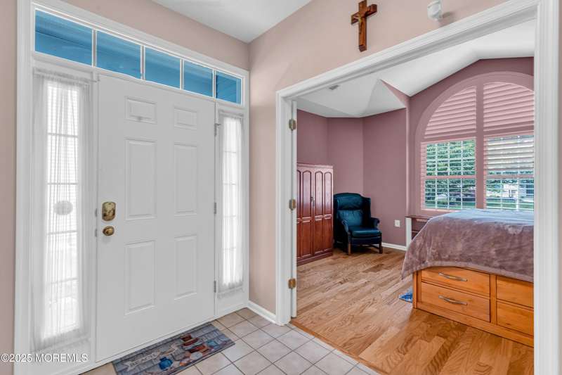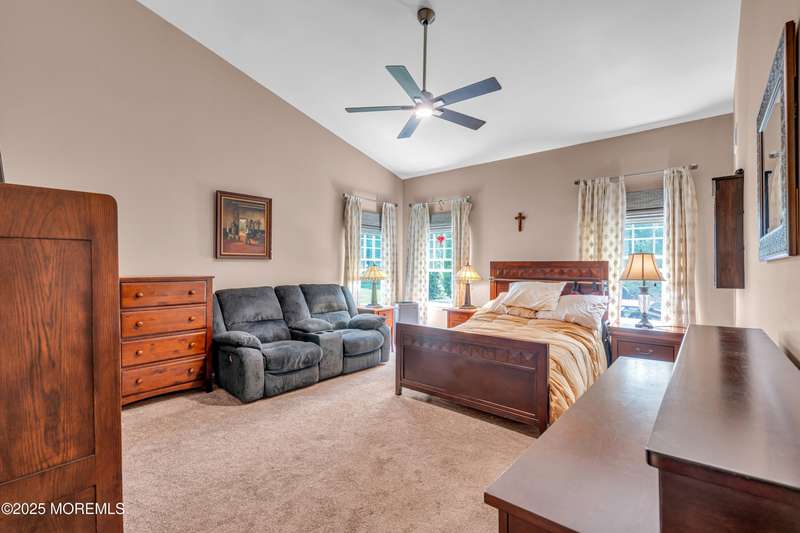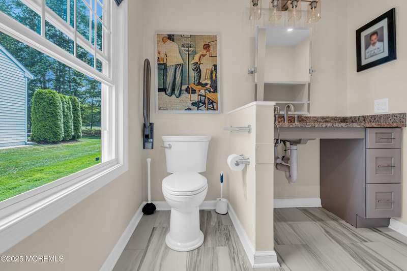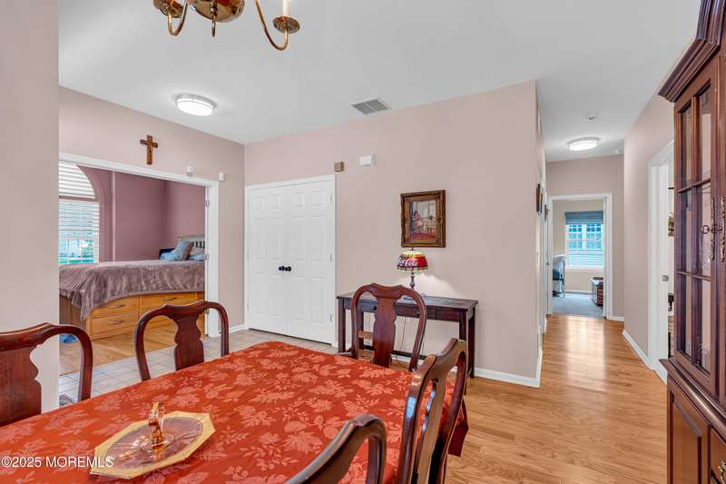 Exceptional Augusta modernized with updates throughout and ADA compliant, situated at the green on 8th hole of the golf course. Primary bathroom has a large tiled roll-in shower, grab bars and accessible marble vanity and toilet. Remotely operated motorized textured window shades throughout except the den/third bedroom has exquisite plantation shutters, including the palladium window. The primary bedroom featuring a vaulted ceiling is equipped with a unique built-in closet-a must see. The bedrooms have new highest-quality carpet, other rooms have engineered hardwood, ceramic tile in the entry foyer. Sunroom is enhanced with recessed lighting. Trex Deck off sunroom. Freshly painted throughout. 1-yr old HVAC. Large Walk-up attic storage above the garage. Located in Greenbriar Oceanaire. Located in Greenbriar Oceanaire, the leading adult community with 18 hole golf course and 38,000sf clubhouse, indoor & outdoor pools, restaurant & pub, ballroom, fitness center, tennis & pickleball courts, bocce