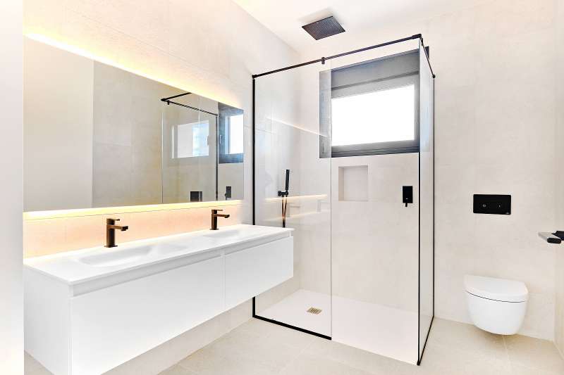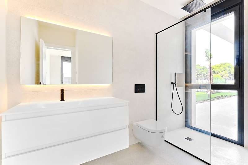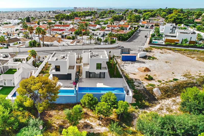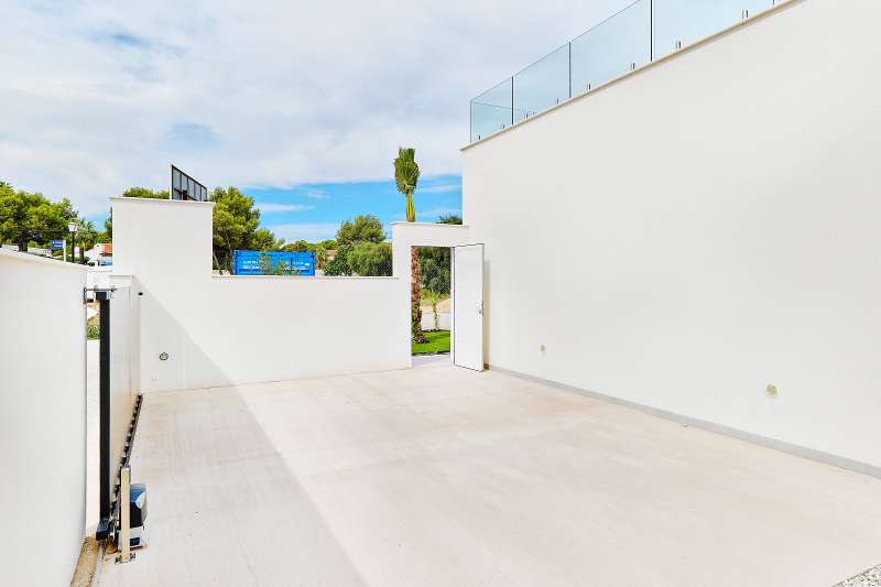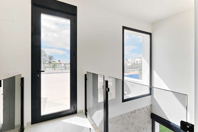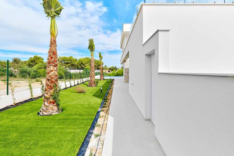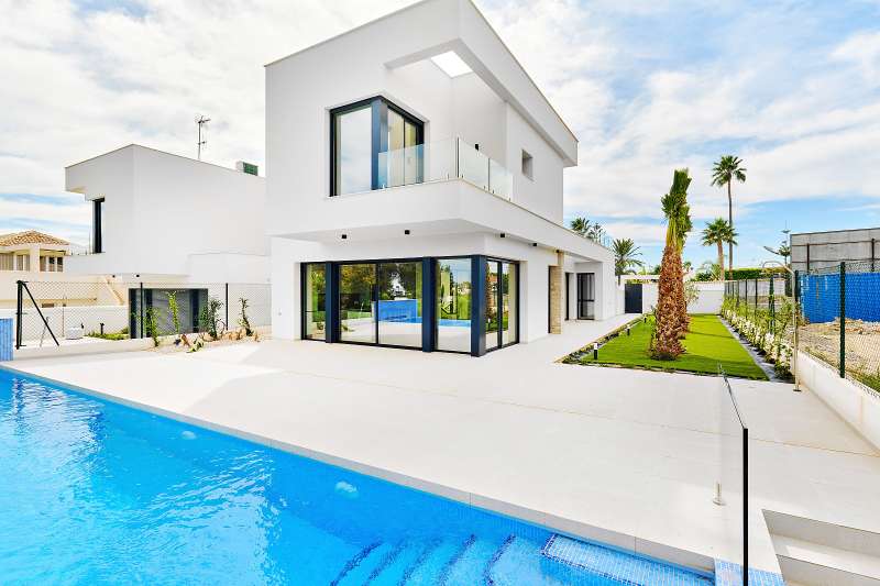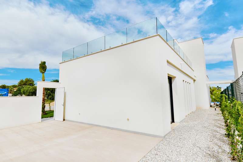 The villas are optimally situated within walking distance of amenities. The bars, restaurants, and British supermarkets are all steps away. The villas for sale in Orihuela, Alicante are also located 3 km from the famous lush Las Ramblas golf course, 3.4 km from the popular open-top shopping center La Zenia Boulevard, 3.5 km from Playa Pequeña Cabo Roig beach, 9.1 km from Torrevieja hospital, 12.9 km from Torrevieja city center, and just 55 km from the international airport of Alicante.