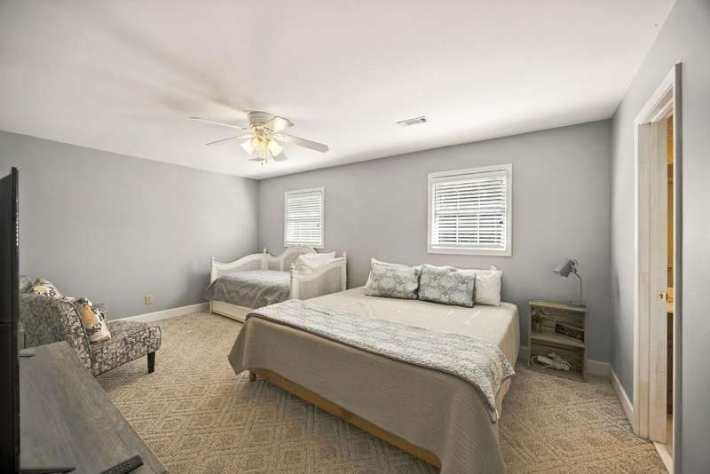 This rare Lake Lanier find offers 4 bedrooms, 4 full baths and 2 oversized bonus rooms making it the perfect retreat for entertaining, relaxing, and enjoying the lake lifestyle. To top it off, the owners are happy to include all the furnishings in the sale price! From the level driveway and inviting front porch, you'll step into a thoughtfully designed home with a graceful flow from the foyer and staircase into the family room, currently enjoyed as a recreation space, and then on to the great room with a cozy fireplace. A wall of windows frames sparkling lake views and draws you into the large, open kitchen with stainless steel appliances, granite countertops, and a bright breakfast area, while the separate dining room provides plenty of space for gathering with family and friends. The main level also includes a spacious suite with an oversized full, along with a convenient half bath and another full bath just off the kitchen for easy access after a day on the water. A large laundry room with sinks makes it simple to handle wet towels and lake gear. Upstairs, five generously sized bedrooms and a full bath provide comfortable accommodations for all your guests. The outdoor living is just as inviting, with an expansive screened-in porch overlooking the water, a side deck with connections for a hot tub in place and a separate grilling deck with ample space for outdoor seating. From there, it's just an easy walk to your private single slip dock with party deck and electricity, where you'll enjoy year-round deep water and wide, open views of the lake. Practical touches add even more appeal, including plenty parking space, two fenced-in yard areas, and a storage shed for all of your lake toys. Nestled on a quiet street, the property is just minutes from War Hill Park boat ramp, Athens Boat Club for gas and fireworks, quick access to Ga 400, Dawsonville shopping, restaurants, hiking, Dahlonega, and North Georgia's favorite wineries. With its blend of comfort, convenience, and its proven success as a short-term rental, this is a rare opportunity on Lake Lanier that you won't want to miss!