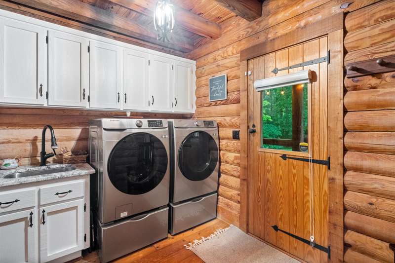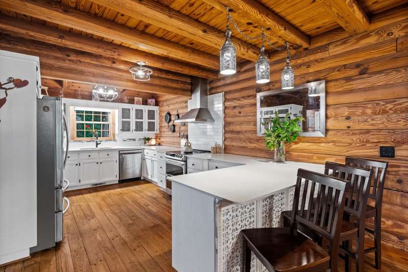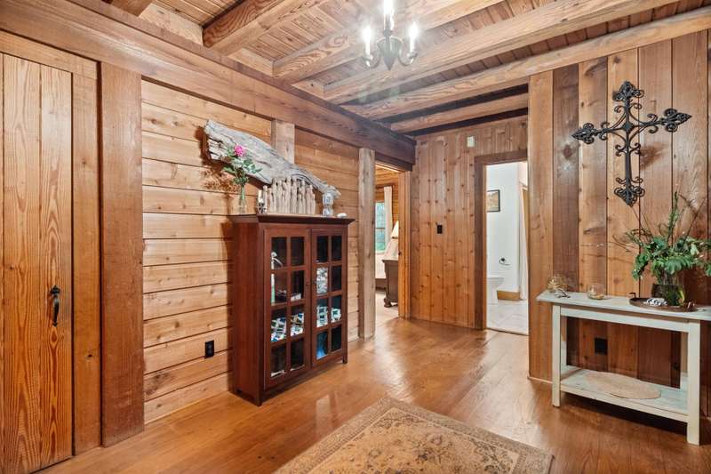 Discover your private oasis on over 3 picturesque acres, where rustic charm meets modern convenience. This custom-built 5-bedroom home offers the warmth of a log-style retreat with modern upgrades throughout. You'll find a garden-to-table experience with fruit trees,fig trees, muscadines, grapes,all supported by full-yard irrigation. Enjoy the serenity of the outdoors from any of the three porches, including one that offers shade all day. Inside, every bedroom features Bluetooth speaker lighting,& the primary shower also includes built-in audio for a spa-like experience. The home is equipped with smart technology?remotely control the stove, dishwasher, thermostat,& security system with ease. A separate guest quarters provides a fully updated living space with new roof and half bath ideal for multigenerational living or rental income. Adjacent to it is a workshop/garage, complete with a winch, wire rope, and air compressor, perfect for projects or storage. See this pristine home today