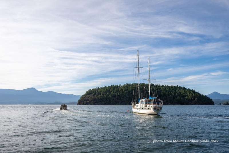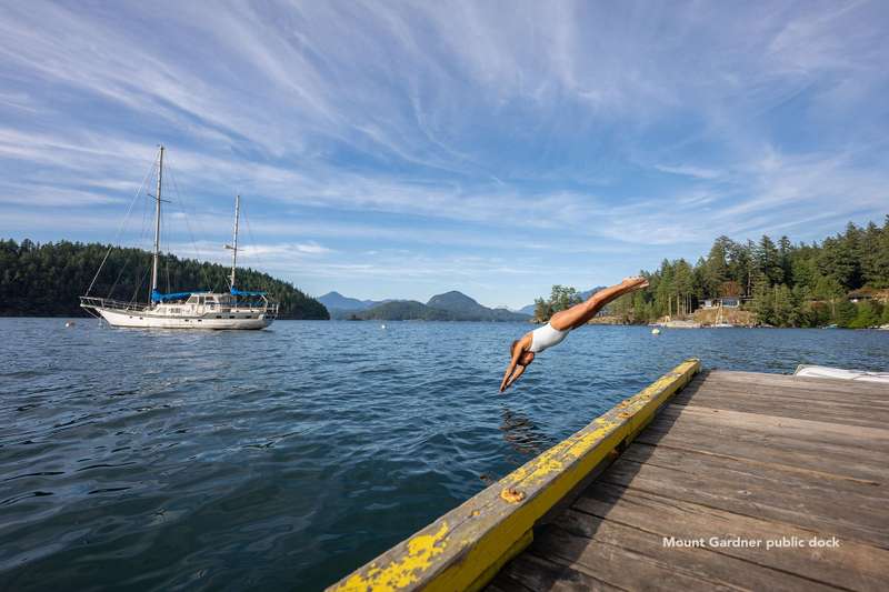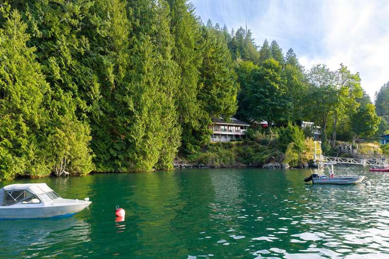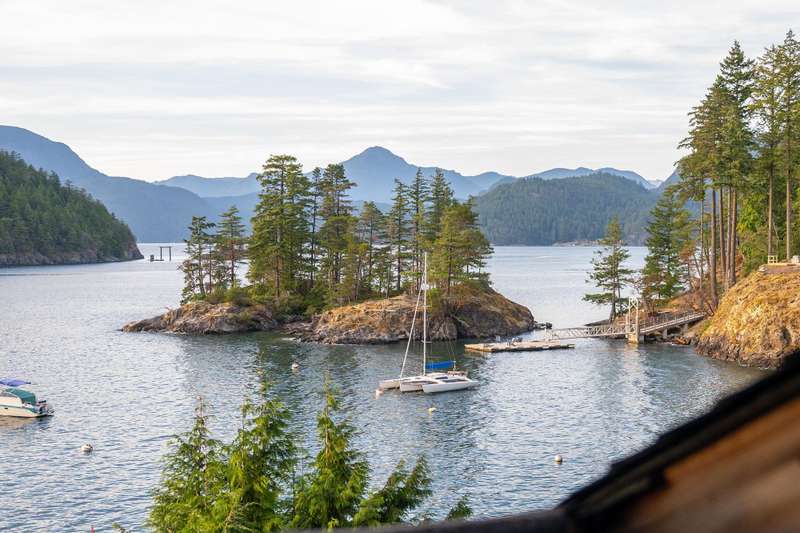 One of the most stunning settings on Bowen Island is on the Northwest side, where landscapes of nearby islands create picture-perfect Pacific Northwest vignettes. Sitting closer to the water than any of the neighbouring homes there are uninterrupted, and ever-changing views from Keats Island and the Sunshine Coast, to nearby Hutt Island and Gambier Island, and mountains to the north. Steps lead down to a sheltered bay where there’s the potential to add a dock. Living on the water here is a nature lover’s dream. Whether it’s pulling out the binoculars for a glimpse of frequently sited Orcas, or jumping on your paddleboard and checking out the sea life in the intertidal zone, or simply going for a moonlight swim, you’ll be in awe with the wonder that surrounds you in beautiful Galbraith Bay.