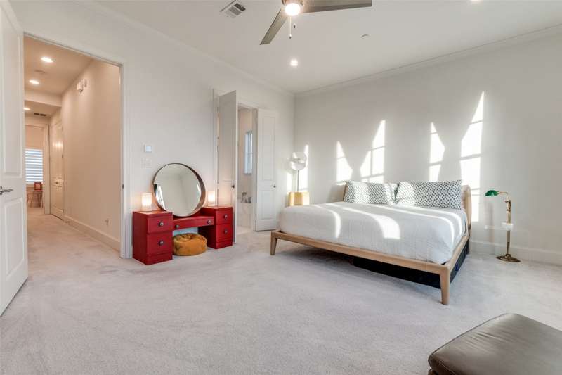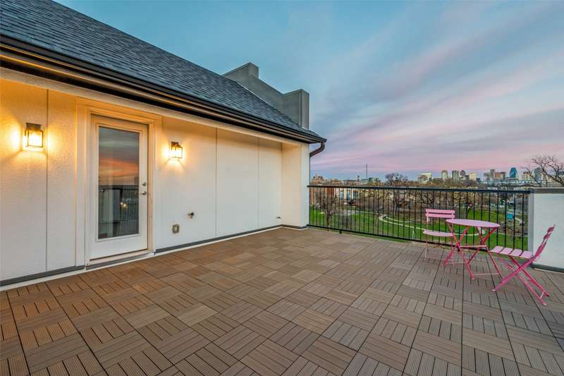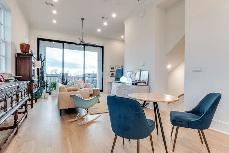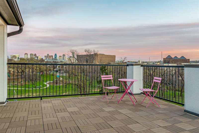 Welcome to this exceptional 3-story townhome situated near the Medical District & Oak Lawn. Perfectly blending modern luxury with thoughtful design, this corner-unit residence offers unparalleled views, premium finishes, & a low-maintenance lifestyle ideal for those who appreciate style and convenience. With soaring ceilings and abundant natural light, the spacious main living areas boast elegant white oak flooring that flows seamlessly throughout. This home is an entertainers dream, with a contemporary kitchen featuring custom cabinetry, luxurious marble countertops, and a stunning designer tile backsplash. Bosch appliances, including a gas cooktop, wall oven, and built-in microwave, make both cooking and entertaining a breeze. The thoughtful layout includes a covered second-floor balcony and an expansive rooftop deck both offering sweeping views of the iconic Dallas skyline, perfect for enjoying sunsets or entertaining guests. These outdoor spaces overlook the community's sparkling pool, providing a serene backdrop to your daily life. Each of the homes three bedrooms offers an ensuite bath, ensuring privacy and convenience. The primary suite is a true retreat, offering a spa-like bathroom with an oversized garden tub, a luxurious walk-in shower, dual vanities, & a walk-in closet that provides ample storage space for even the most extensive wardrobe. Plush carpet in the bedroom quarters offers added comfort. Not only is this townhome beautifully designed, but its also ideally situated for urban living. Located near Oak Lawn, downtown Dallas, & Love Field, this property offers quick access to major transportation routes including DART, Dallas North Tollway, & I-35, putting the entire city at your fingertips. Whether youre looking to enjoy the vibrant local culture, stroll through nearby parks, or commute with ease, this townhome offers a rare combination of high-end features and an unbeatable location. SPECIAL FINANCING-ZERO DOWN-NO PMI-BELOW MARKET RATES