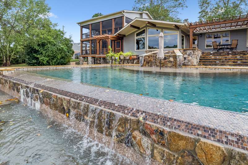 Breathtaking 16+ acre riverfront equestrian estate, seamlessly blending rustic charm with modern luxury and premier equestrian facilities. This Contemporary Craftsman Farmhouse has glowing hardwood floors, Viking stainless steel appliances, three fireplaces, and two screened porches. A custom infinity pool overlooks sprawling pastures and the river. Tailored for serious equestrians, the property features two sophisticated barns with 15 stalls, automatic waterers, tack rooms, feed storage, an equipment shed, and staff accommodations. Expansive cross-fenced pastures and an outdoor arena with imported footing complete the setup. Recently showcased as a filming location for a major upcoming motion picture! Ideal for grand entertaining, professional equestrian pursuits, and tranquil seclusion. Just minutes from downtown Franklin and Leiper's Fork, and a short 20-minute drive to Nashville!