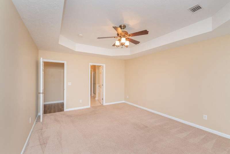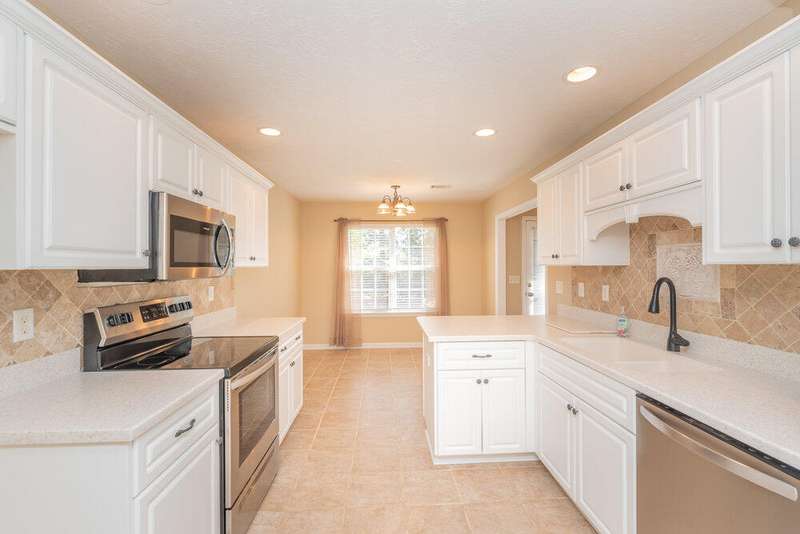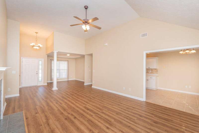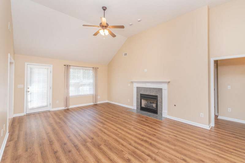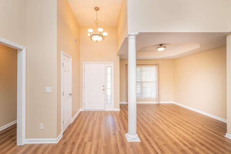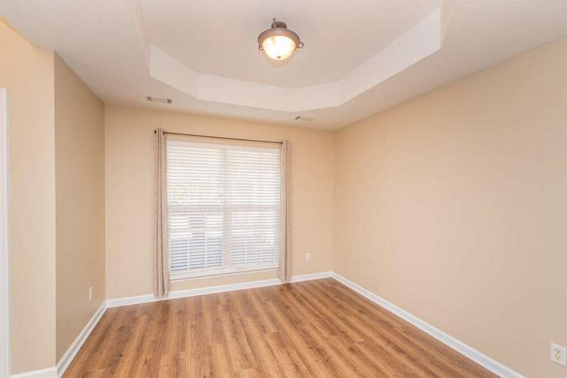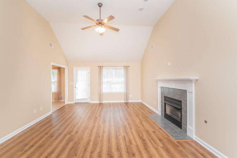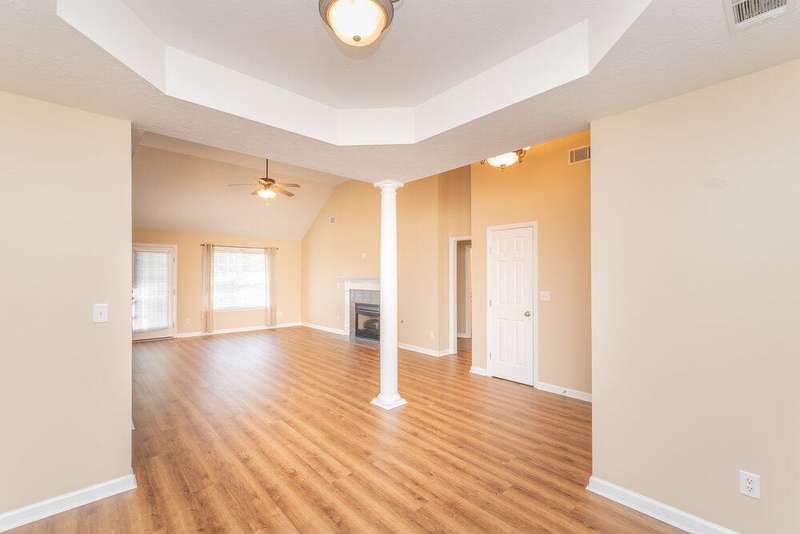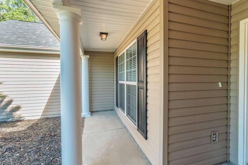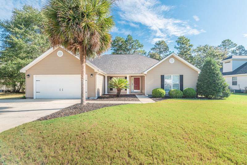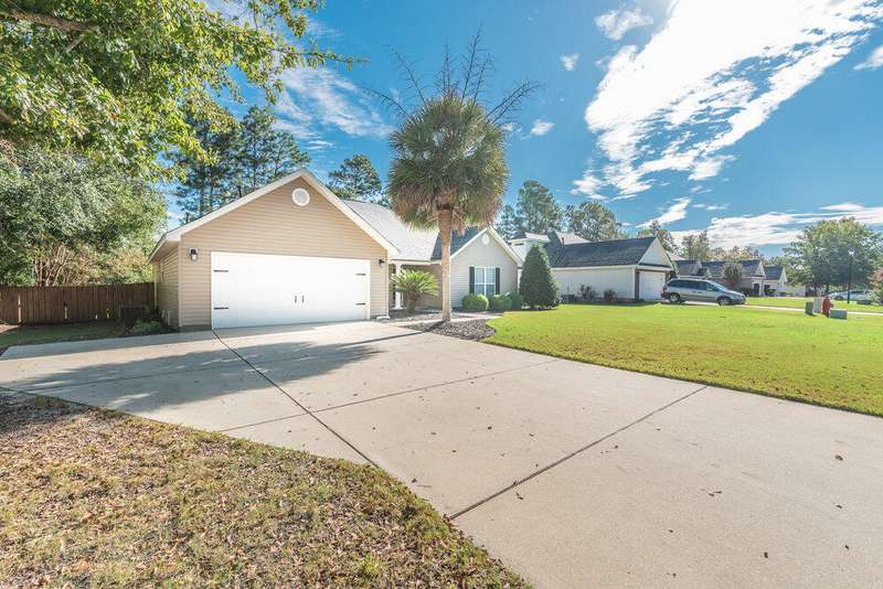 Welcome to Talatha Gardens! This beautiful 4 bedroom, 2 bath home has been meticulously maintained. The welcoming covered porch greets you as you enter the open living & dining room. The home has new luxury vinyl plank flooring and cathedral ceilings in main living area. The bright kitchen has solid surface counters, tasteful back splash, ceramic tile floors, stainless appliances & a breakfast area. Lovely, privacy fenced backyard that borders Barrington Farms. A new roof was put on in 2024, and a new sprinkler system timer was installed in 2025. The home also features an enlarged 2 car parking pad and much more.