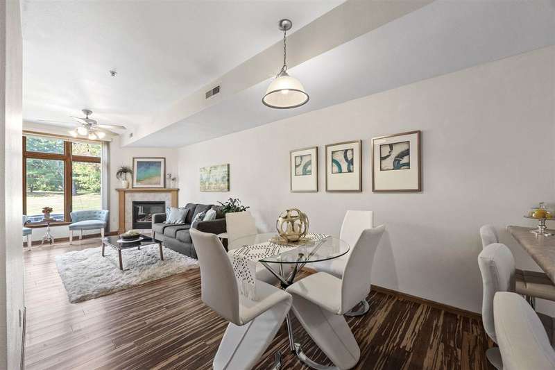 Enjoy the comfort of this inviting ground-level condo, where everyday living feels easy and relaxed. Offering 2 bedrooms and 2 full baths, this home has a thoughtful layout with plenty of natural light that brightens each room. The primary suite is a peaceful retreat with its own full bath and a spacious closet to keep everything in order. The open living area makes it simple to stay connected, whether you’re cooking, visiting, or just relaxing by the cozy gas fireplace. Step out to the deck and take in the calming views of nature; a perfect spot for morning coffee or an afternoon read. With no stairs to worry about and a welcoming, open feel, this condo is designed to make life comfortable and enjoyable. Includes a shared storage in the garage.
