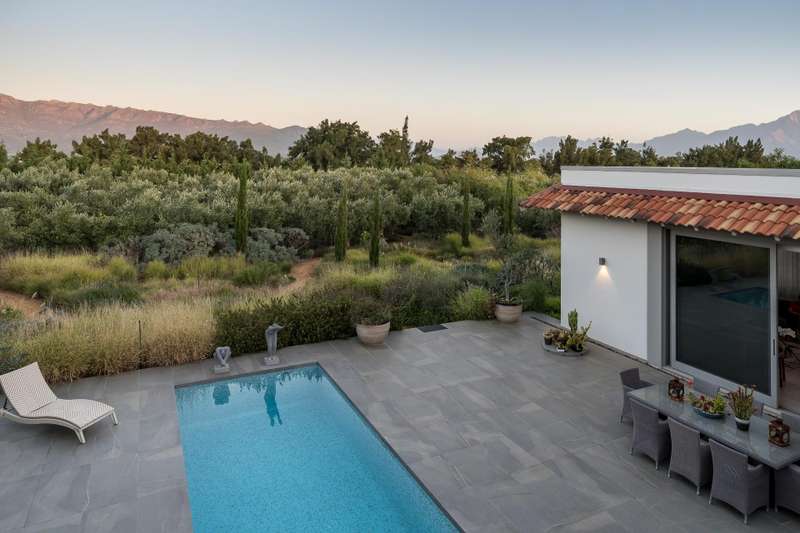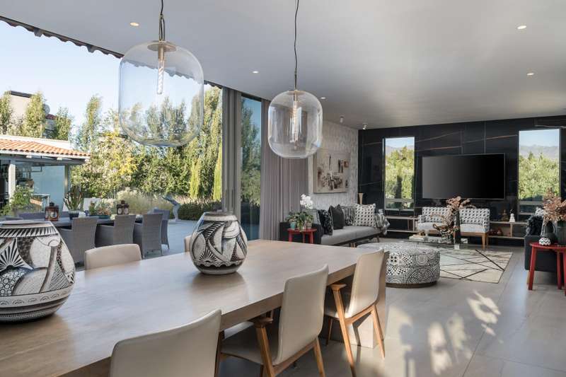 Welcome to your dream retreat nestled in the breathtaking Cape Winelands, a region celebrated for its vineyards and stunning mountain backdrops. This remarkable property offers a harmonious blend of luxury, comfort, security and scenic beauty, making it the perfect place for you and your family to call home. This charming home features four spacious en-suite bedrooms, with approved plans in place for a fifth, allowing for future expansion tailored to your family's needs. Each bedroom is designed with comfort in mind, providing ample natural light and serene views, particularly from the main bedroom, where you'll wake up to sweeping vistas of the stunning surrounding mountains. Step outside to a meticulously designed outdoor entertainment area, with a built in pizza oven and modern fireplaces as well as a wet bar, making it easy for hosting family gatherings or simply relaxing outdoors. There is a beautiful pool, elegantly tiled with imported mosaics, offering a touch of luxury and inviting you to dive in and unwind. In front of the entertainment area you will find a tranquil garden with olive trees and a quaint walking path providing privacy and enhancing the overall ambiance of your outdoor space. In the heart of the home is the expansive open plan kitchen and living room. The kitchen is a chef's delight, featuring modern Grundig appliances, generous counter space, and striking imported stone accents that lend an air of sophistication. The seamless flow from kitchen to living area creates a welcoming environment for both casual family dinners and entertaining guests. Throughout the home, you'll notice the exquisite use of imported stone, adding unique character and elegance to the interior. These design elements beautifully complement the home?ÇÖs modern aesthetics and are sure to impress anyone who steps through the door. The home offers plenty of off street parking as well as three garages (one of which has been converted into a studio with a kitchenette and can be used as an apartment for a teenager and or staff accommodation) as well as a stunning indigenous garden set on over 4000m2 of land. The meticulous designed house has so much to offer and the owners haven?ÇÖt spared any expense on the imported finishes through the home, and all of the luxury bespoke furnishings are included in the sale price. About Cape Winelands: Located in one of South Africa's most celebrated regions, the Cape Winelands is renowned for its world class wineries, gastronomic delights, and picturesque landscapes. Here you can explore quaint boutiques, indulge in gourmet dining, and enjoy vibrant local markets. The region offers an array of outdoor activities, from hiking in the nearby mountains to leisurely strolls through vineyards, making it ideal for nature lovers and those seeking a tranquil lifestyle. The Cape Winelands is also known for its excellent schools, premier healthcare facilities, ensuring a balanced lifestyle for families and professionals alike. In conclusion, this beautiful home in the Cape Winelands Estate is a rare opportunity to live in a stunning secure environment that combines luxury, comfort, and natural beauty. Don?ÇÖt miss out on the chance to make this exceptional property your own! Contact us today for a viewing and experience first hand why this location is a dream come true for those seeking the perfect blend of lifestyle and elegance.