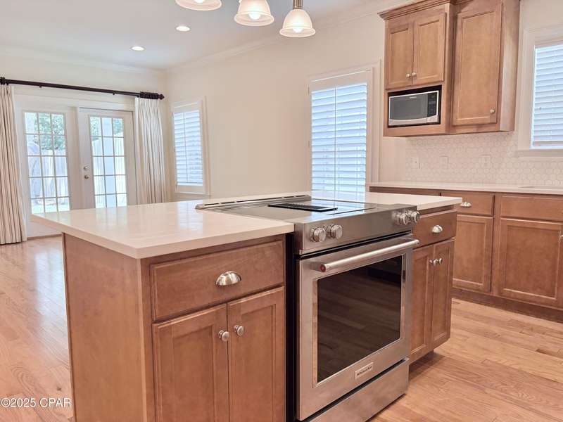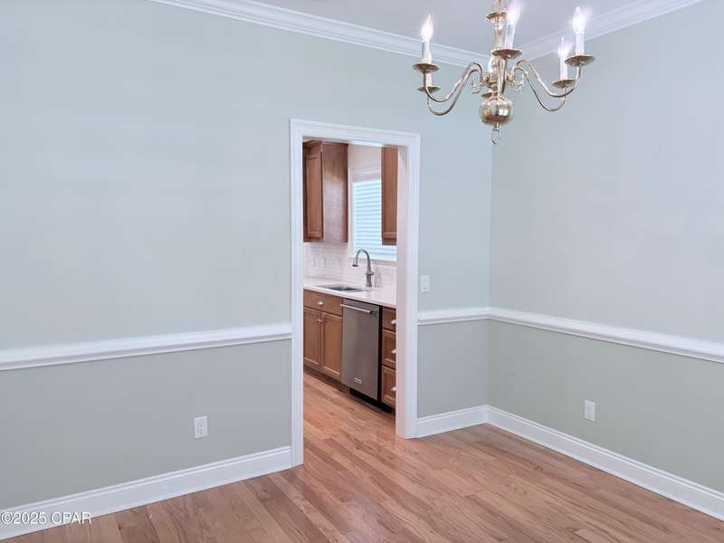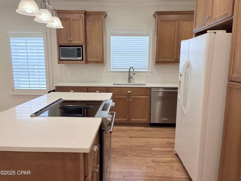Coastal Charm Meets Turnkey LivingThis newer 4-bedroom, 2-bath home in the highly sought-after Cove community offers the ideal combination of comfort, style, and convenience--without the restrictions of an HOA. The open floor plan effortlessly connects the living room, dining room, and kitchen, creating a perfect flow for entertaining or enjoying everyday family life. A separate dining area offers easy kitchen access, while the upstairs 4th bedroom provides flexibility for a guest suite, home office, or media room.Inside, you'll find modern finishes, a functional layout that balances gathering spaces with private retreats, and an interior laundry room for everyday ease. Outside, the fully fenced backyard provides privacy and a secure space for children and pets, with convenient alley access for parking or storage. A deep well supplies clean irrigation water to keep the lush landscaping vibrant year-round.Perfectly positioned near Holy Nativity Episcopal School and just a short stroll to the downtown waterfront district, you'll enjoy easy access to boutique shopping, local dining, and the St. Andrews Bay Yacht Club. Sidewalks, alleyways, golf-cart accessibility, and centuries-old oak trees add to the Cove's beloved coastal charm and strong sense of community.Buyer to verify all data and approximate dimensions if important.
