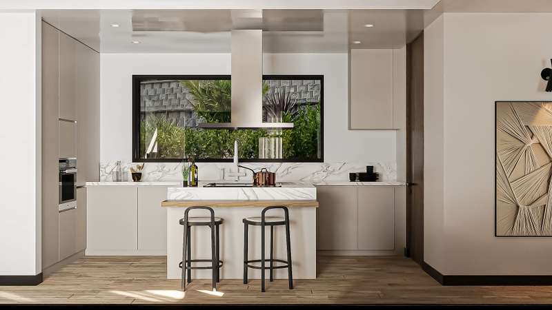 The project offers 2 and 3-bedroom apartments for sale. The 2-bedroom properties have a living room space, open-plan kitchen, a bathroom, and a terrace. The 3-bedroom properties have a living room space, open-plan kitchen, 2 bathrooms, and a terrace.