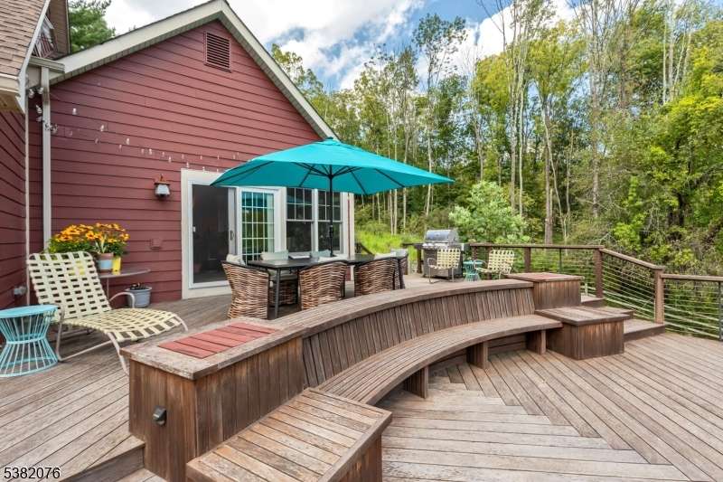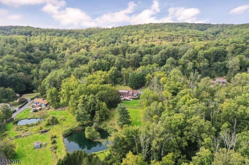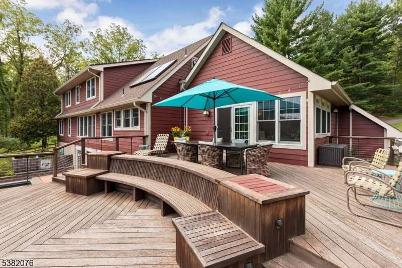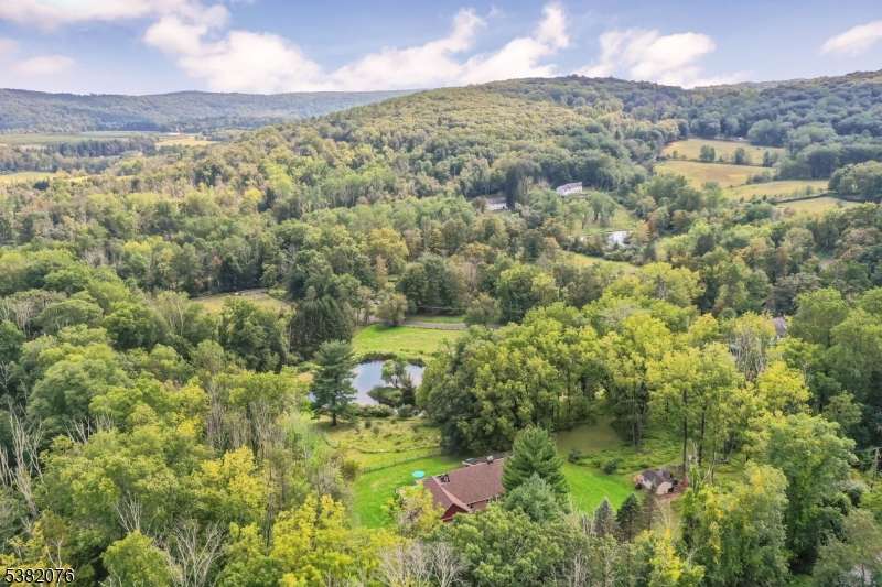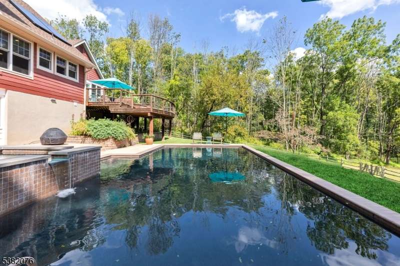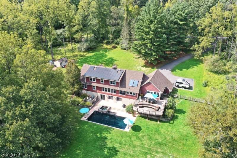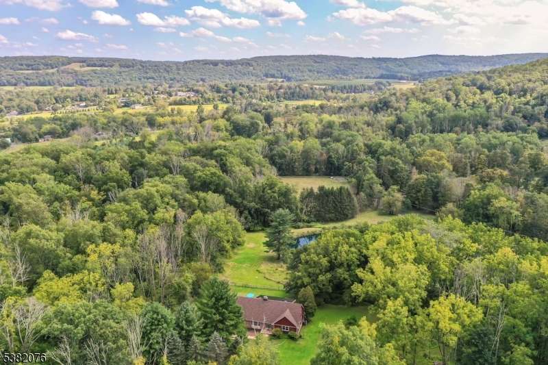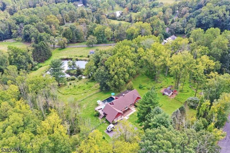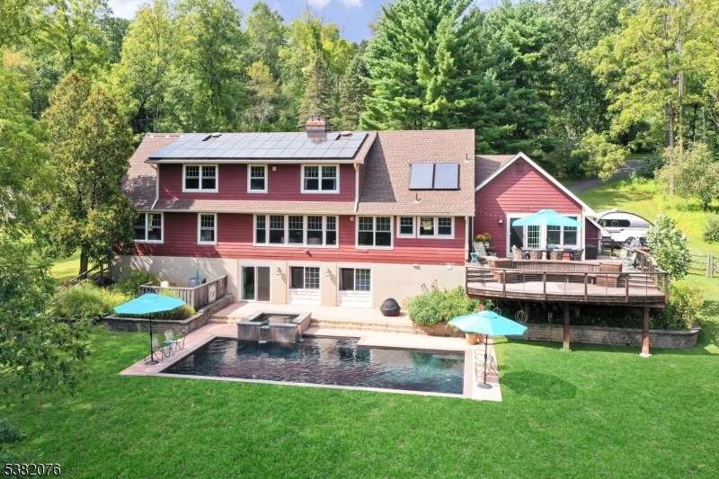 Exceptional Custom Home on a picturesque 5.11 acre lot offering phenomenal views of the pond and countryside setting by 147 acre Teetertown Ravine Nature Preserve. Loaded w upgrades this home is filled w character and designed w walls of over-sized windows to take advantage of the amazing views. Enjoy resort-style living w in-ground pool, spa and expansive deck from Decks by Kiefer. Gourmet kitchen w center island bar, granite counters, abundant cabinetry, stainless steel appliances, entertaining buffet and breakfast area. Family room is centered on a wood-burning Heatolator fireplace in brick wall. Large living room has a bay window and opens to the formal dining room. Sunroom w custom built-ins including a buffet w wet bar has sliding glass doors to the incredible deck. 1st floor primary bedroom suite has 3 closets and renovated bath w over-sized stall shower, decorative tile and double sinks. Another big bedroom w en-suite bath is perfect for guests. 2nd level bedrooms are generously sized w walk-in closets and storage rooms. Finished daylight walkout basement adds to your living space featuring a recreation room w wood-burning stove, office, game room, gym and full bath. Other features include energy saving solar panels, Hardiplank siding, newer roof and central air, replaced windows, paver patios and walks. Desirable location near historic Califon is close to shopping, dining and numerous parks. Great commute near Rts 78,31,22 and bus/train service. Prestigious Blue Ribbon Voorhees High School.