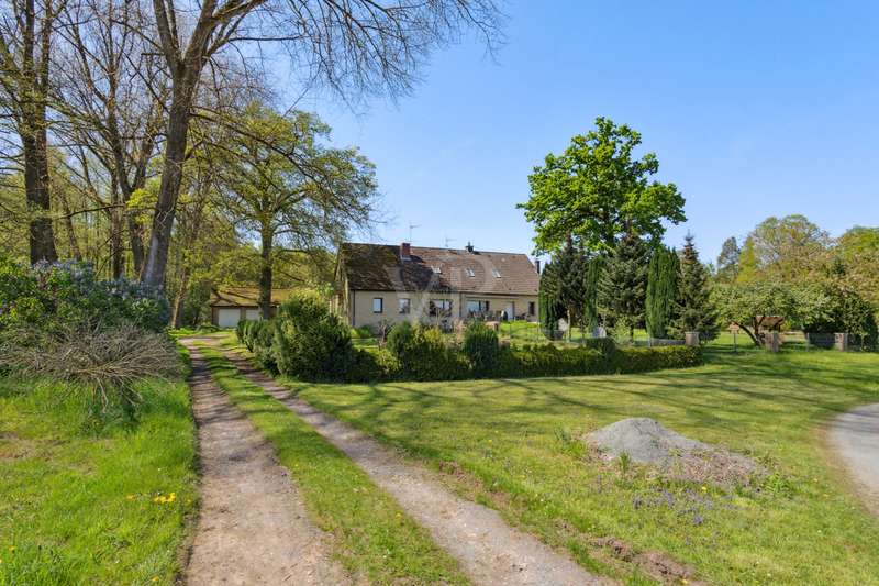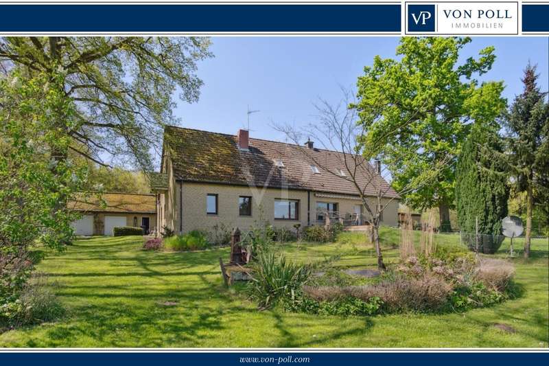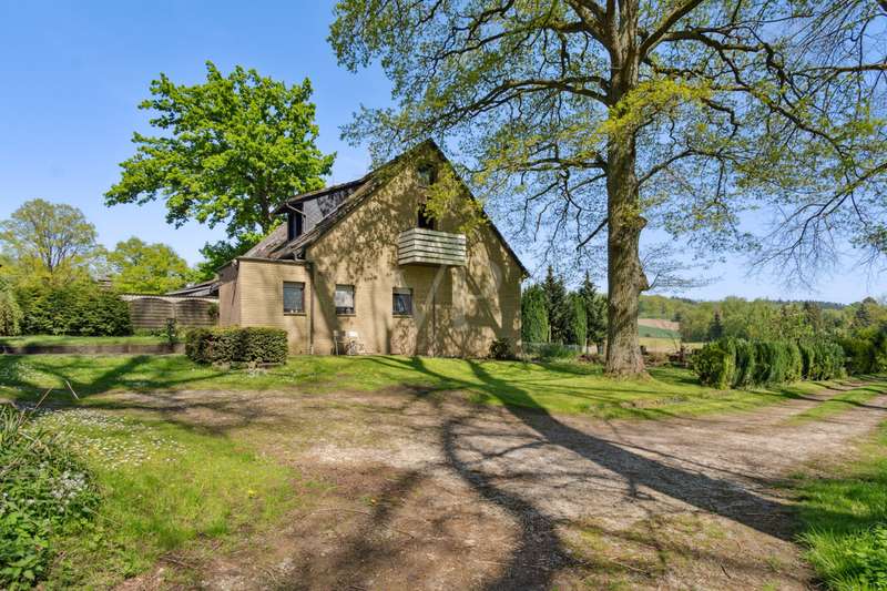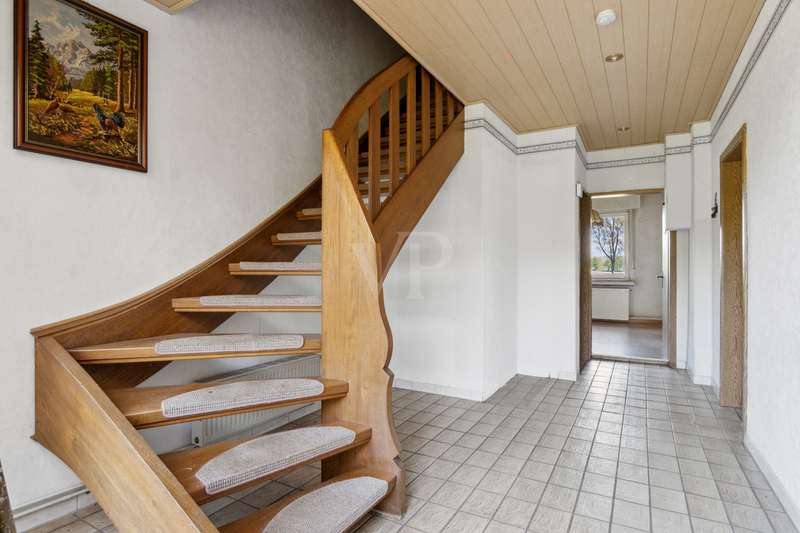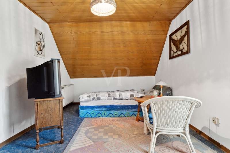 This semi-detached house is located on the quiet outskirts of Leeden, surrounded by fields and vast countryside, on a plot of approx. 970 m². The house is estimated to have been built in the 1930s and was probably renovated in the 1980s. It is currently in need of refurbishment and offers plenty of potential for individual design - ideal if you want to create a home entirely according to your own ideas. With a living space of approx. 134 m², the house has six rooms, two bathrooms and a kitchen, offering enough space for the whole family or generous living ideas. The room layout in detail: Upon entering the first floor, you are greeted by a hallway. To the right is the bathroom, which is equipped with a shower, a bathtub and a connection for a washing machine. Directly adjacent is the spacious kitchen with dining area, which is perfect as a central place for everyday life and offers plenty of space for your personal design. A connecting door leads into the bright living room, which creates an inviting atmosphere with its wide view of the garden and the adjacent fields - an ideal place to relax. An adjoining room can be used flexibly as a bedroom, office, guest room or hobby room - just as you need it. From the living room, you can return to the hallway and from there take the wooden staircase to the top floor. Four rooms of different sizes await you there. One of them has a balcony with a view of the greenery and direct access to another bathroom, which is equipped with a shower, bathtub and bidet. Due to its former use as a kitchen, another room allows for versatile use. The terrace invites you to linger outside - here you can enjoy the tranquillity and nature. In addition, a small pond in the garden creates a particularly idyllic atmosphere. The attic has a spacious storage area. In addition, there are two further rooms in the basement that offer additional storage space. One of the rooms provides direct access to the outside as well as to the boiler room, where the oil-fired central heating has been installed. An outbuilding was built in 1993, which offers you numerous possibilities for use and can be used according to your needs. In addition to sufficient space for up to three cars, it offers additional storage space for garden equipment, tools and hobby projects. The spacious attic expands the possibilities and is ideal for storage. The water supply is provided by a private well, while waste water is disposed of via a 3-chamber system - typical for the quiet outdoor location. This house in Leeden combines a location close to nature with plenty of development potential. If you are looking for a quiet place that you would like to design according to your own ideas, then it is worth taking a closer look. Feel free to contact us for more information and to arrange a viewing.