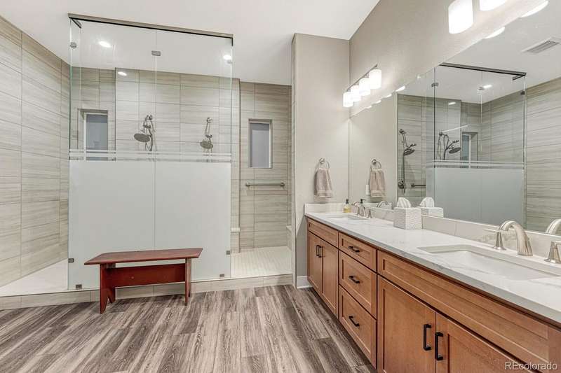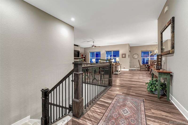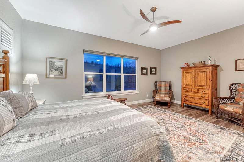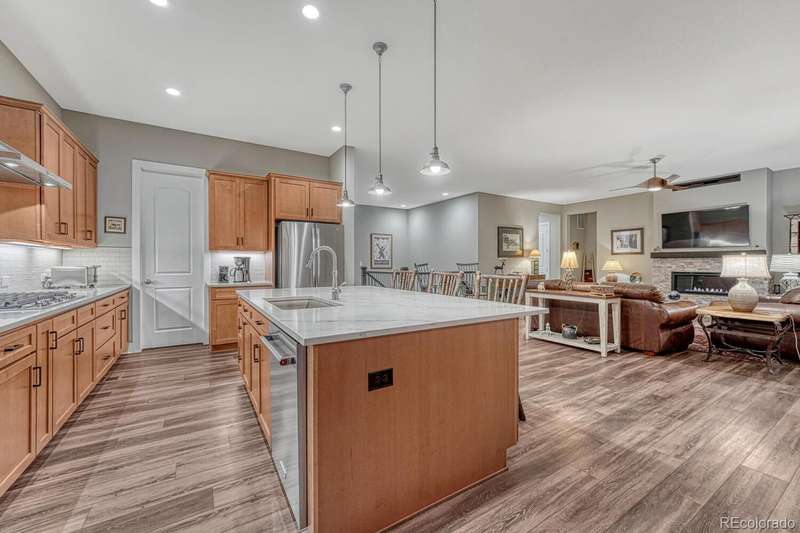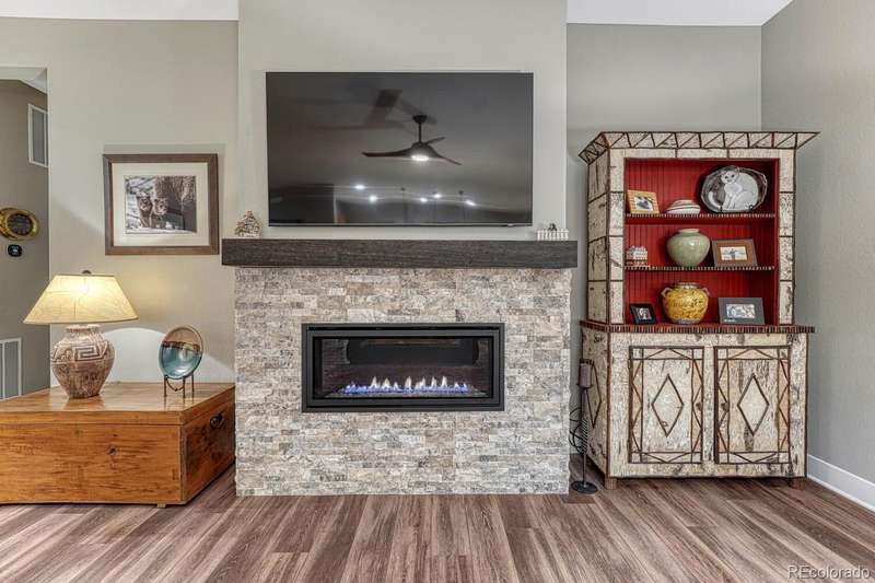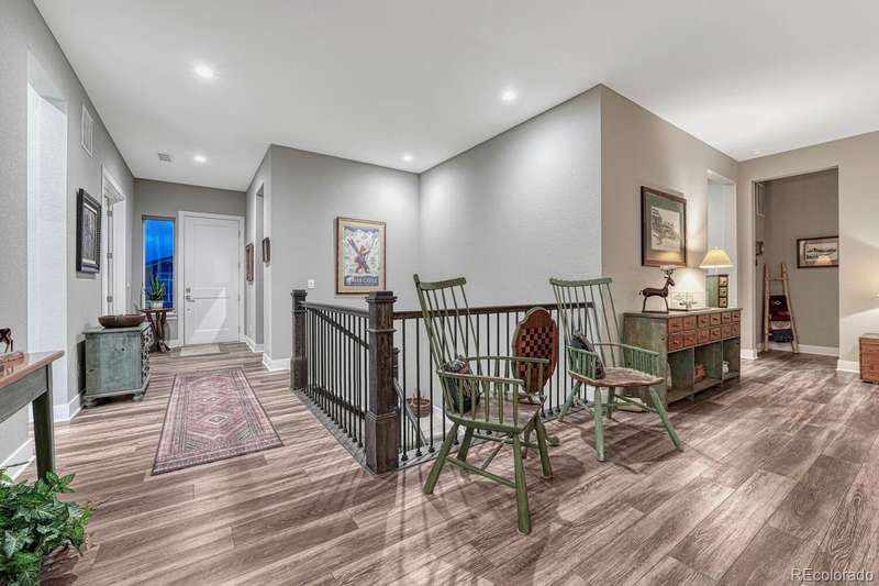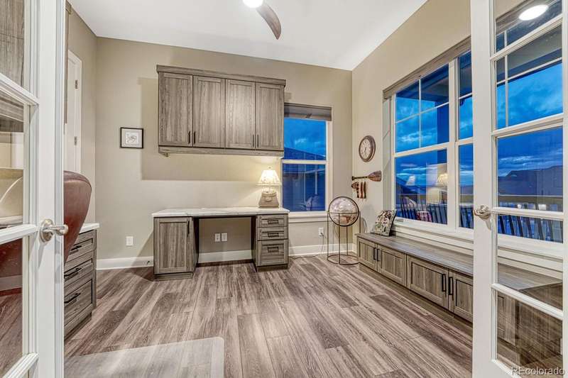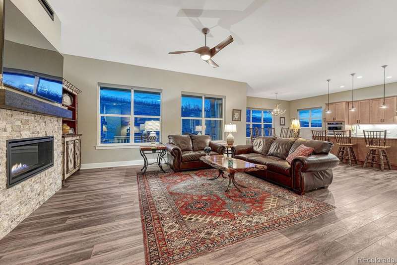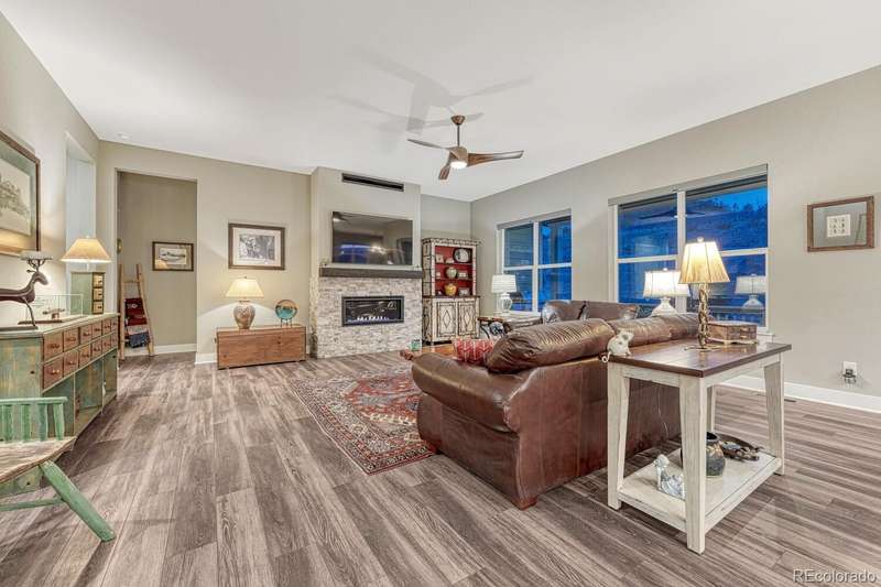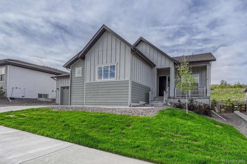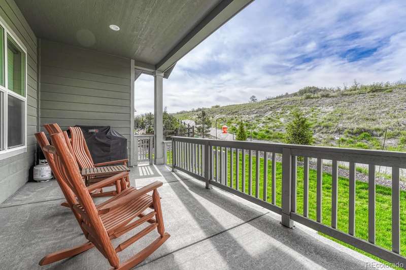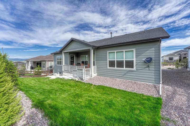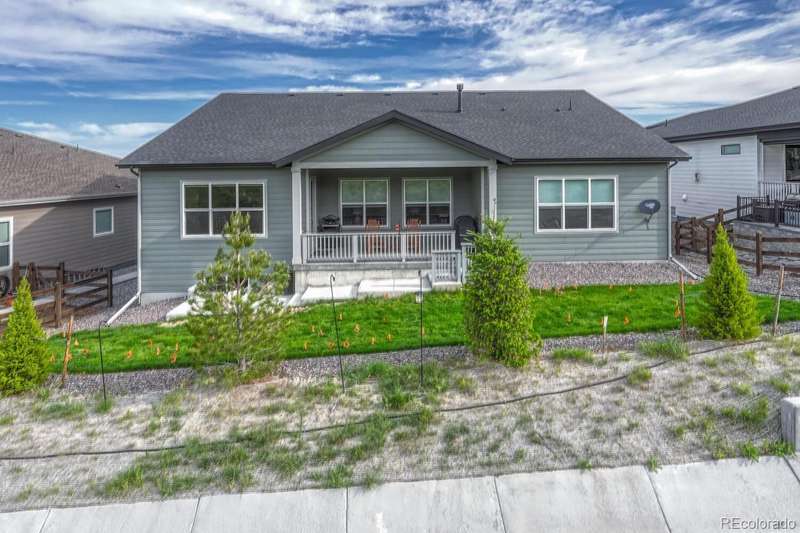 Welcome to your dream home in the vibrant 55+ Montaine community of Castle Rock, CO. This stunning 2-bedroom, 3-bathroom residence embodies luxury and comfort with an open floorplan perfect for modern living. The gourmet kitchen will delight any chef with its quartz countertops, stainless steel appliances, and spacious pantry. The inviting great room features a contemporary vertical gas fireplace, perfect for cozy gatherings. The primary suite offers a customized walk-in closet and a lavish ensuite bath with an oversized dual head shower. The second bedroom also boasts an full ensuite bath. The light & bright office, with its built-in desks, can easily serve as a third bedroom. Soak in the breathtaking views of the Colorado Rockies from your front porch or unwind on your private back patio overlooking serene open land. An unfinished basement with rough-in plumbing awaits your personal touch. Enjoy the fabulous community amenities, including a clubhouse with a fitness center, pool, and tennis courts. This is a must-see gem in popular Montaine!