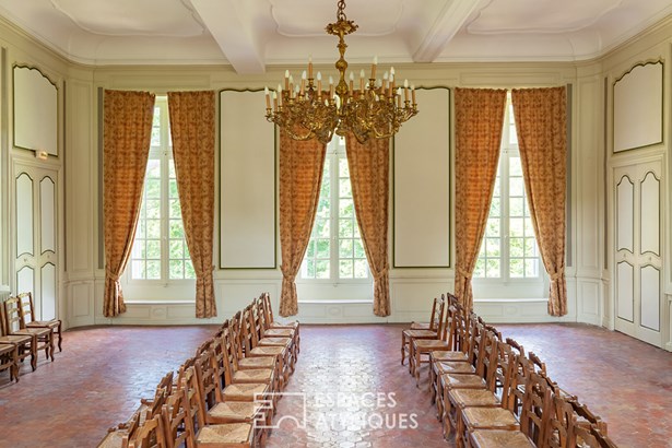 The complex consists of two main buildings: the Bishop's Palace, a former three-story palace, and the Orangery. It features 30 bedrooms, all with en-suite bathrooms, several reception rooms, a library with period woodwork, a synod hall with a central rose window and a 17th-century fireplace, and a former chapel converted into a dining room. Two professional kitchens, a laundry room, cold rooms, an office, and a 185 m2 apartment complete the amenities. The common areas range in size from 70 to 122 m2, with remarkable ceiling heights and preserved heritage finishes (wooden frames, interior shutters, moldings, and listed balusters).