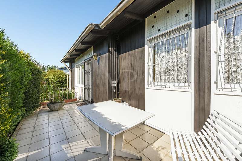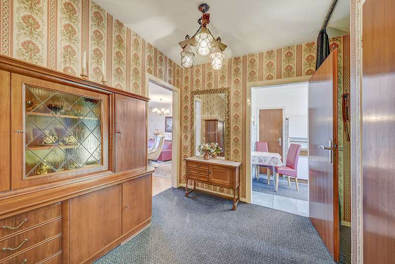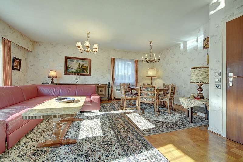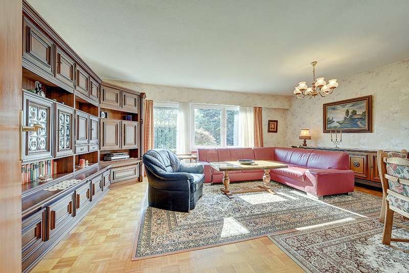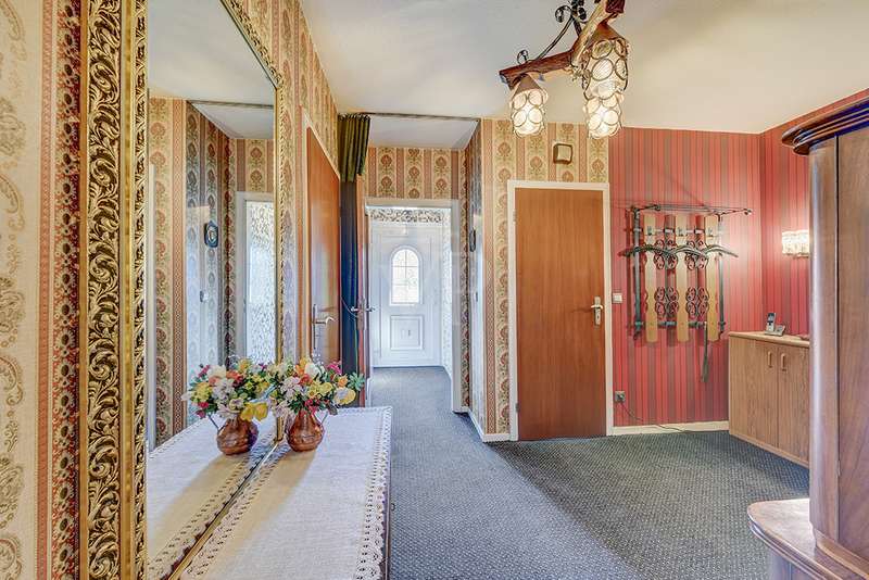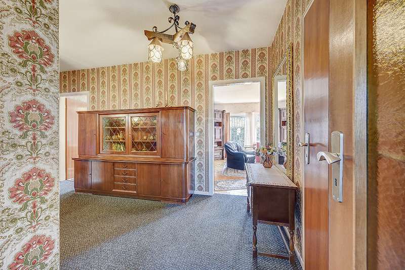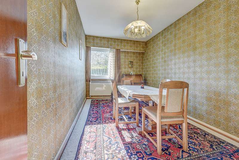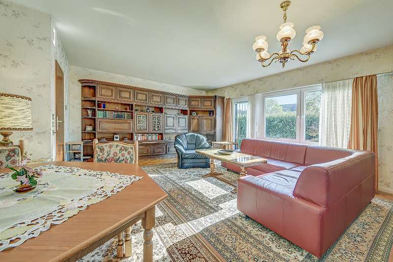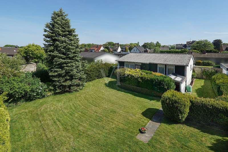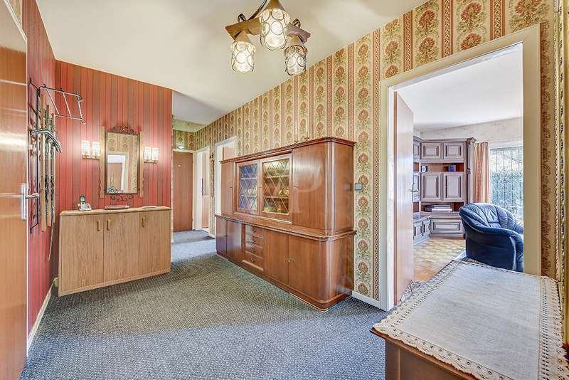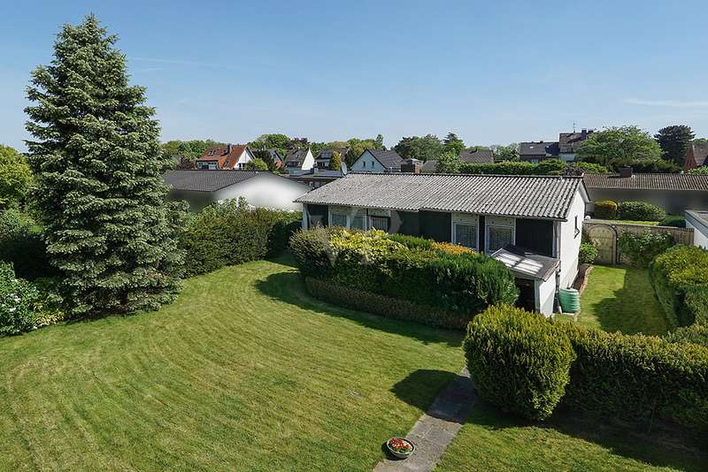 The bungalow on offer here was built in 1965 by the manufacturer Nachbarschulte Holzbauwerke & Co KG as a prefabricated construction and has a full basement. It has a good room layout and offers, if desired, further design possibilities through the option of an extension or through a demolition and new construction. However, only the building authority can give you information on this. The property has a total of 4.5 rooms, including the beautifully divided living/dining area, 3 bedrooms, 1 bathroom and 1 guest WC. The kitchen also has a storage room. From the vestibule you enter the spacious hallway, the bathroom with window and to the left the bedroom wing, the three bedrooms and the guest WC. To the right is the living/dining area with access to the raised terrace and the beautiful garden. The kitchen, which adjoins the garage, is located to the front on the street side. The rooms therefore offer enough space for couples or a small family. The basement comprises a very large hobby room, as well as a boiler room incl. location for 2 oil tanks (1500 l each), a laundry room and a further storage cellar and can be reached via an external staircase. The garage has an extension and thus offers even more storage space for tinkering and working. If desired, this property can also be demolished or the cellar can be retained and a dream new build can be added here. The exclusivity of the property should be emphasized. The small cul-de-sac in which the property is located is also worth mentioning, as is the proximity to Lake Üttelsheim. The energy certificate is currently being processed and will be submitted at the time of viewing.