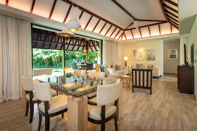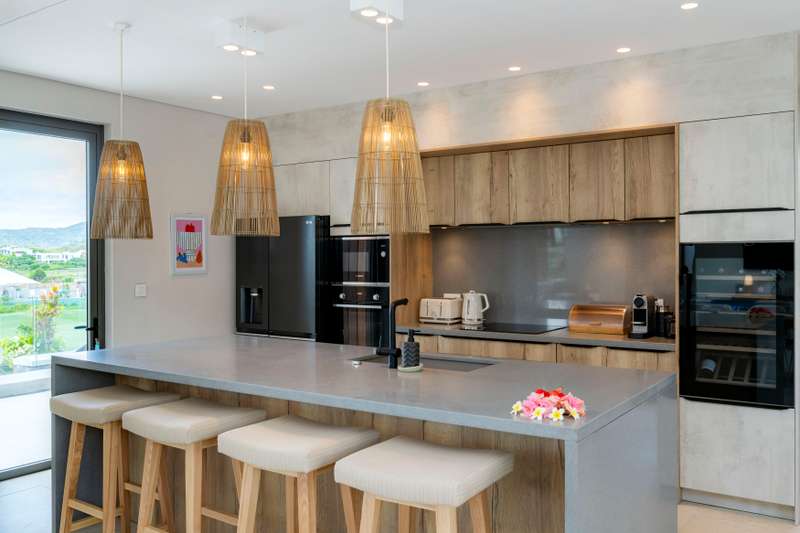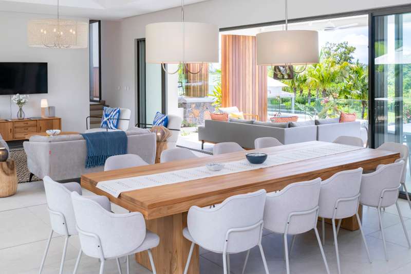 This exquisite 420 m² villa, set on an elevated 2,233 m² plot, offers one of the most breathtaking panoramas in Anahita. With uninterrupted views of the golf course and the majestic Bambou mountain range, along with captivating glimpses of the lagoon, this property is a true haven of tranquility. Recently completed, the villa showcases sleek modern architecture complemented by elegant tropical décor. Sunlit living spaces, enhanced by expansive bay windows, seamlessly connect to a furnished terrace and infinity pool, inviting you to embrace the essence of luxurious tropical living. Designed for both comfort and sophistication, the villa features four en-suite bedrooms, including a master suite on the upper floor, and a rooftop terrace, perfect for relaxation. A rare gem in an exceptional setting, offering the ultimate blend of elegance and natural beauty.
