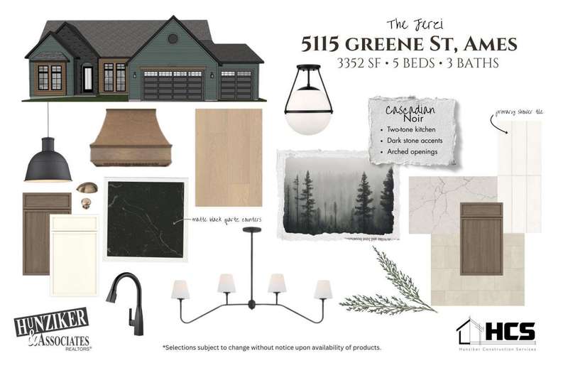 HUGE SAVINGS INCENTIVE CURRENTLY AVAILABLE! Contact your agent today for info! Welcome to 5115 Greene St., a beautifully crafted 5-bedroom, 3-bath ranch in Sunset Ridge. With over 3,300 finished square feet, this home features quartz countertops, stained and painted cabinets, black slate appliances, and a large walk-in pantry. The open layout includes luxury vinyl plank flooring, a gas fireplace with brick and wood surround, and vaulted ceilings with wood beams in the primary suite. Enjoy a walk-in ceramic shower, finished lower level with bar, and walk-out basement to a large concrete patio. The exterior boasts vinyl siding, LP accents, and a screened-in, covered deck with stairs to the yard.Set on .30 acres the home includes an 843 sq ft garage and is scheduled for completion on 9/26/25. The seller is a licensed real estate broker in the state of Iowa, selling the property on his own behalf.Association dues are just $140/year. Built by Hunziker Construction Services