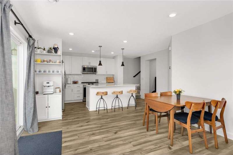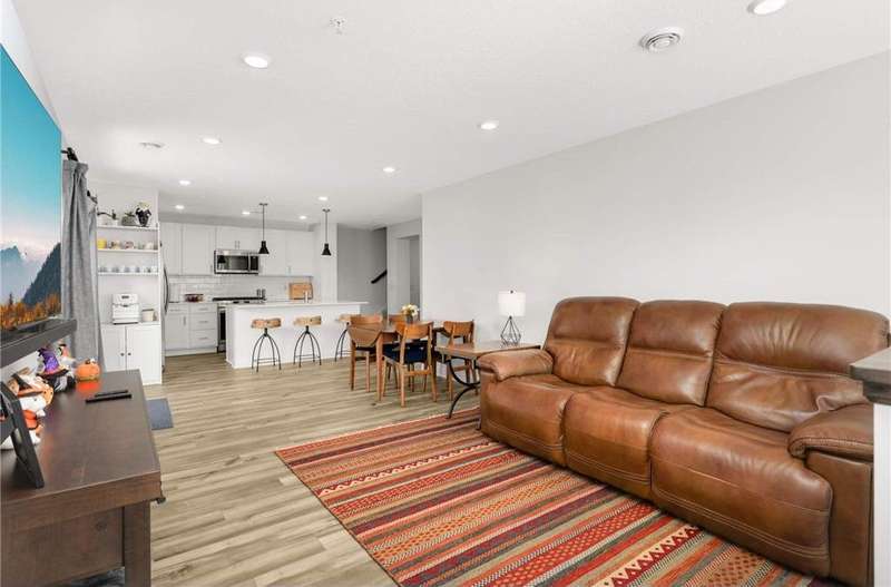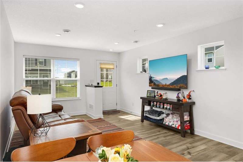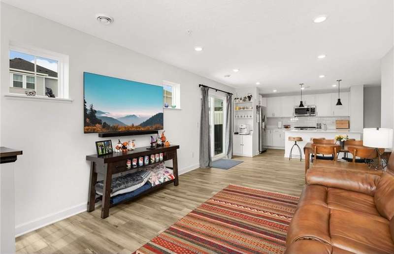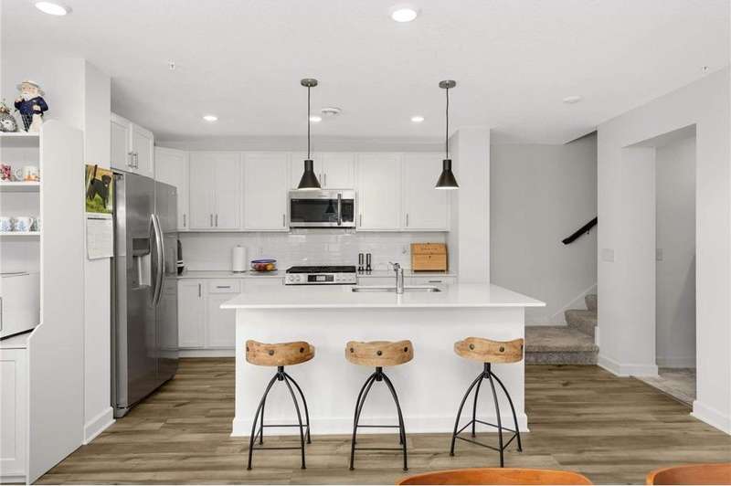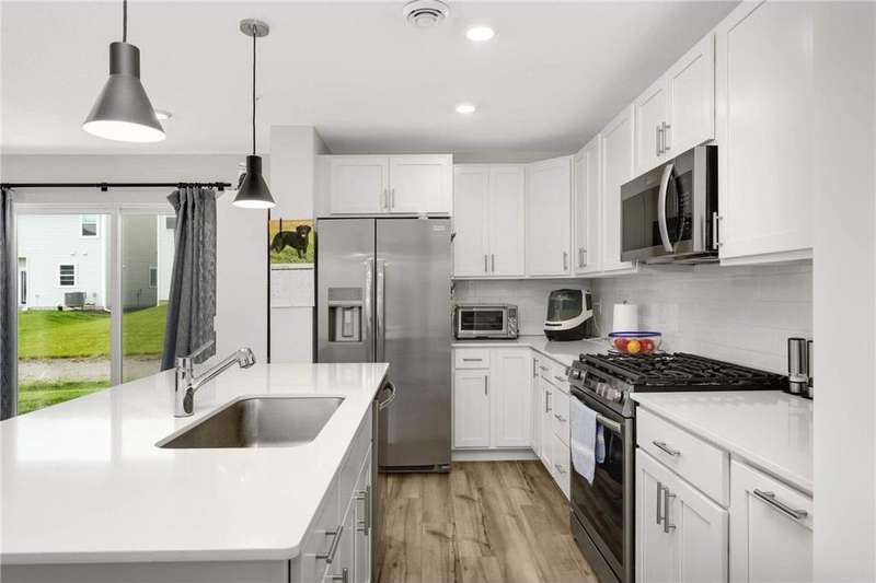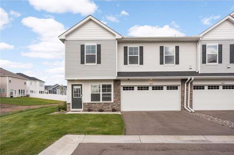 This like new, end unit townhouse sits on one of the best lots in The Highlands of Amber Fields development. When entering you will be greeted by a sun-filled open floor plan with tons of windows. The kitchen has beautiful white cabinets, quartz counter tops, stainless steel appliances and a large island with seating. There is a patio door that leads to a patio for outdoor entertaining and grilling. You will also find a 1/2 bath along with a 2 car garage with custom shelving. Upstairs has a very versatile loft/family room that is ideal for lounging and relaxing. You will also find three nice sized bedrooms with a full guest bath, The large primary suite offers a 3/4 bathroom and a custom built walk in closet. This home has so many nice touches added throughout. This development has many amenities including pickle ball courts, dog park and just steps away from Lifetime Fitness.